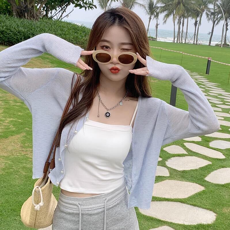日焼け止めニットジャケット夏の女性の薄いカーディガンとサスペンダースカート付きショートアイスシルク長袖空調ブラウス白 ロング ホワイト サマー 夏物 7460035375246717 | framboise21