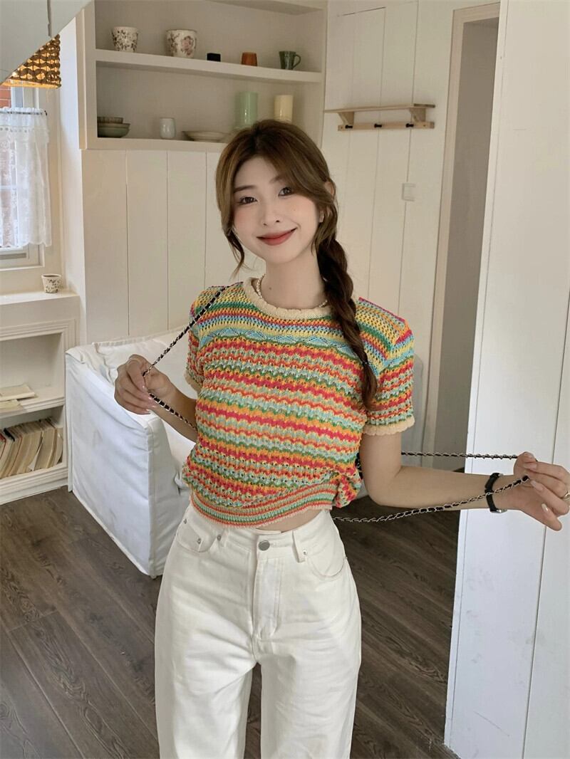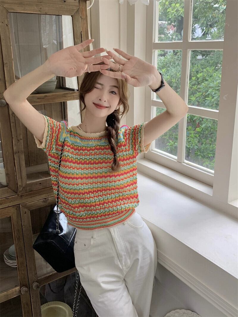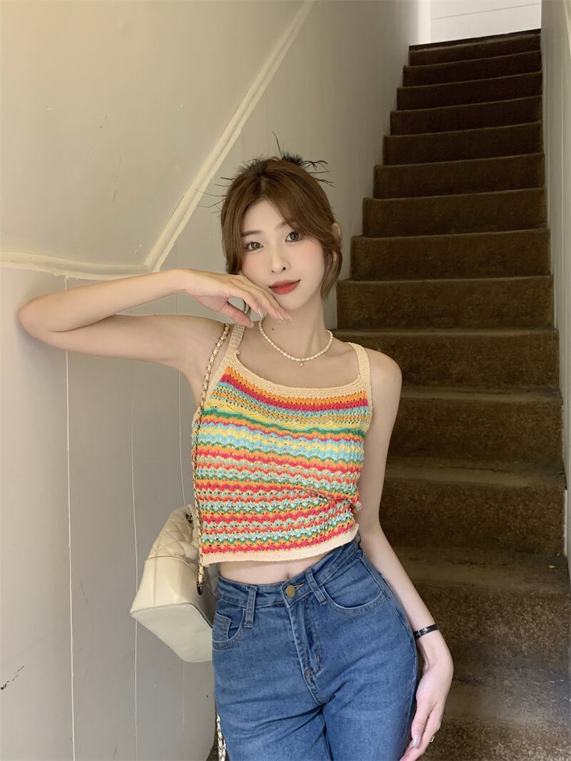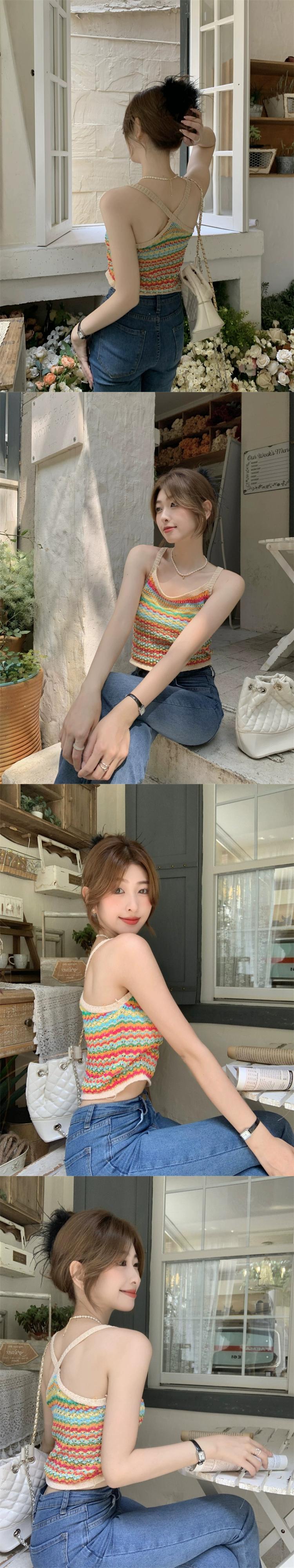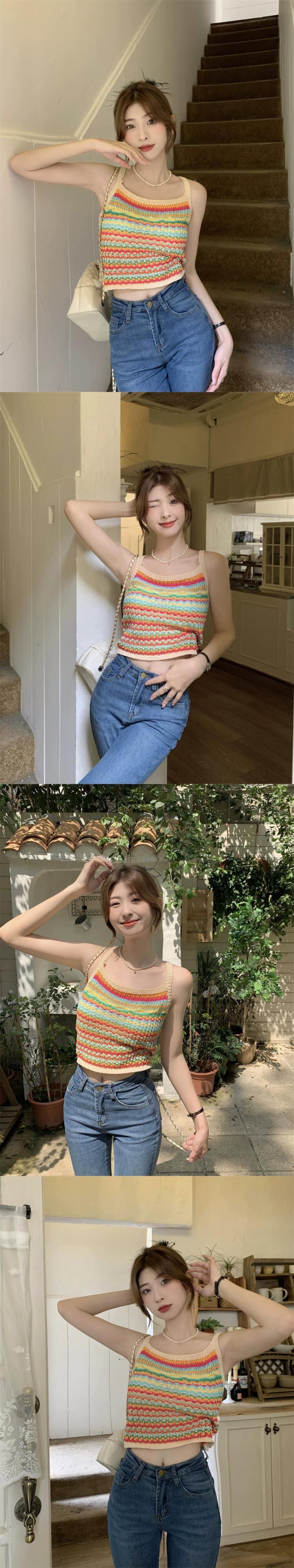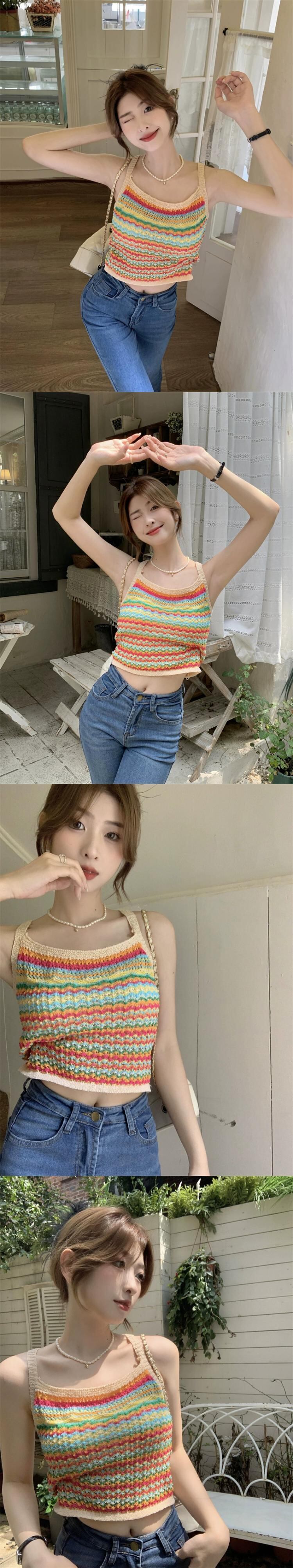 色:レインボー半袖ニットセーター,レインボーベストストラップ