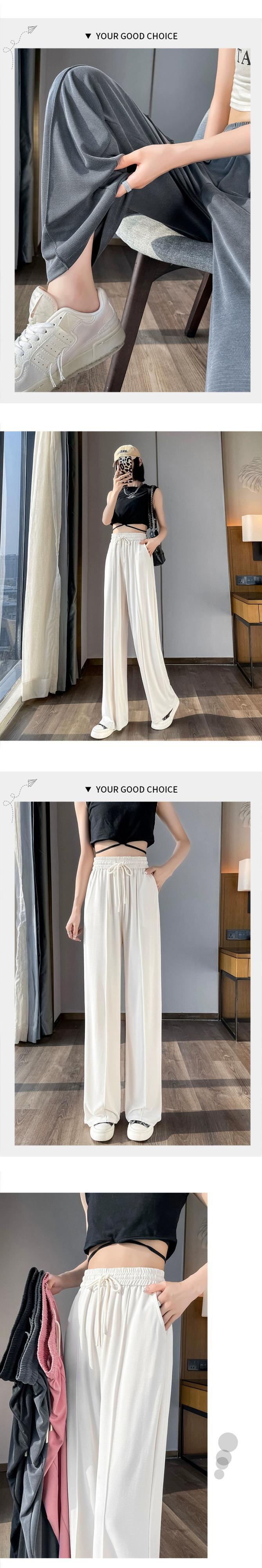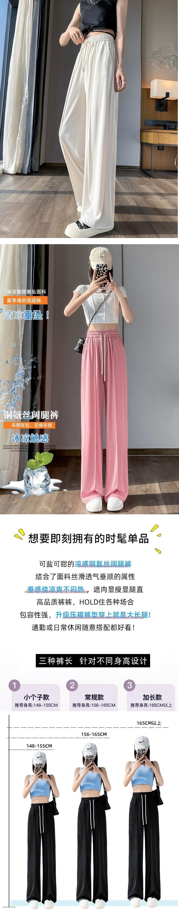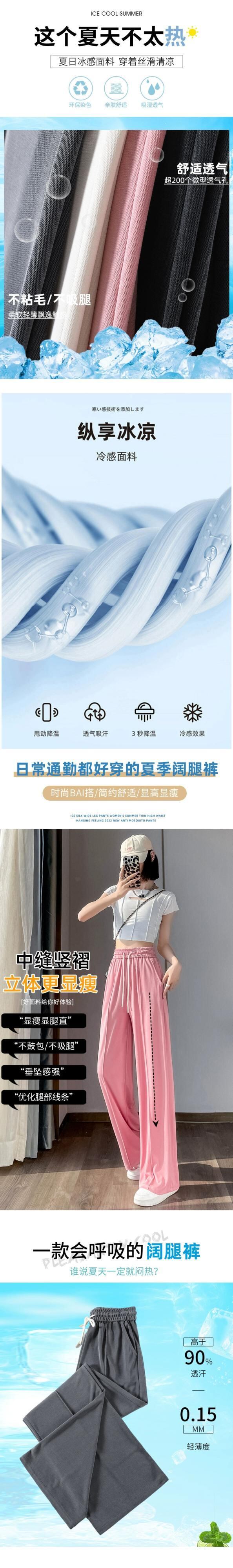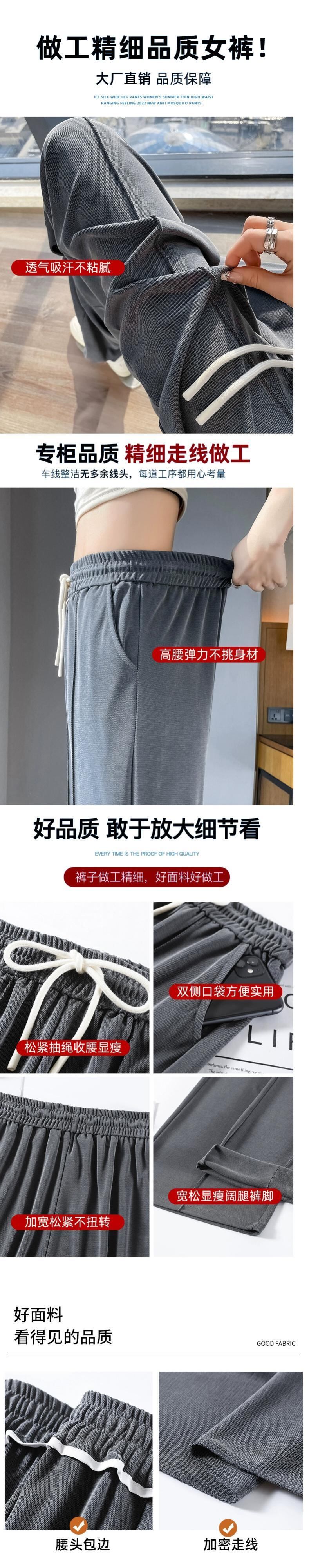 アイスシルクワイドレッグパンツの狭いバージョンの女性の夏薄いキュプラアンモニアシルクドレープストレートパンツルーズカジュアルモップ日焼け止めパンツ サマー 夏物 7460098453545564 | framboise21