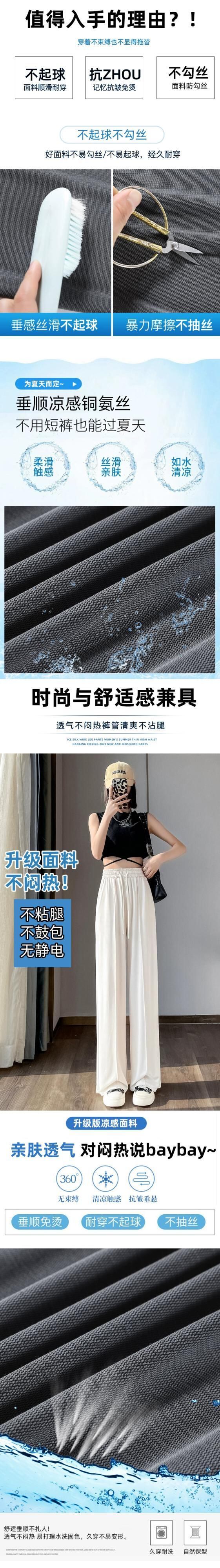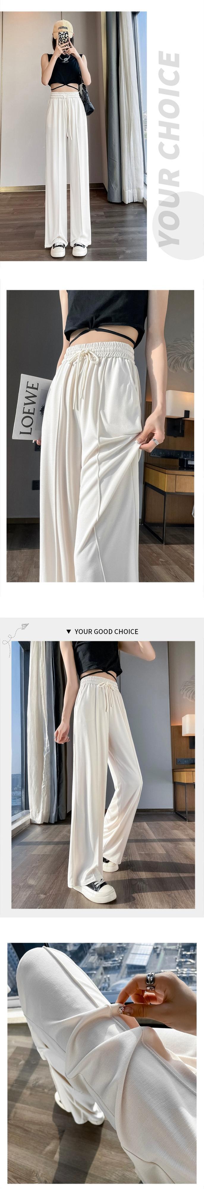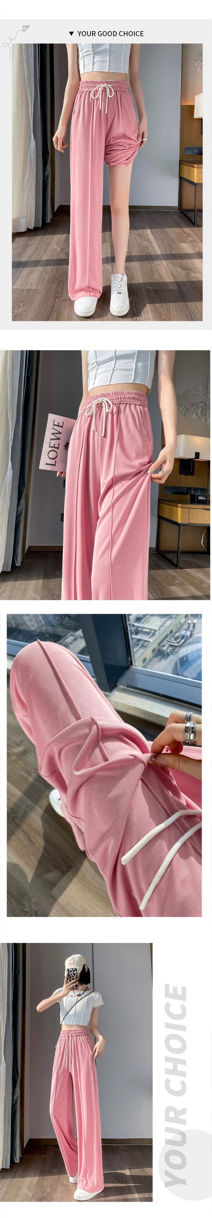アイスシルクワイドレッグパンツの狭いバージョンの女性の夏薄いキュプラアンモニアシルクドレープストレートパンツルーズカジュアルモップ日焼け止めパンツ サマー 夏物 7460098453545564 | framboise21