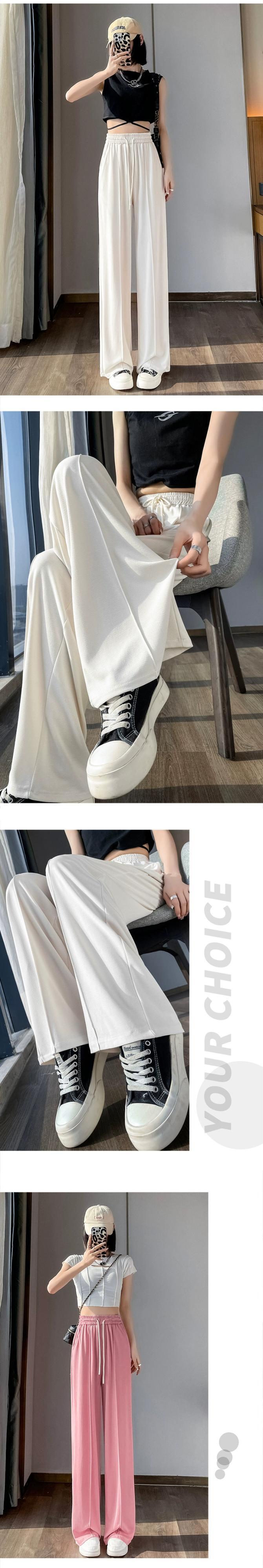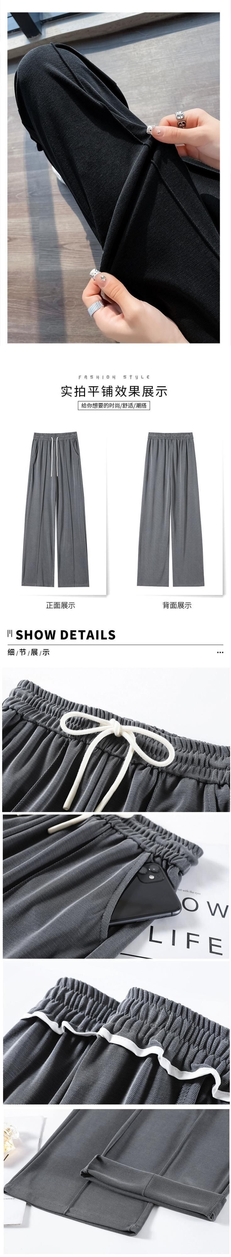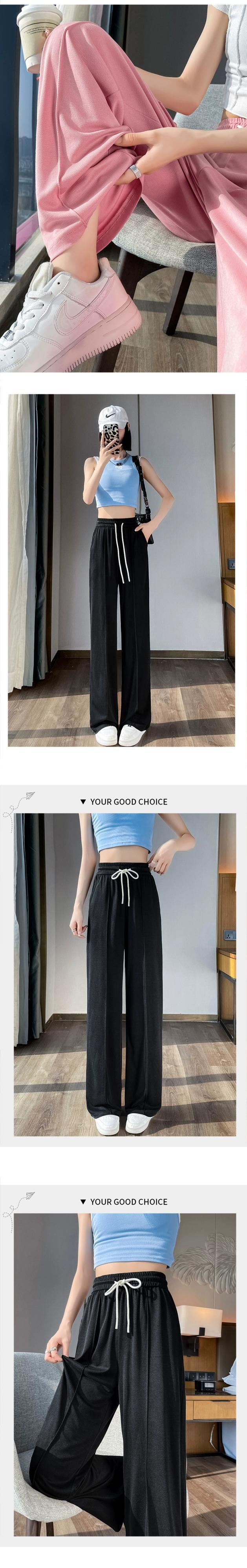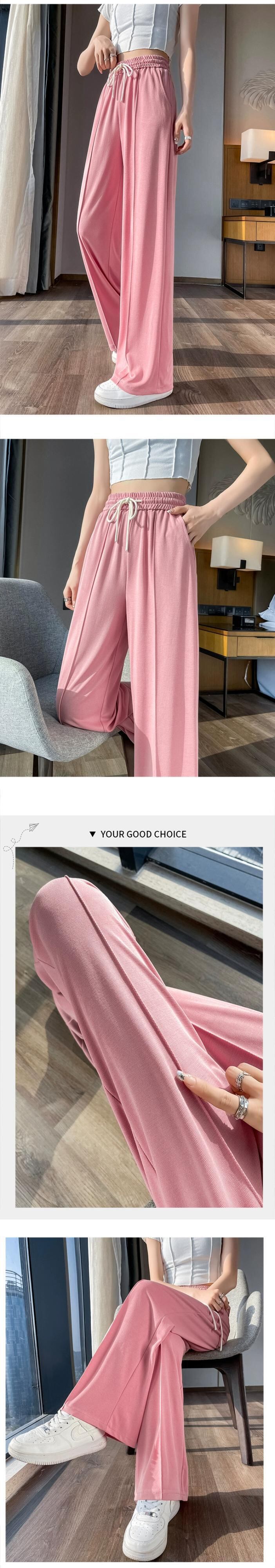 アイスシルクワイドレッグパンツの狭いバージョンの女性の夏薄いキュプラアンモニアシルクドレープストレートパンツルーズカジュアルモップ日焼け止めパンツ サマー 夏物 7460098453545564 | framboise21