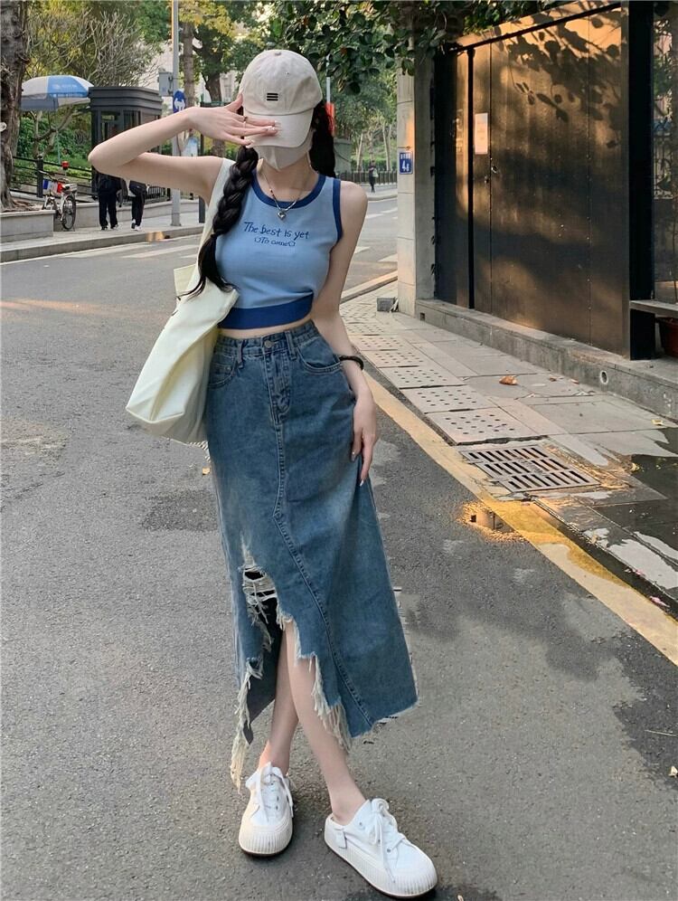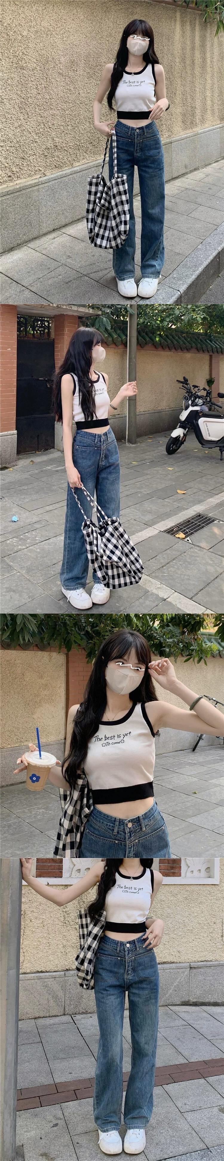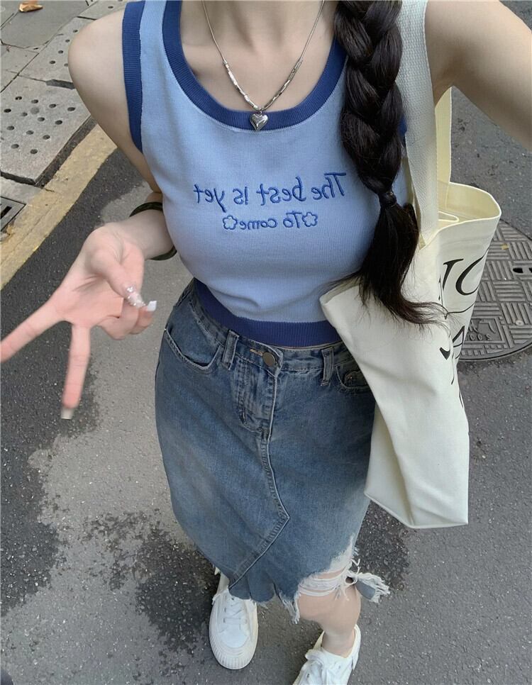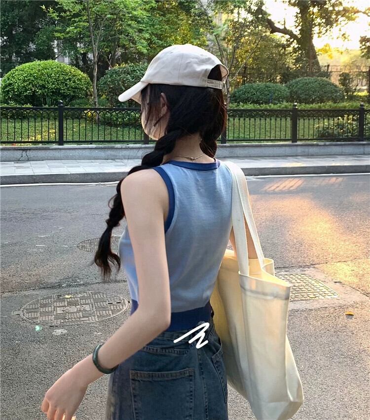 ニットスポーツキャミソールレディース夏インナーウェアデザイン自己修養感覚とアウターウェアショートノースリーブカラーコントラスト刺繍トップ 半袖 ハーフスリーブ サマー 夏物 7460057924546619 | framboise21