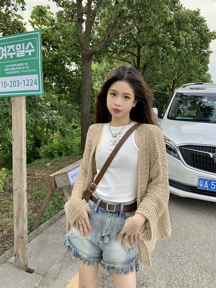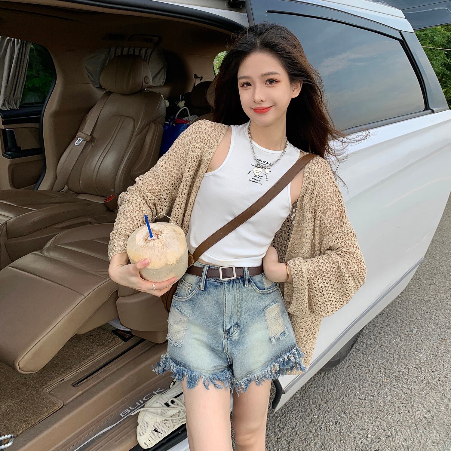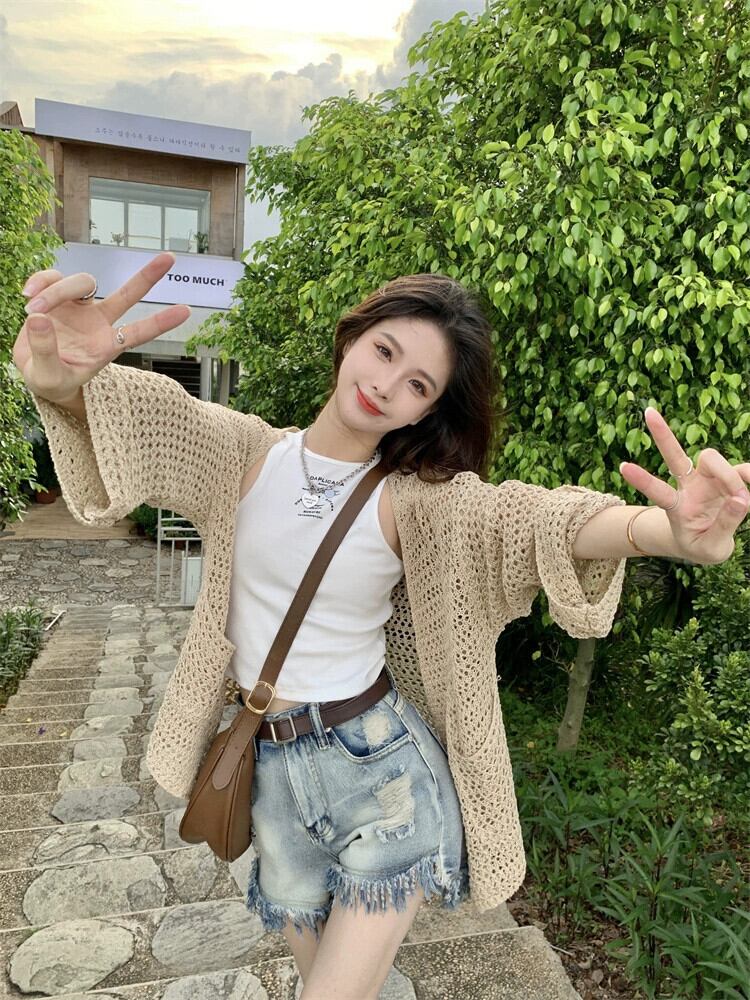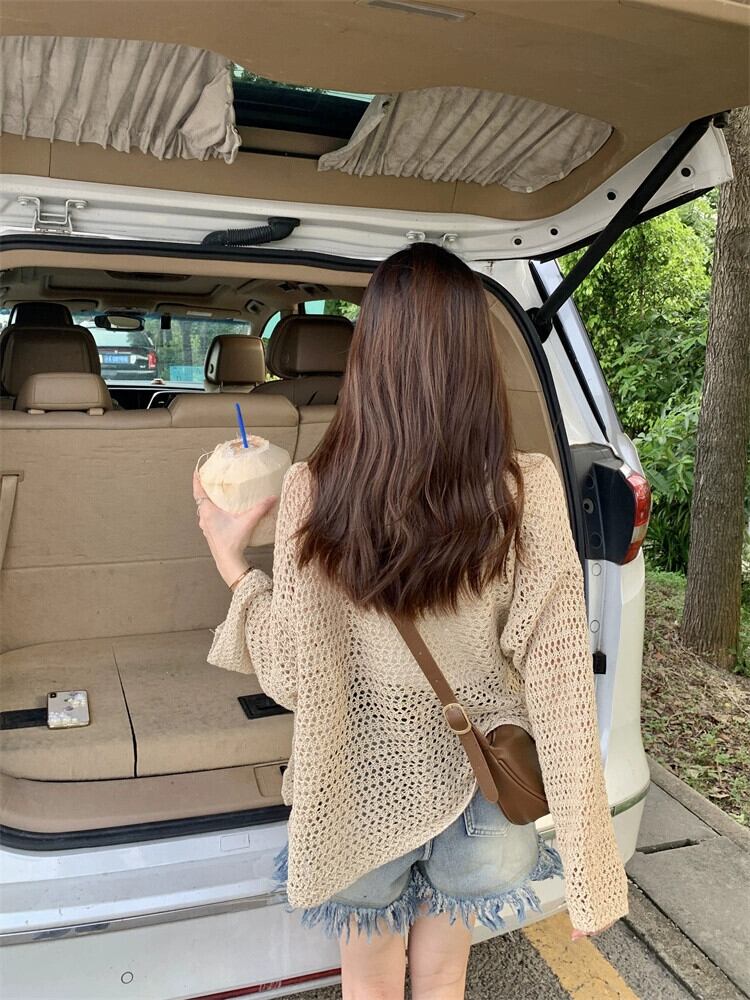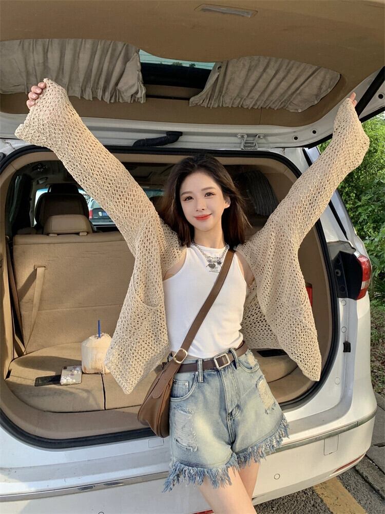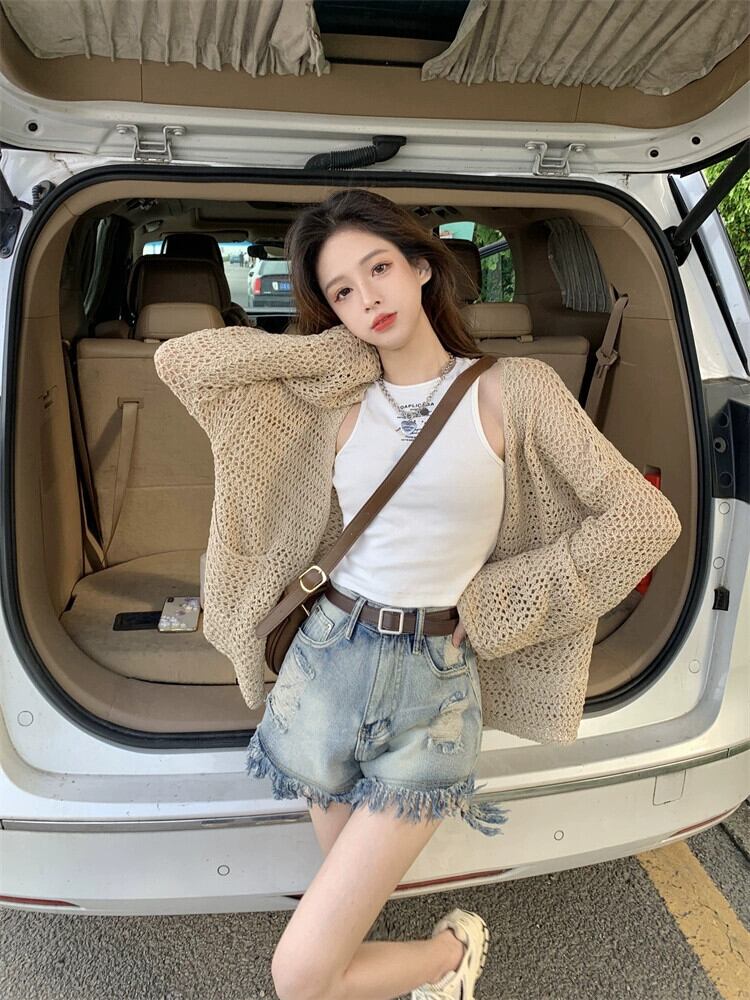 中空日焼け防止カーディガン女性の夏のアウターウェアチョッキブラウスデザイン感怠惰なスタイルの薄いニットジャケットサスペンダー付き サマー 夏物 7460077147054034 | framboise21