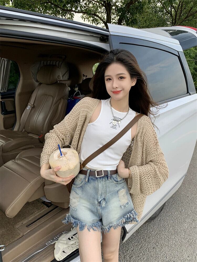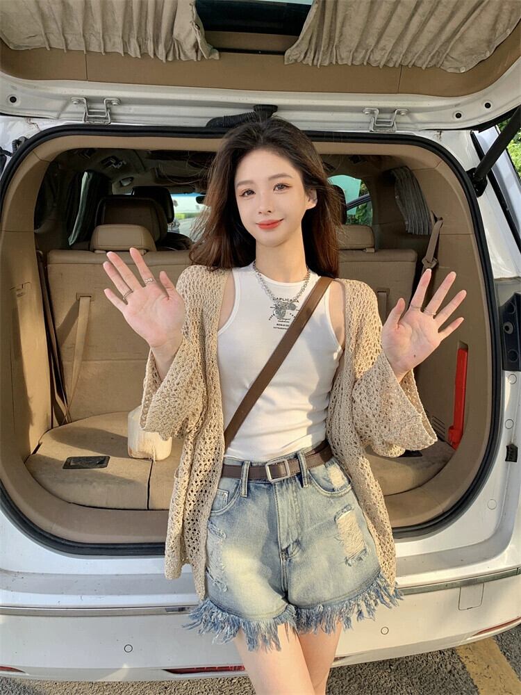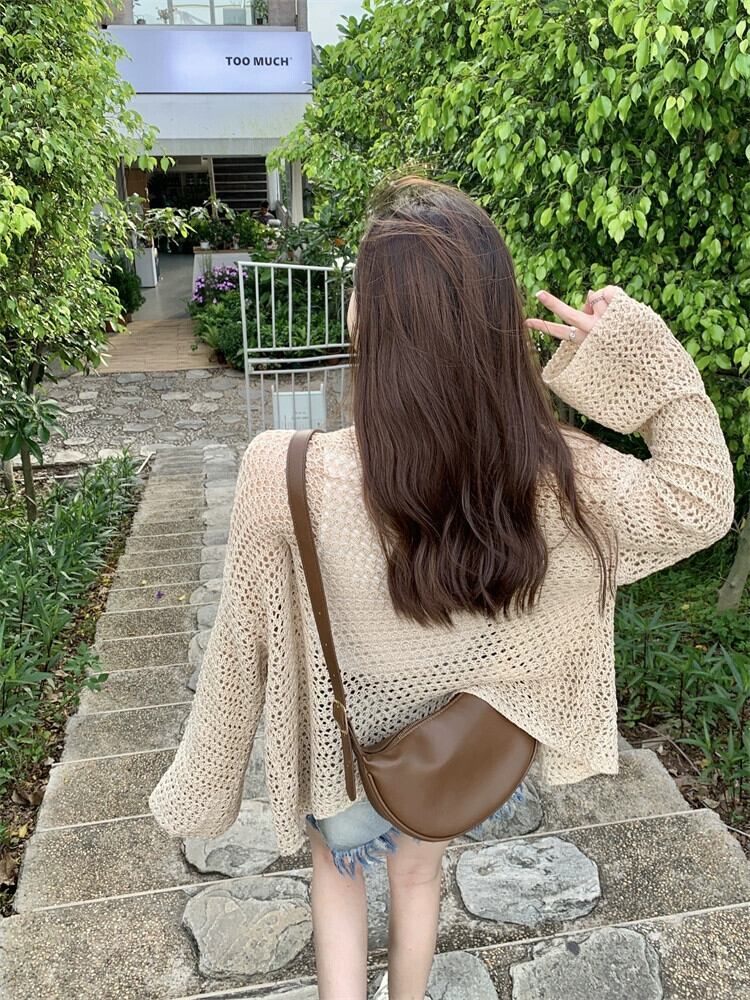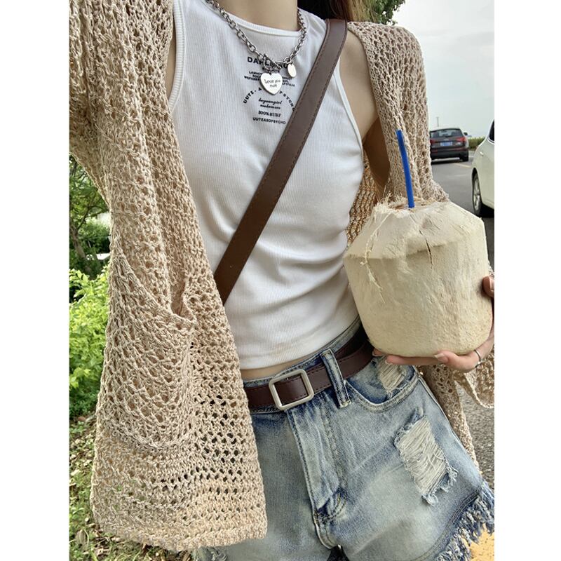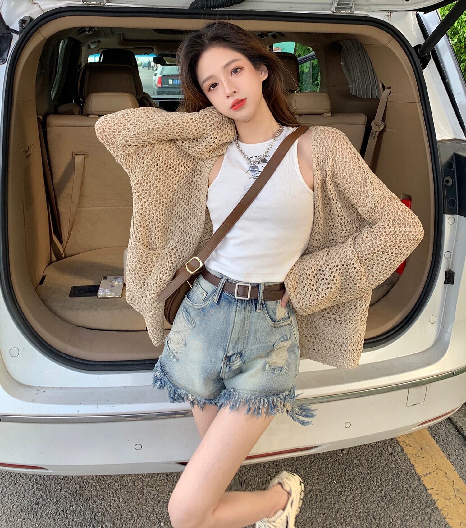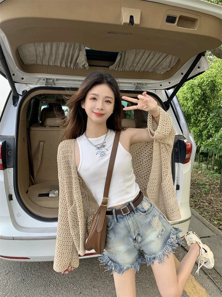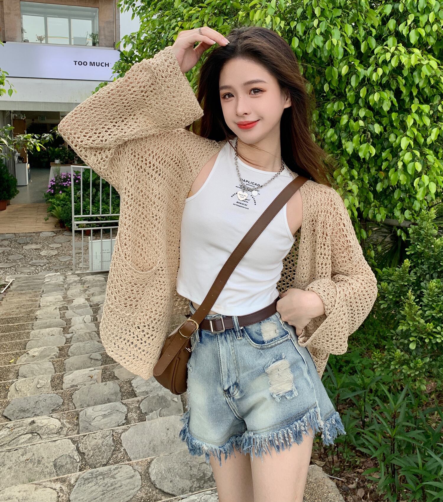 中空日焼け防止カーディガン女性の夏のアウターウェアチョッキブラウスデザイン感怠惰なスタイルの薄いニットジャケットサスペンダー付き サマー 夏物 7460077147054034 | framboise21