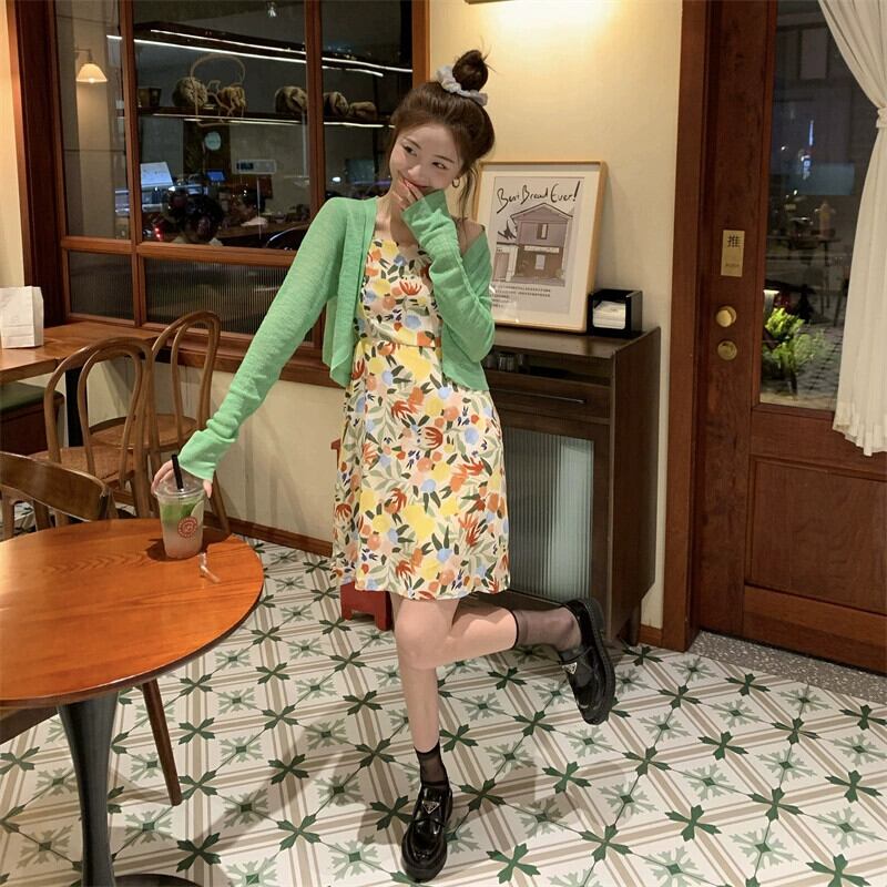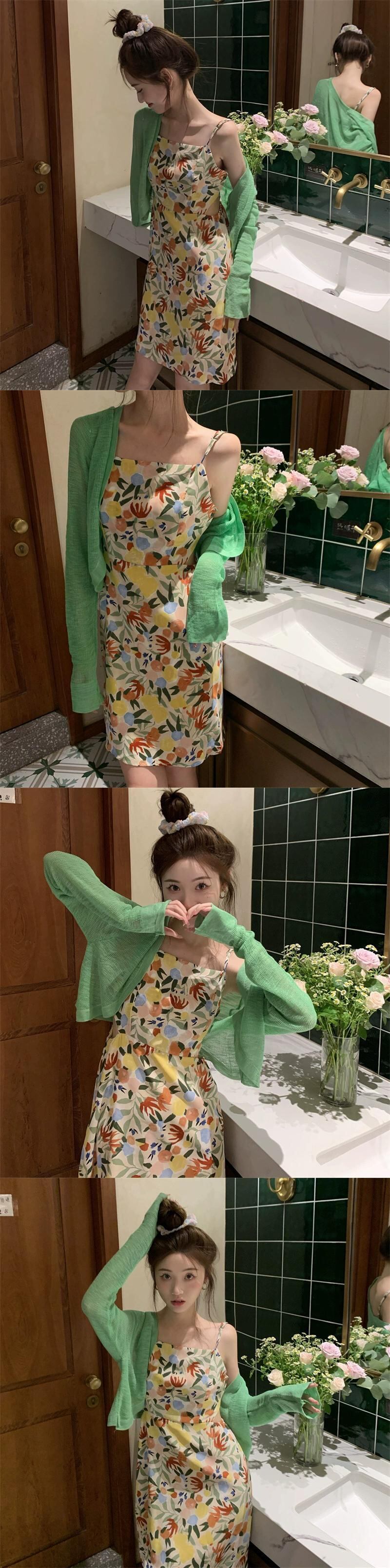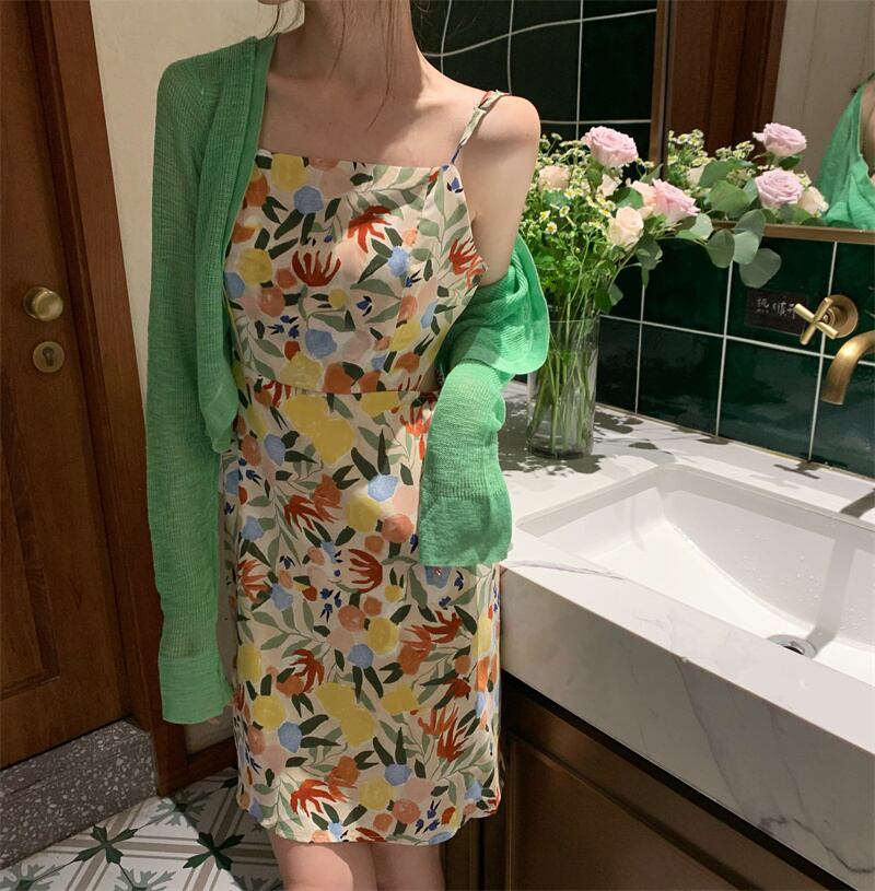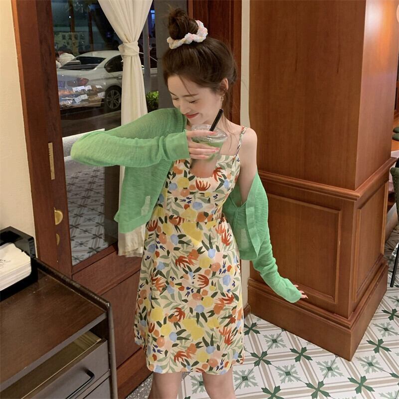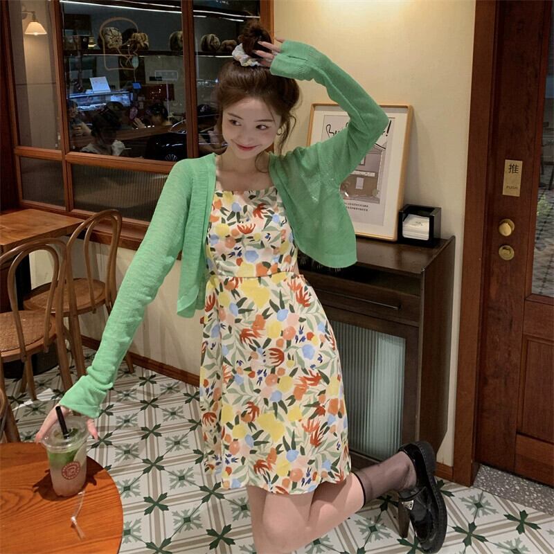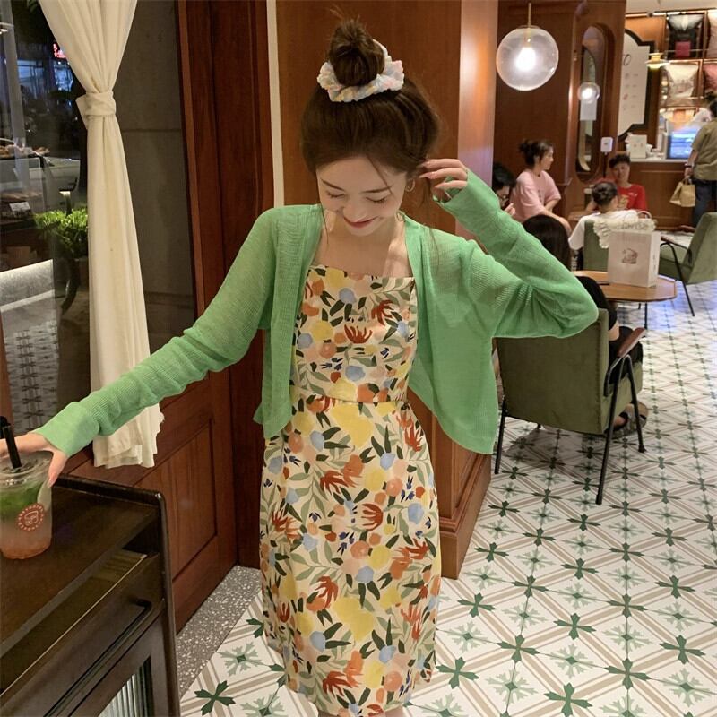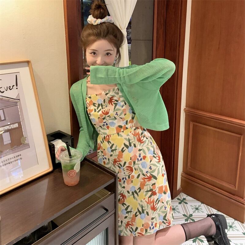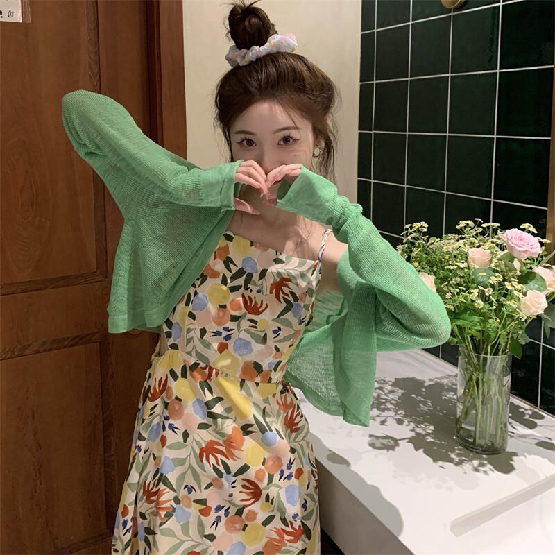フレンチスタイルの小さなチョッキ日焼け止めブラウス女性の夏服薄いアイスシルクニットカーディガンとサスペンダースカートショートトップ サマー 夏物 7460028917017075 | framboise21