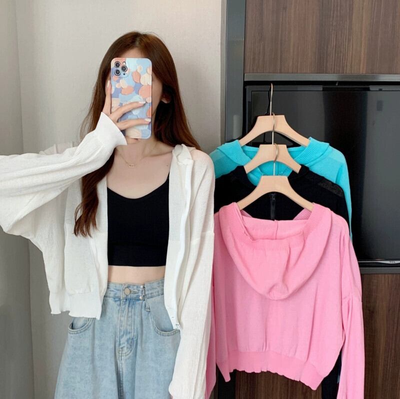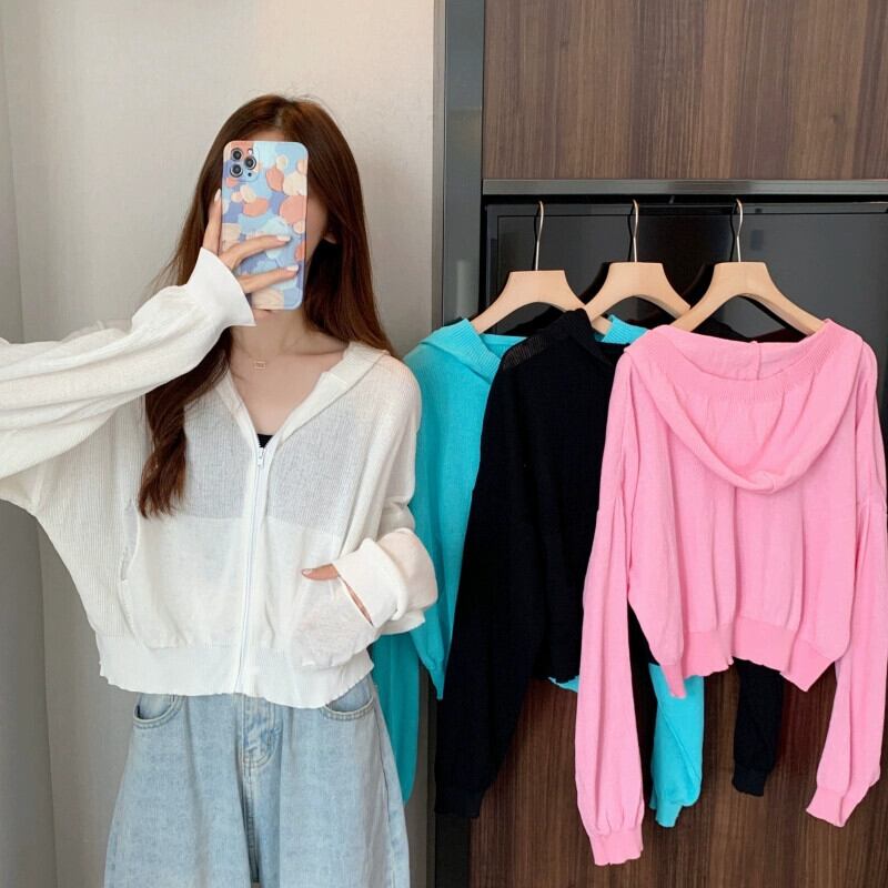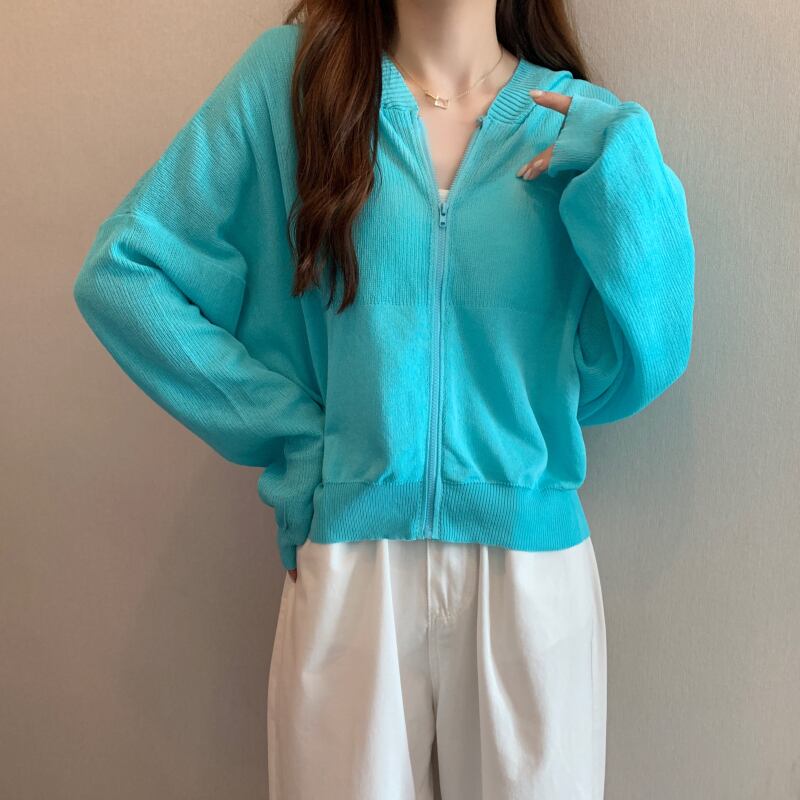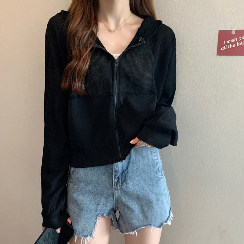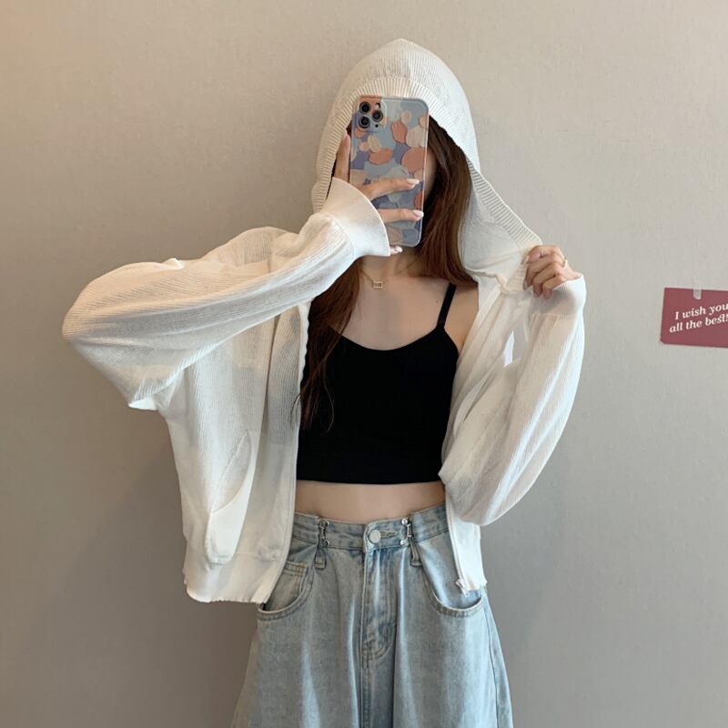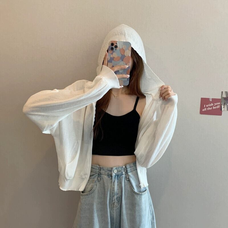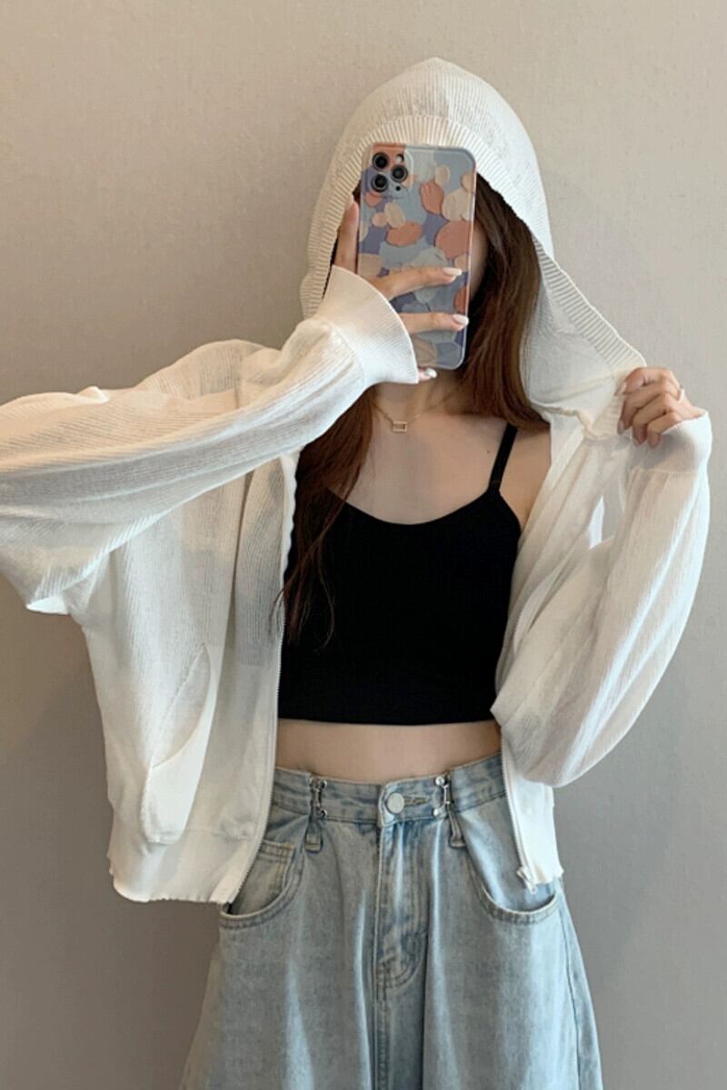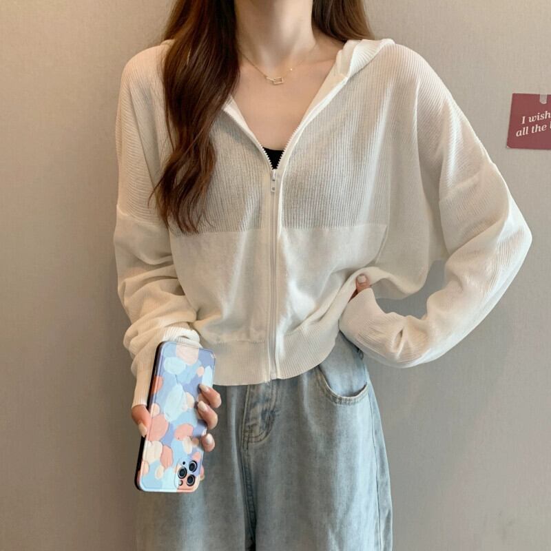 アイスシルク日焼け止め女性の夏の 2023 新しいファッションルーズアウターフード付きジャケット薄いニットカーディガン白 ホワイト サマー 夏物 7460092510694965 | framboise21