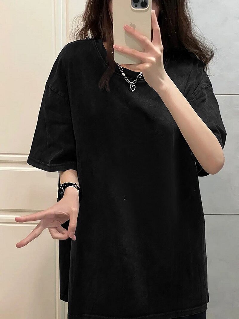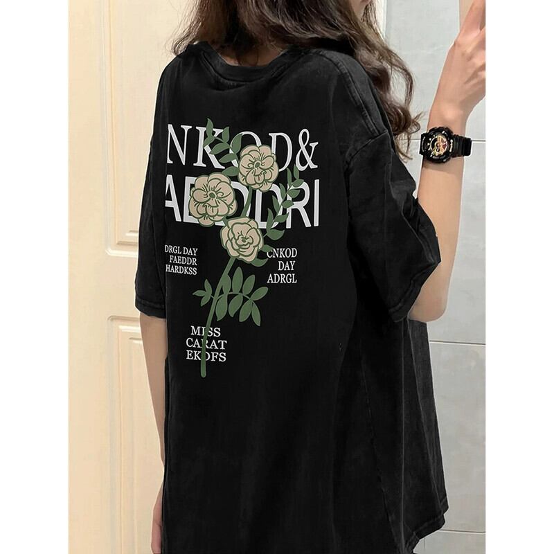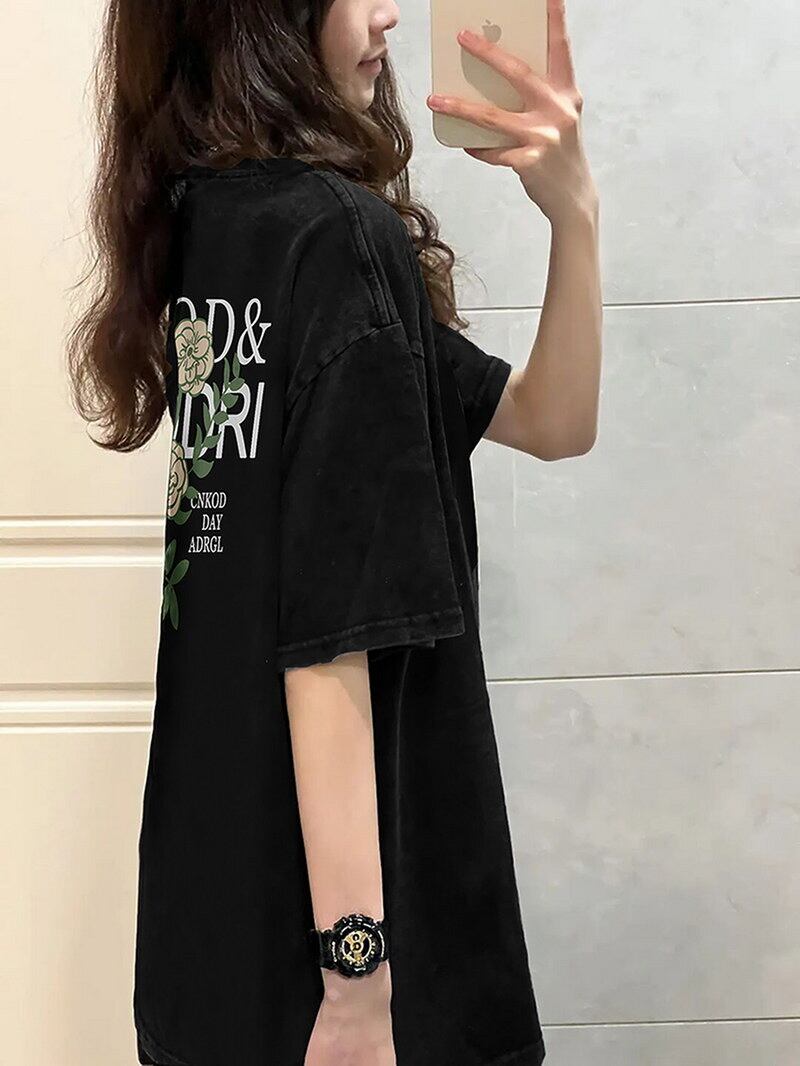 レトロアメリカンハイストリート半袖Tシャツレディース夏のデザインセンスルーズカジュアルコットンTシャツ黒半袖トップ ブラック サマー 夏物 7460042383306067 | framboise21