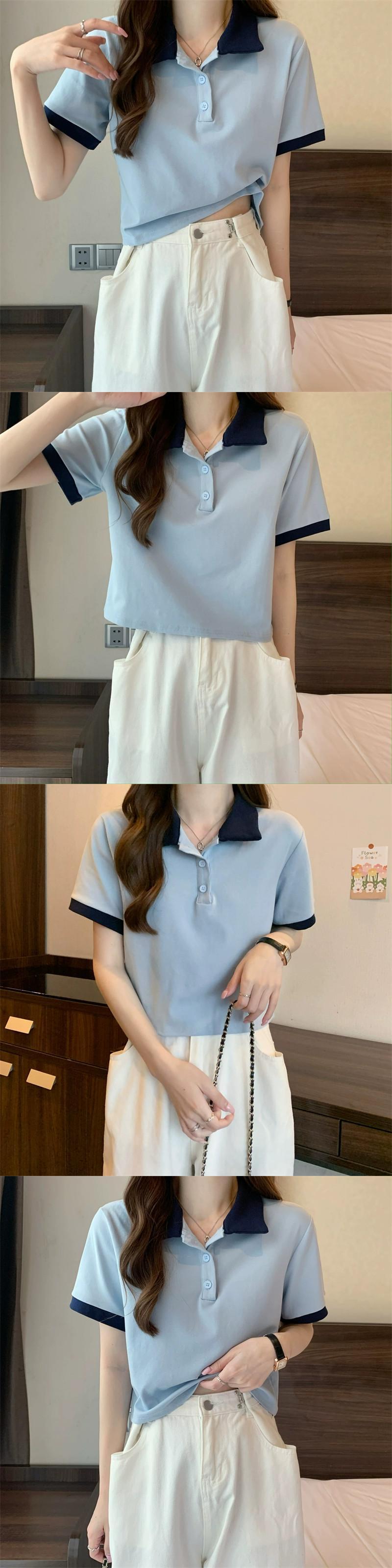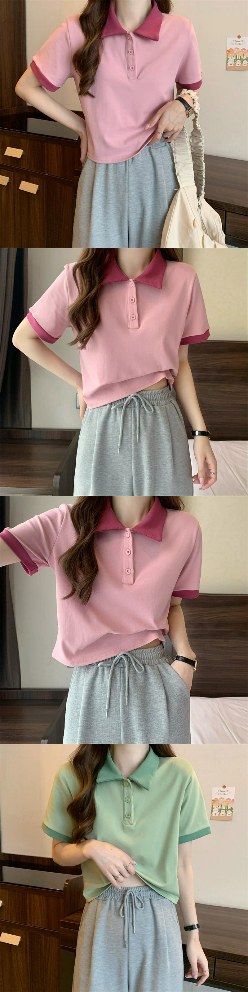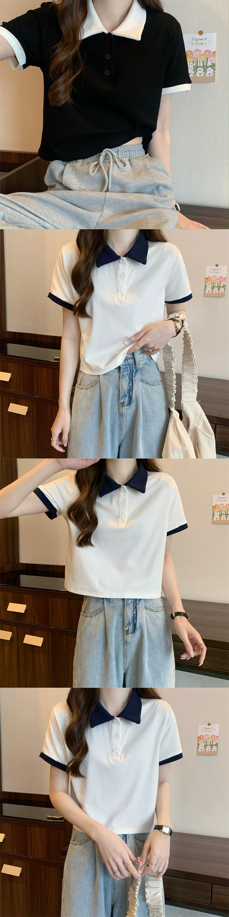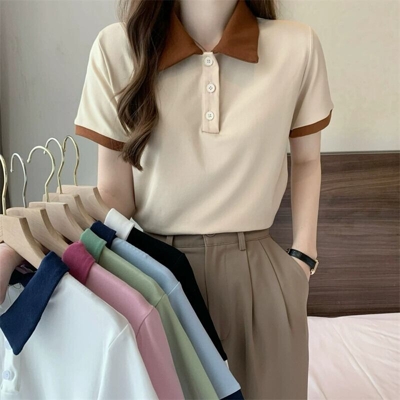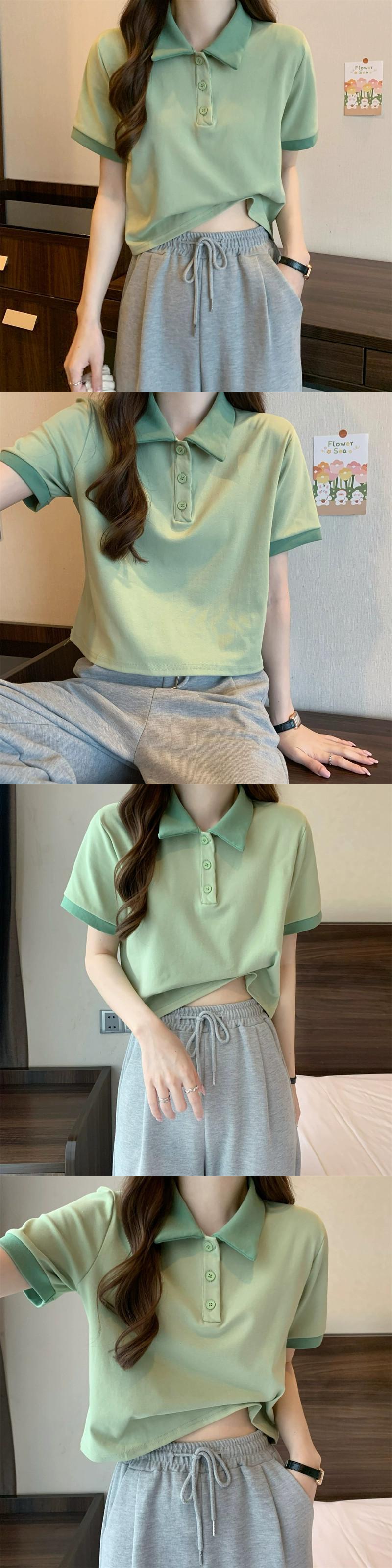 グリーン半袖 tシャツの女性の夏のシックなファッション eign スタイルルーズシックなオールマッチフロントショルダーポロシャツショートトップ サマー 夏物 746007222446243 | framboise21