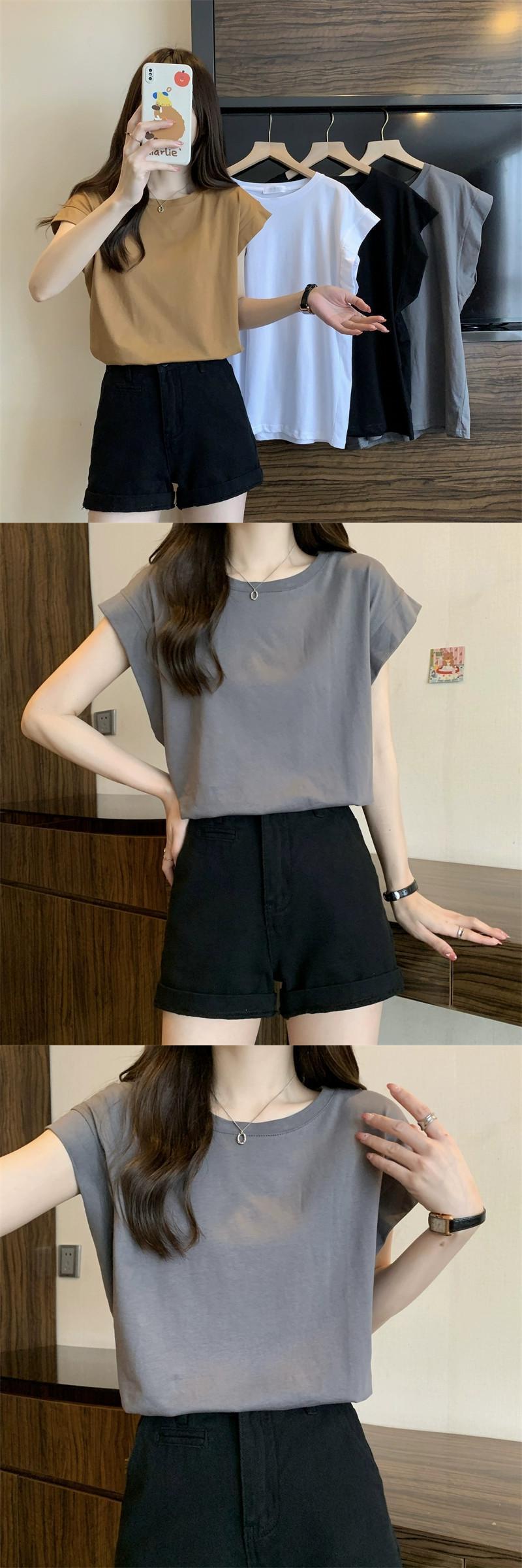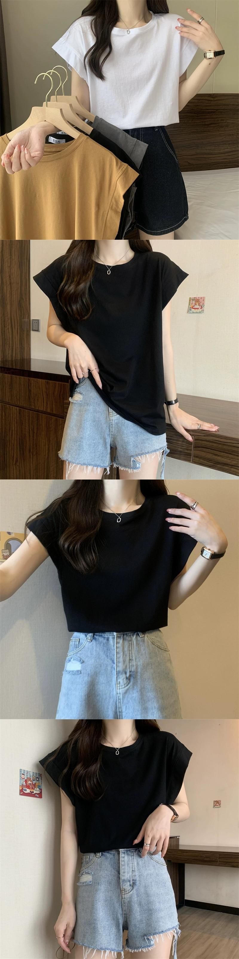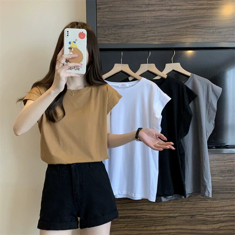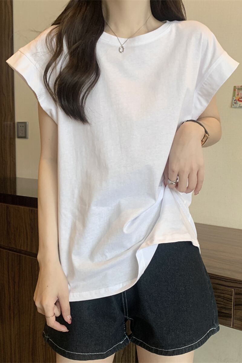 白半袖 Tシャツレディース 2023 夏の新しいファッションデザインセンスゆったりと多用途の小さなフライングスリーブラウンドネックトップ潮 ホワイト サマー 夏物 Oネック 7460065041212195 | framboise21
