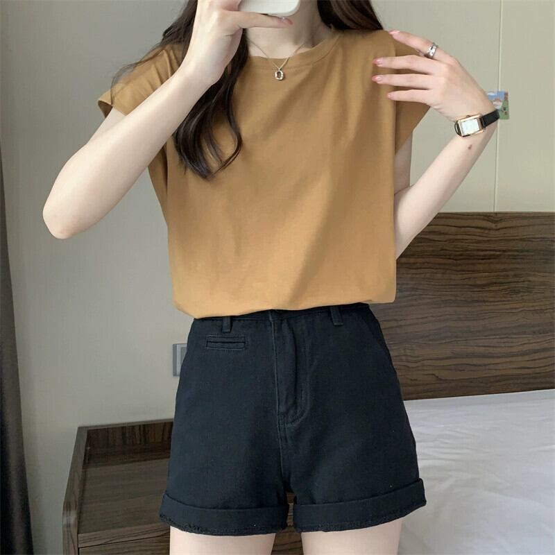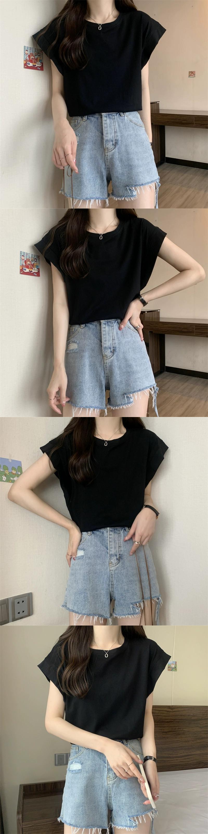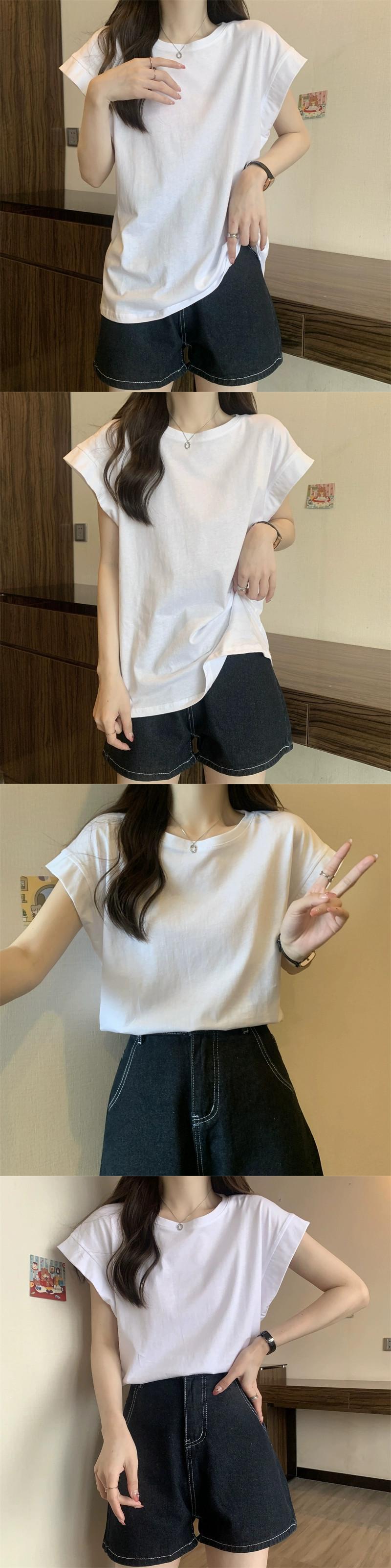 白半袖 Tシャツレディース 2023 夏の新しいファッションデザインセンスゆったりと多用途の小さなフライングスリーブラウンドネックトップ潮 ホワイト サマー 夏物 Oネック 7460065041212195 | framboise21
