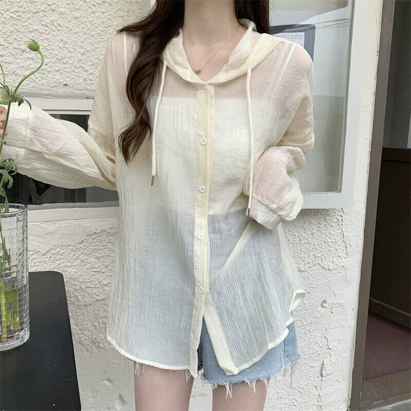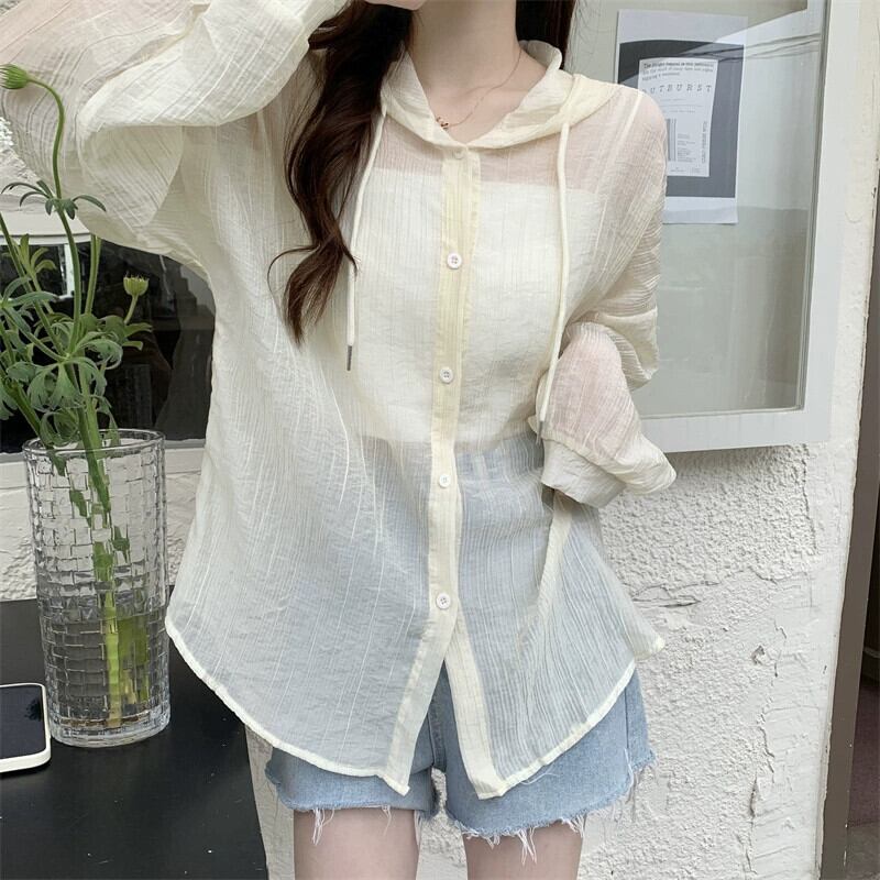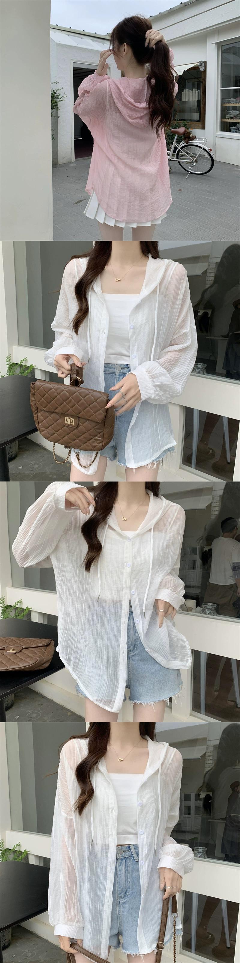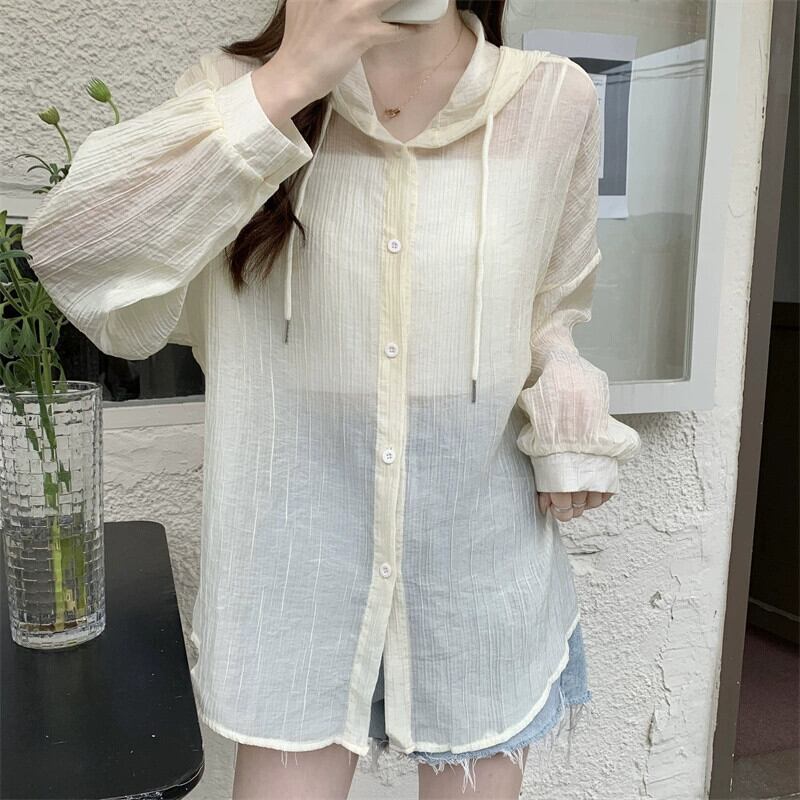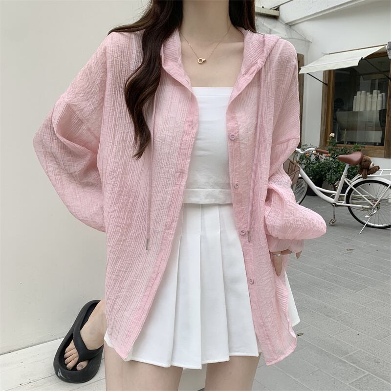 ホワイトテクスチャー日焼け止めレディース夏のファッションウエスタンスタイルの薄いシャツジャケットミッドレングスフード付きシャツ レッド サマー 夏物 746007006474820 | framboise21