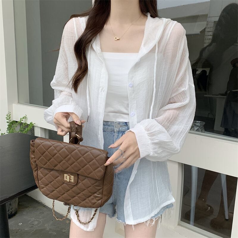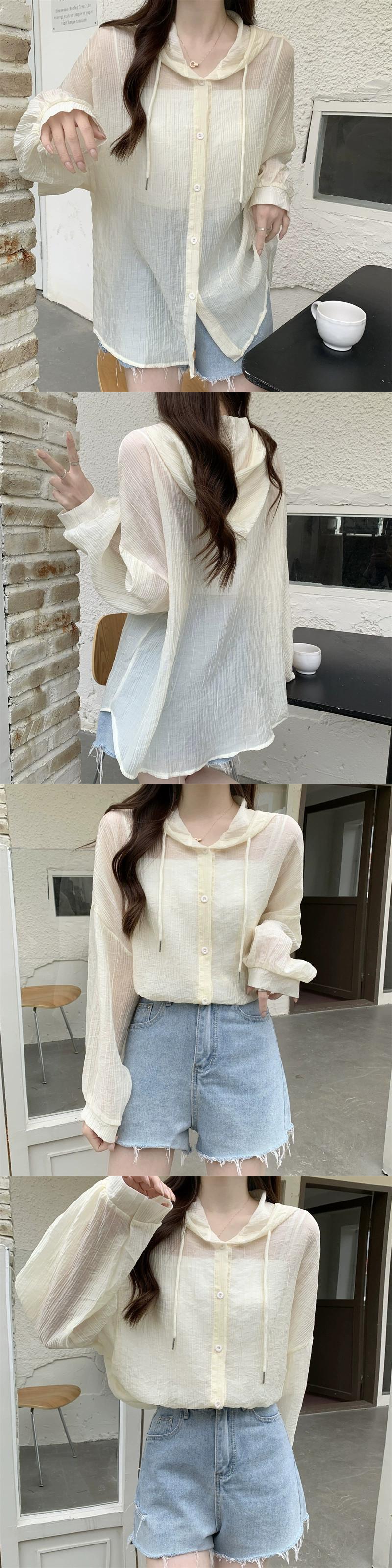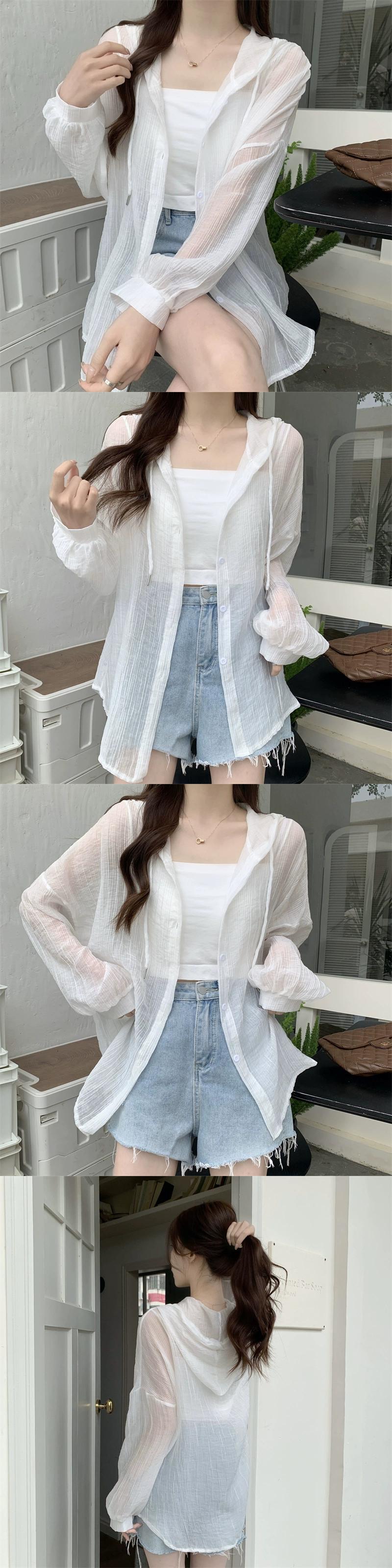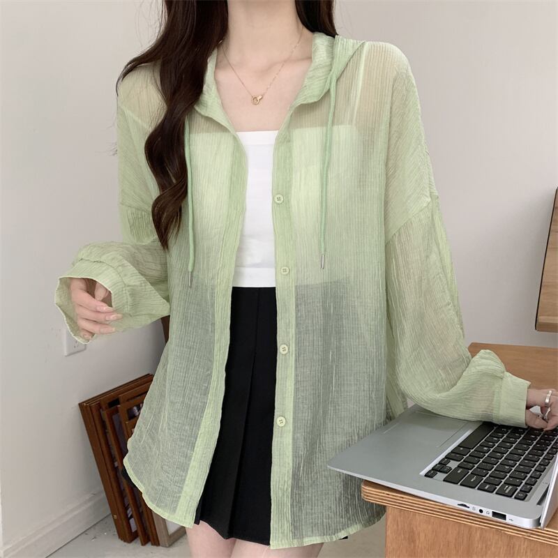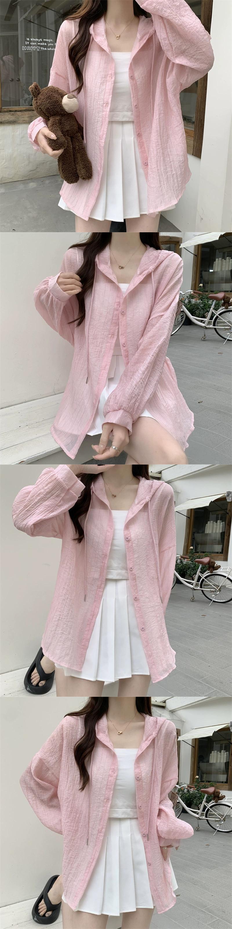 ホワイトテクスチャー日焼け止めレディース夏のファッションウエスタンスタイルの薄いシャツジャケットミッドレングスフード付きシャツ レッド サマー 夏物 746007006474820 | framboise21