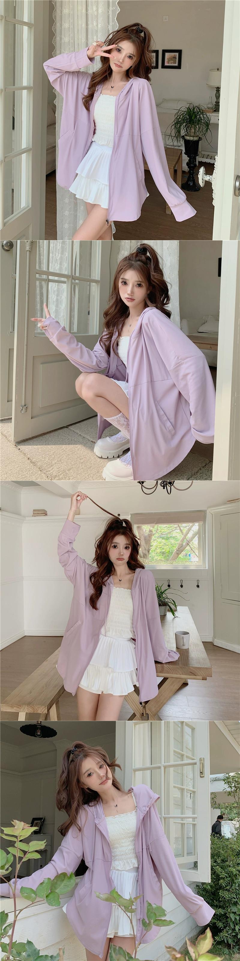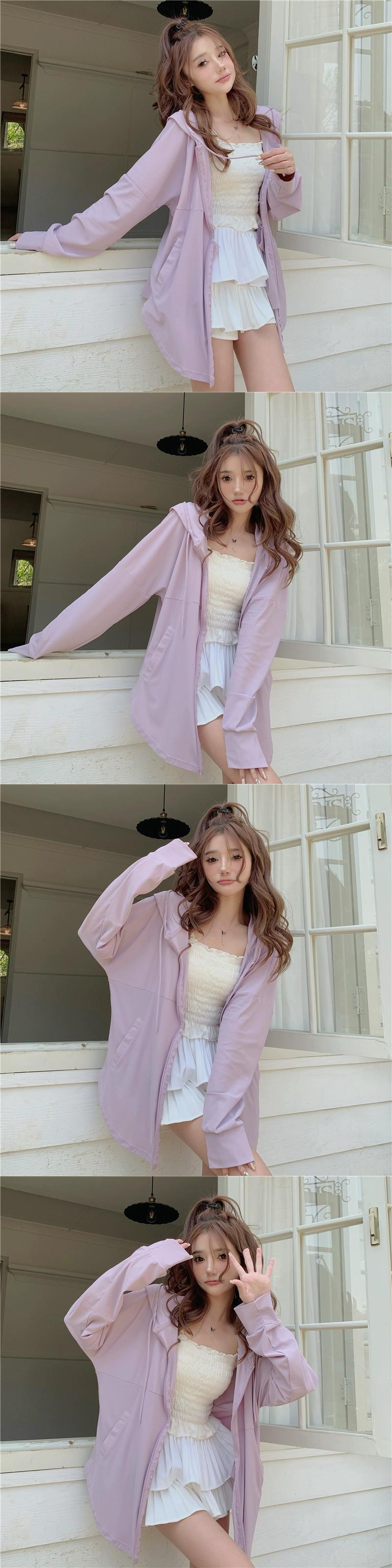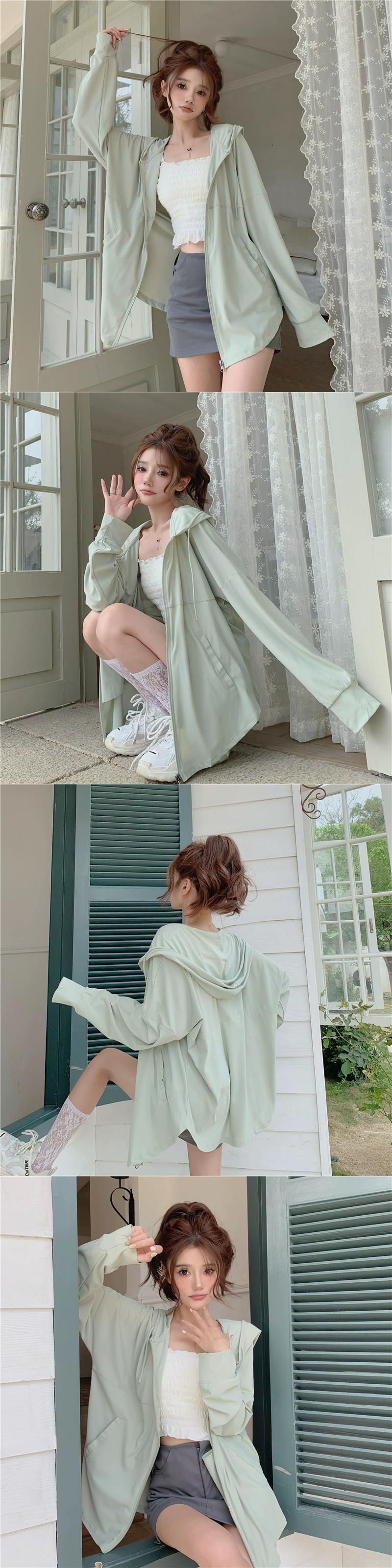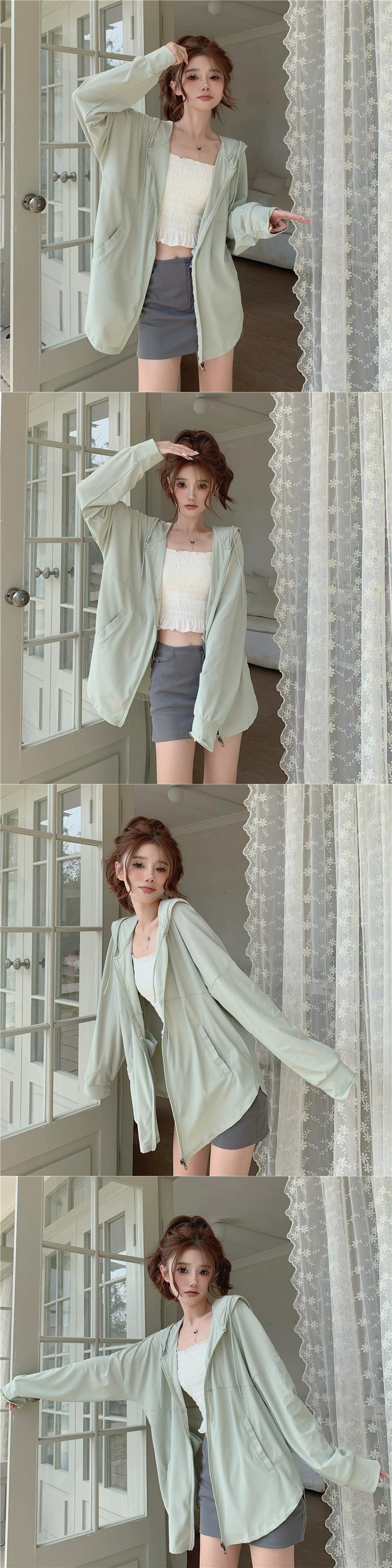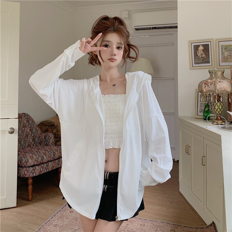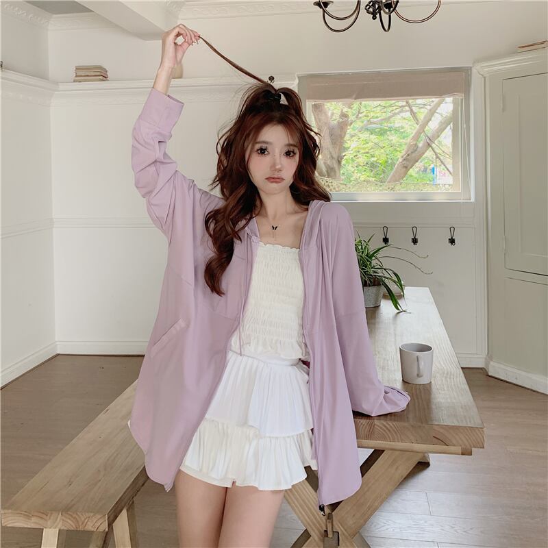 糸タイプのアイスシルク日焼け止め女性の夏のファッション軽くて通気性のある日焼け止めミッドレングスのフード付きカーディガンジャケット サマー 夏物 7460016366075892 | framboise21