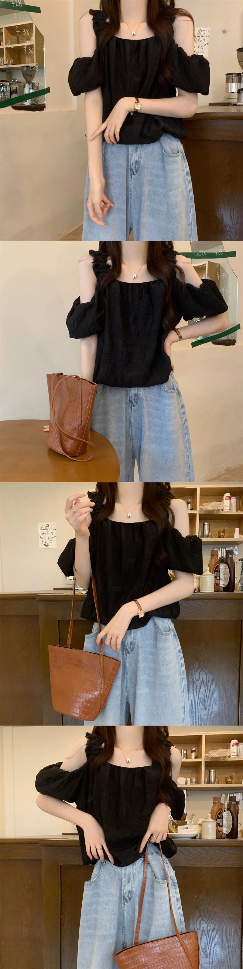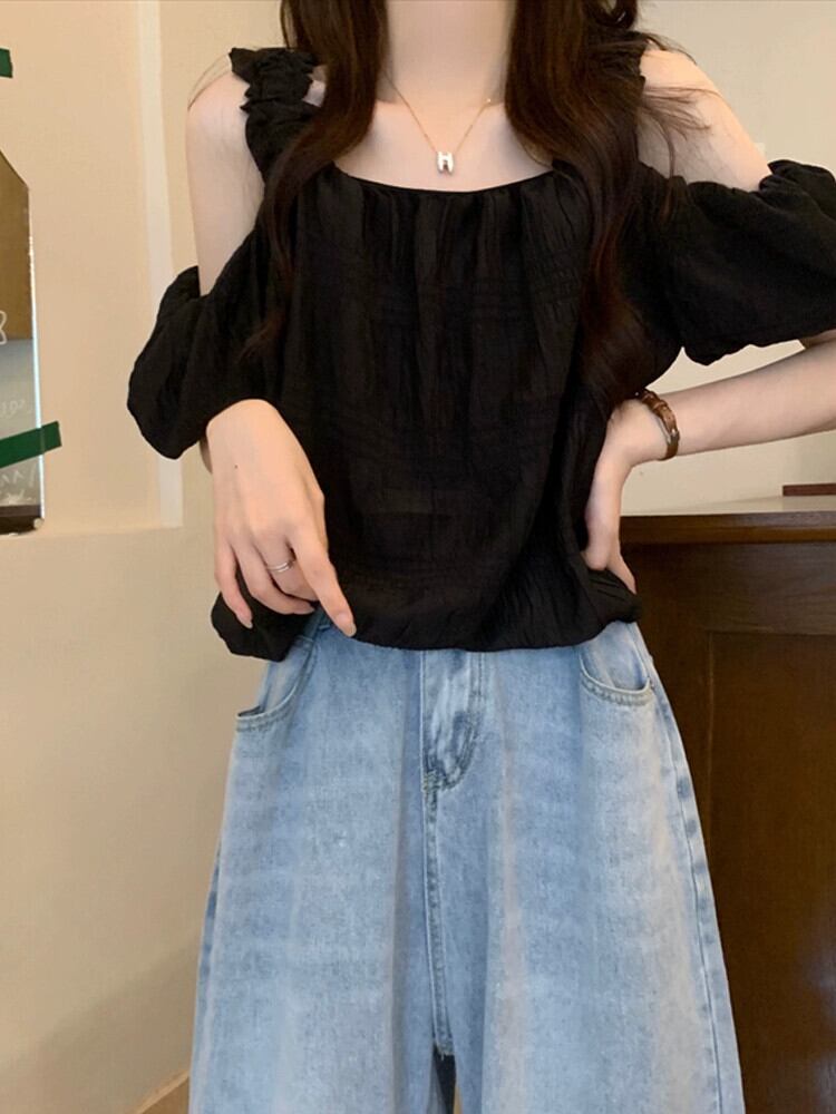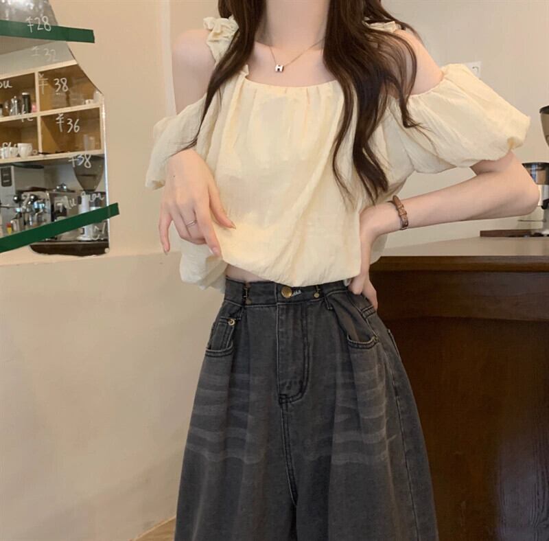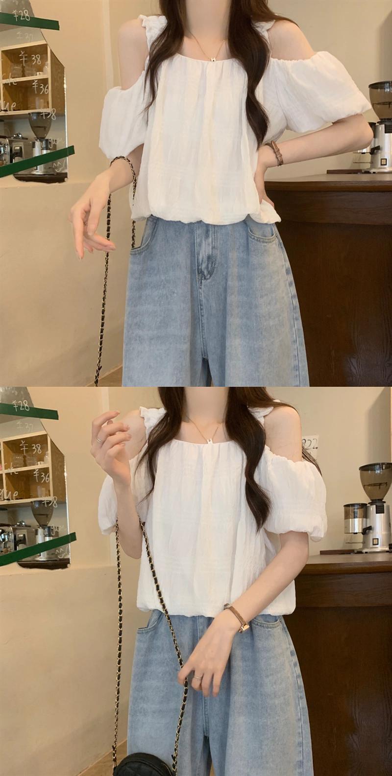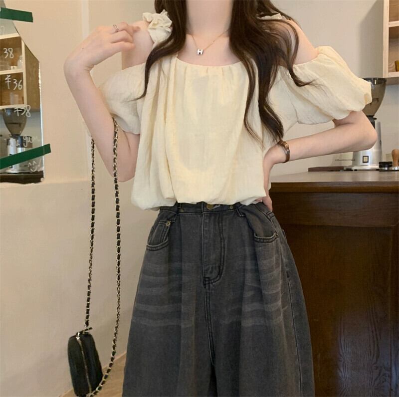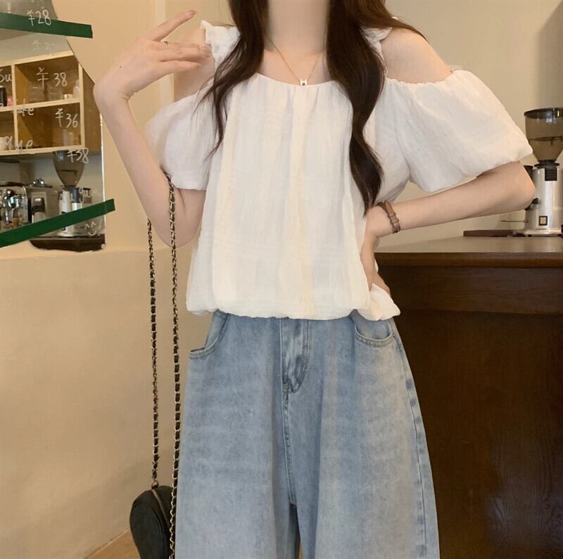 ピンクのスクエアカラーバブル半袖シャツの女性の 2023 夏の新しいデザインセンスルーズシックなショートストラップレストップ サマー 夏物 スクウェア 7460011894671224 | framboise21