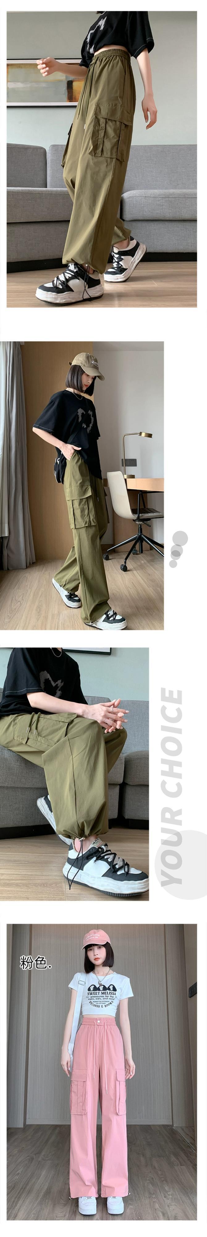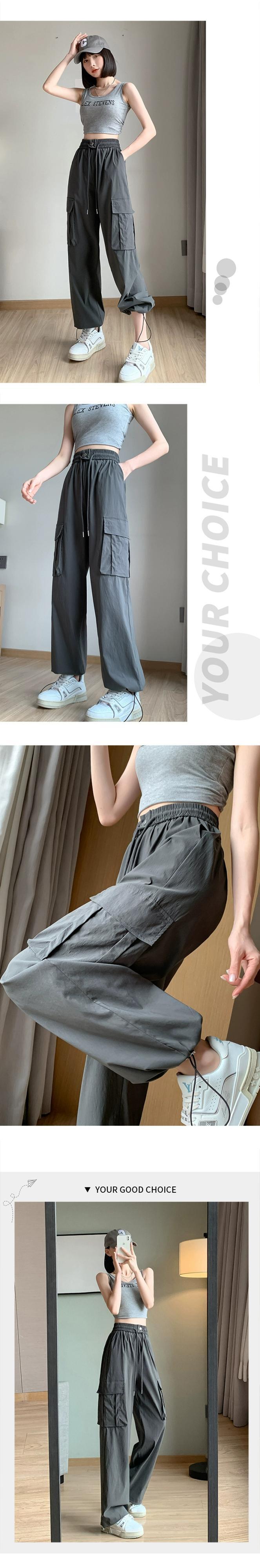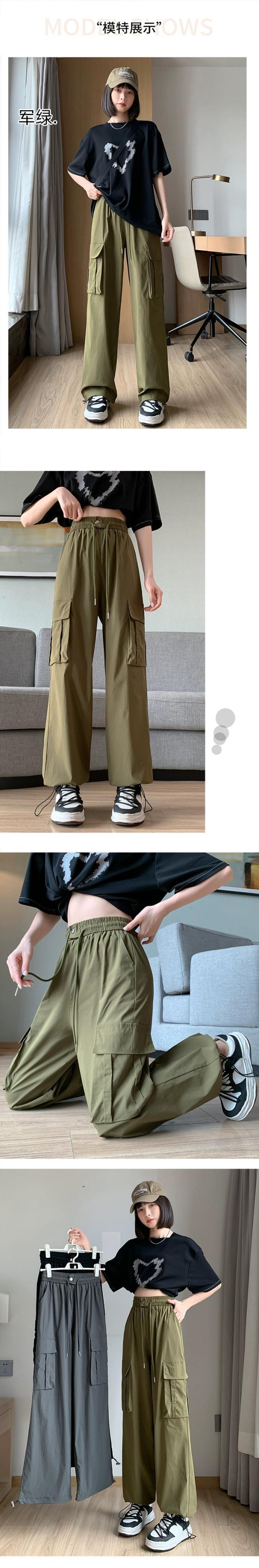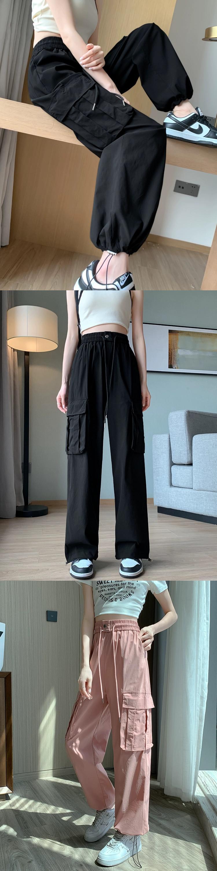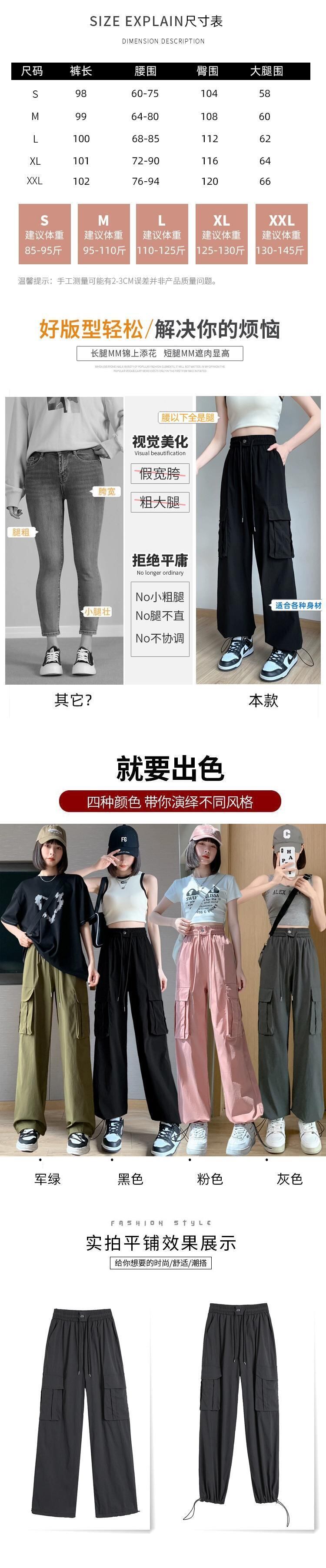 アメリカンスタイルの黒の速乾性オーバーオールレディースサマーデザインアイスシルクワイドレッグパンツストレートハイウエストドローストリングパンツ ハイウェスト ブラック 夏物 7460079341136288 | framboise21