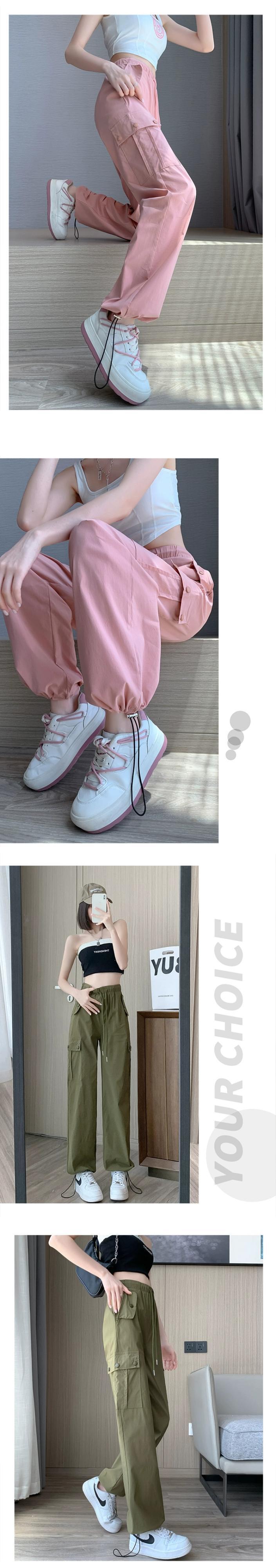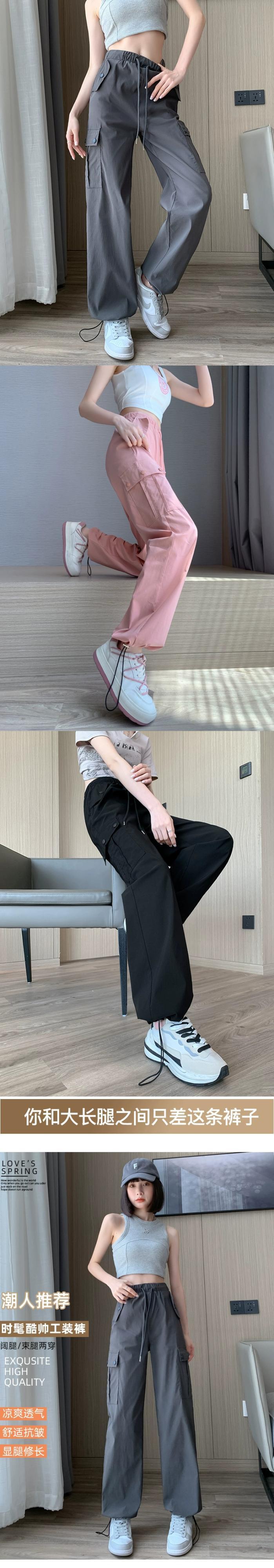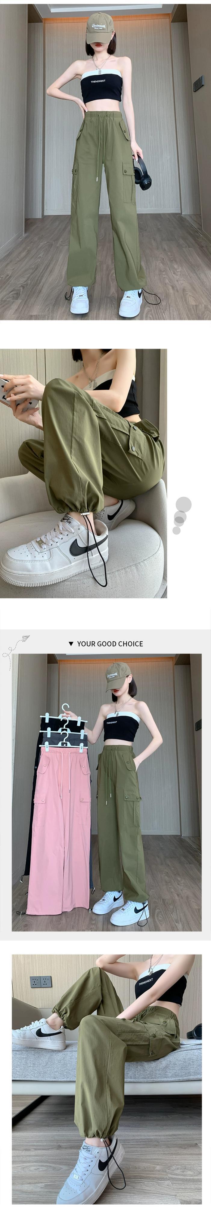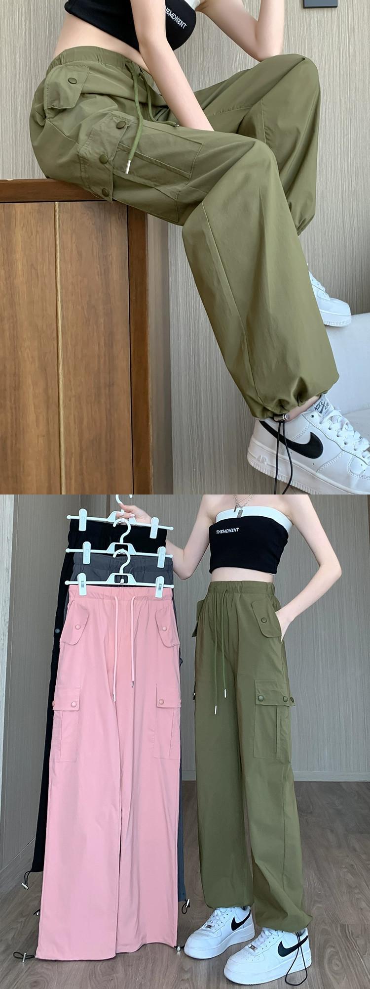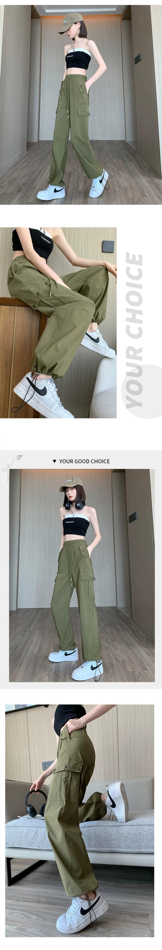 アメリカンスタイルのアーミーグリーンオーバーオールレディース夏薄手スポーツ速乾パンツルーズカジュアルストレートハイウエストパンツ サマー 夏物 746002642567213 | framboise21