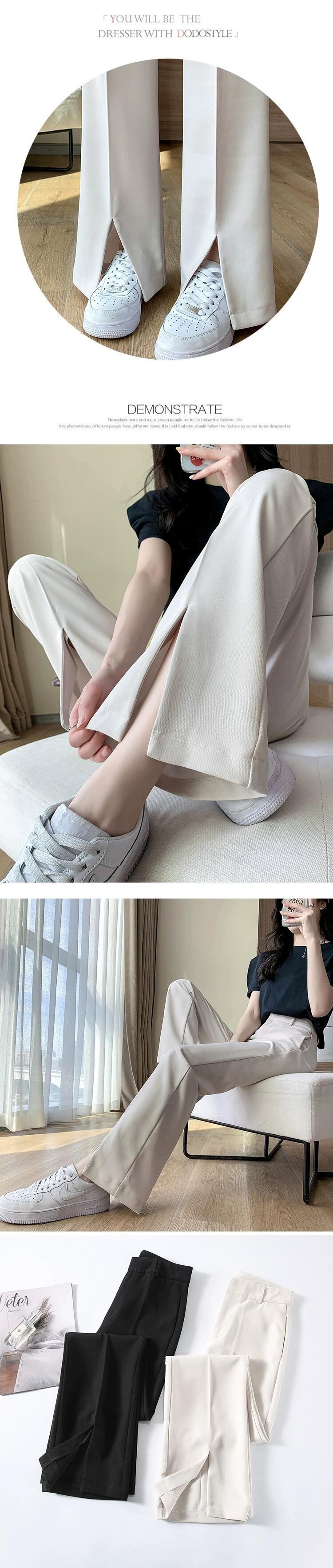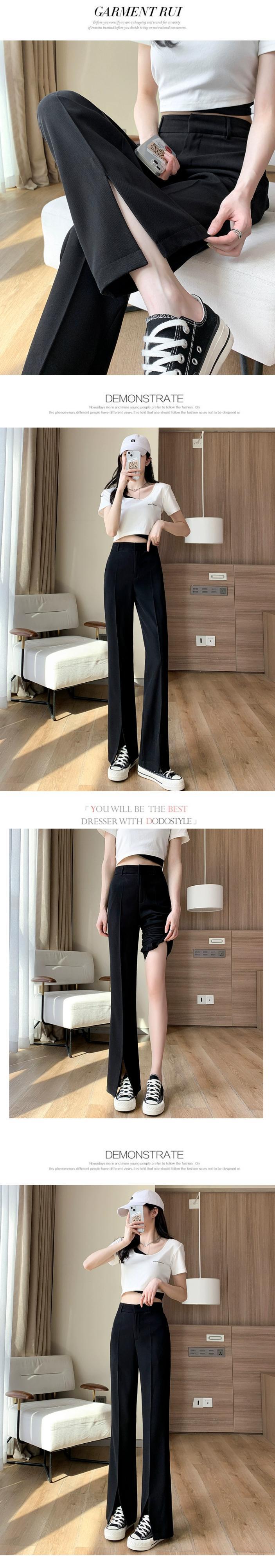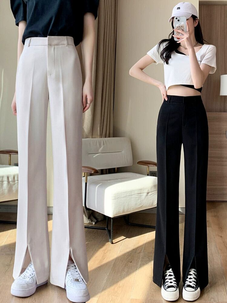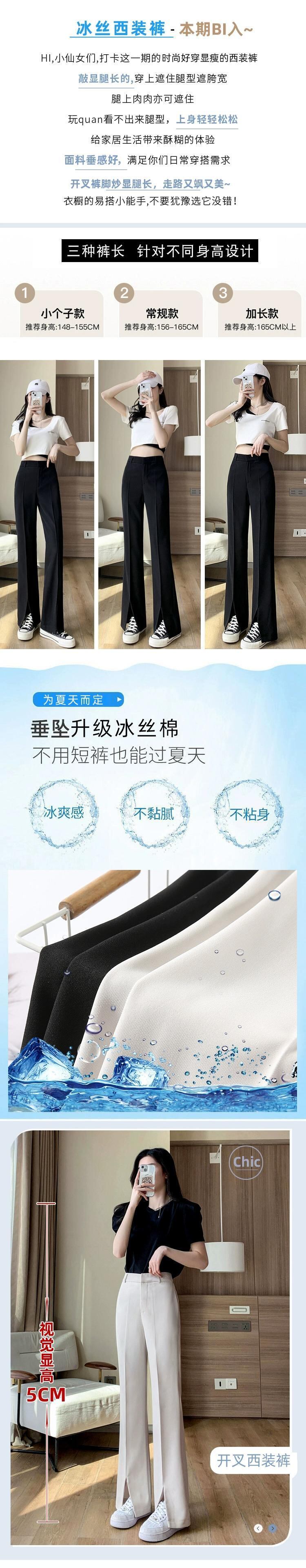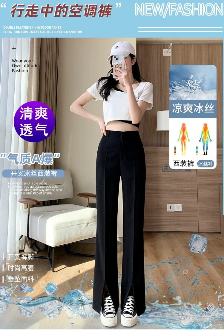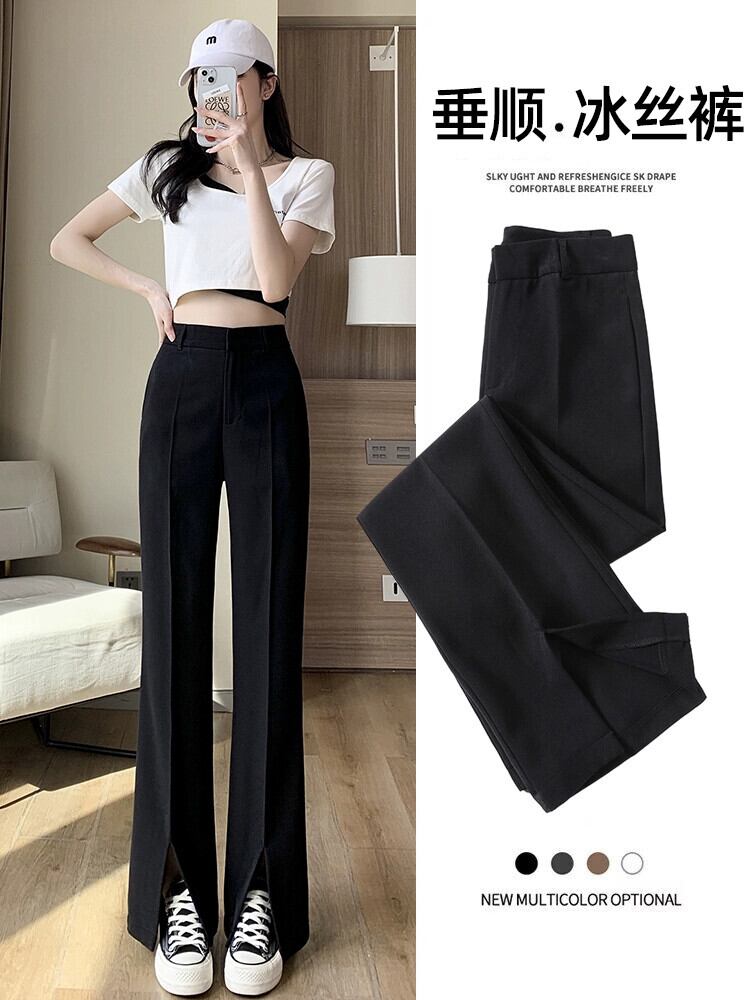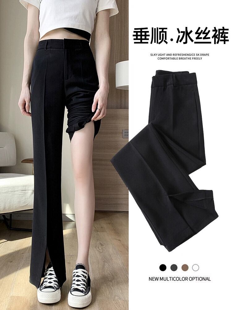 ブラックアイスシルクドレープストレートレッグパンツレディース夏小さな薄いセクションわずかにブーツスーツパンツハイウエストスリムスリットパンツ ハイウェスト サマー 夏物 7460092414943246 | framboise21