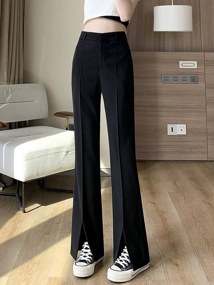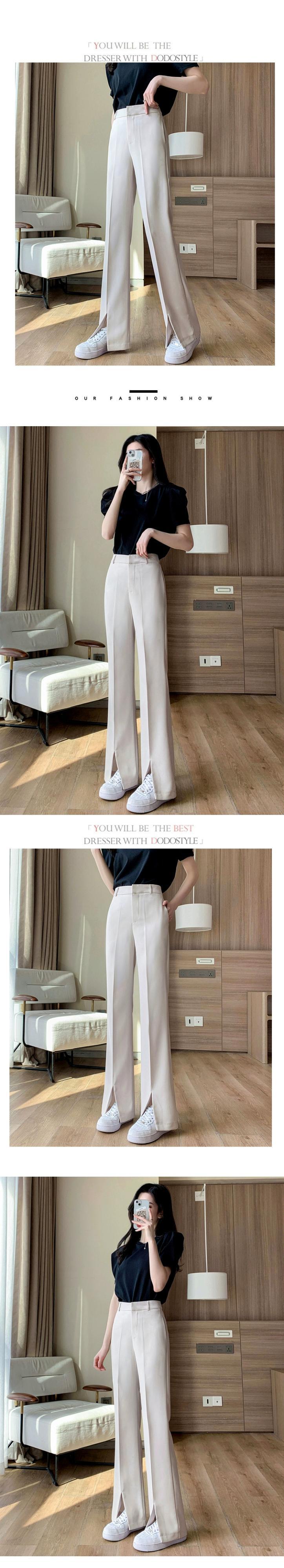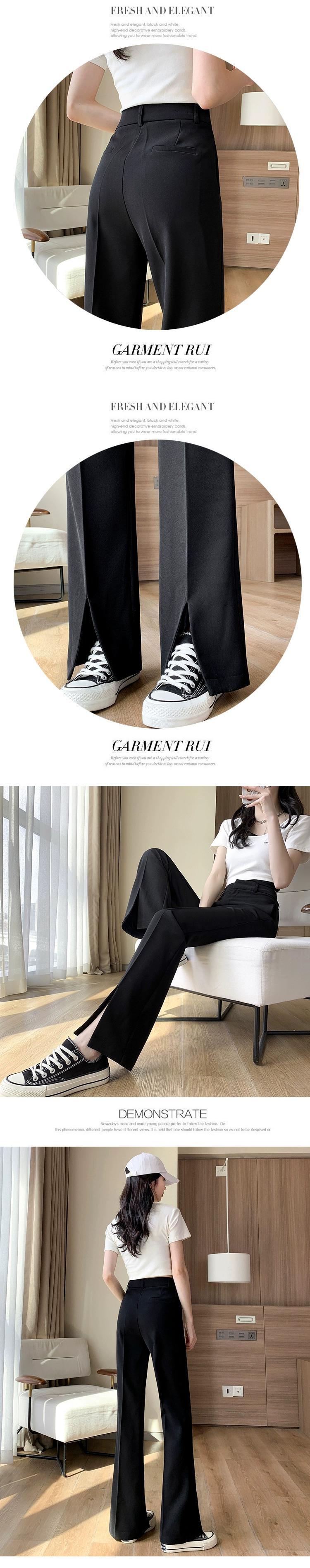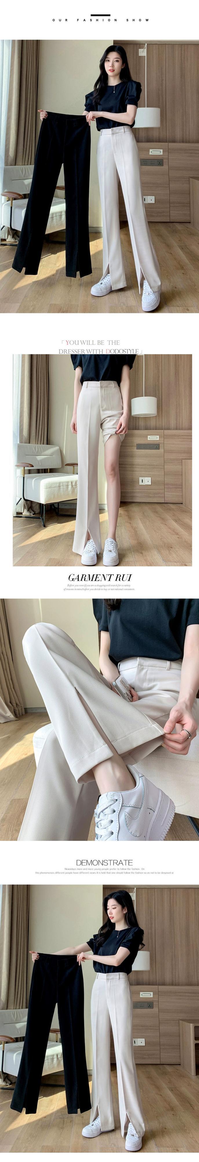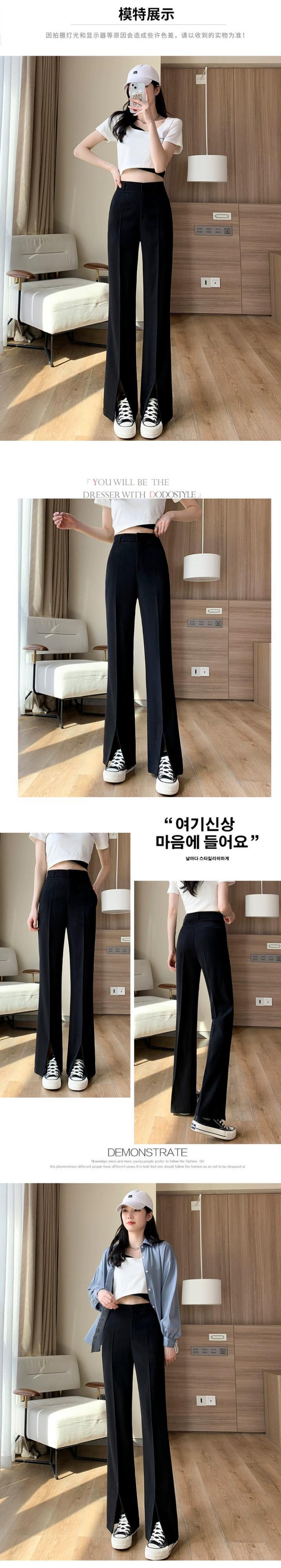 ブラックアイスシルクドレープストレートレッグパンツレディース夏小さな薄いセクションわずかにブーツスーツパンツハイウエストスリムスリットパンツ ハイウェスト サマー 夏物 7460092414943246 | framboise21