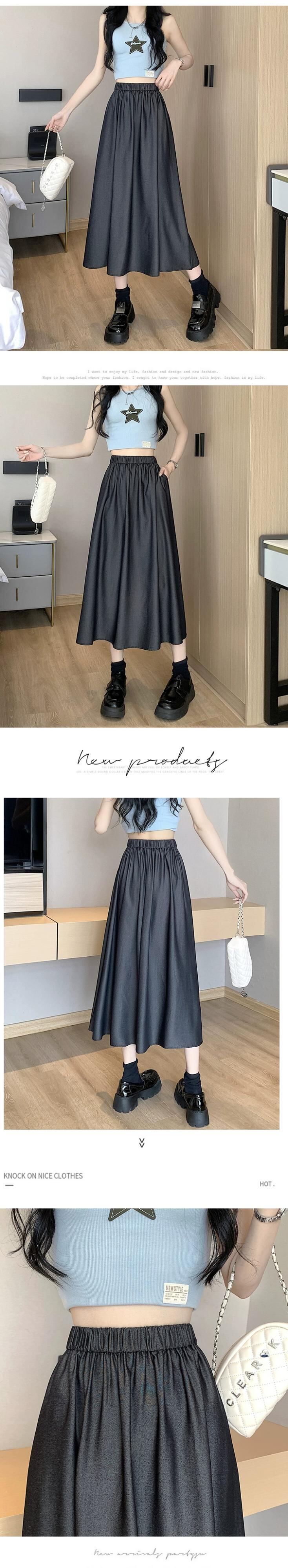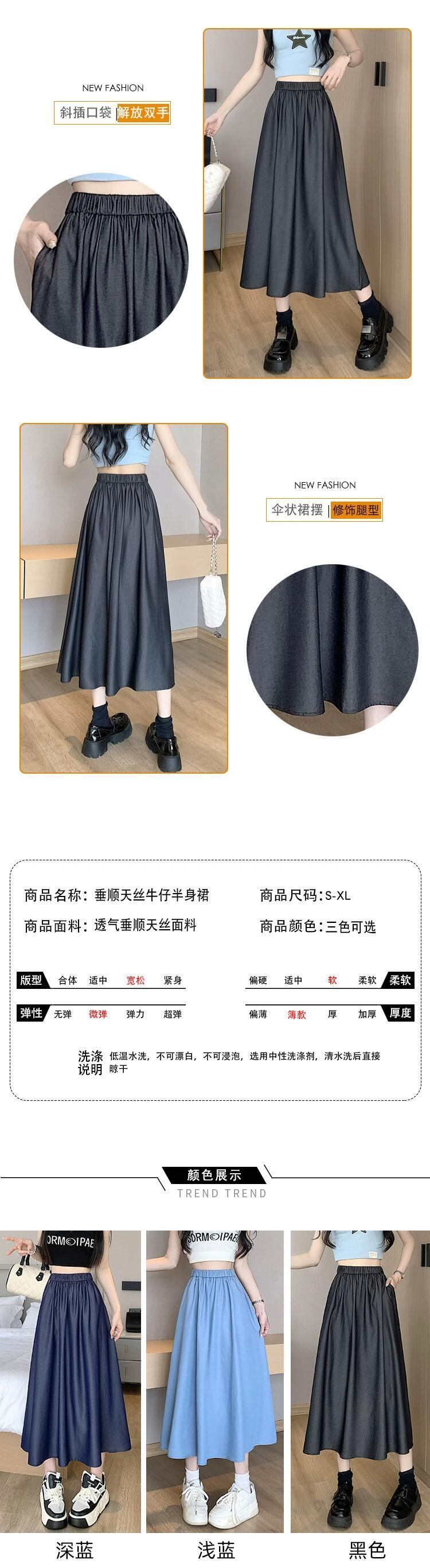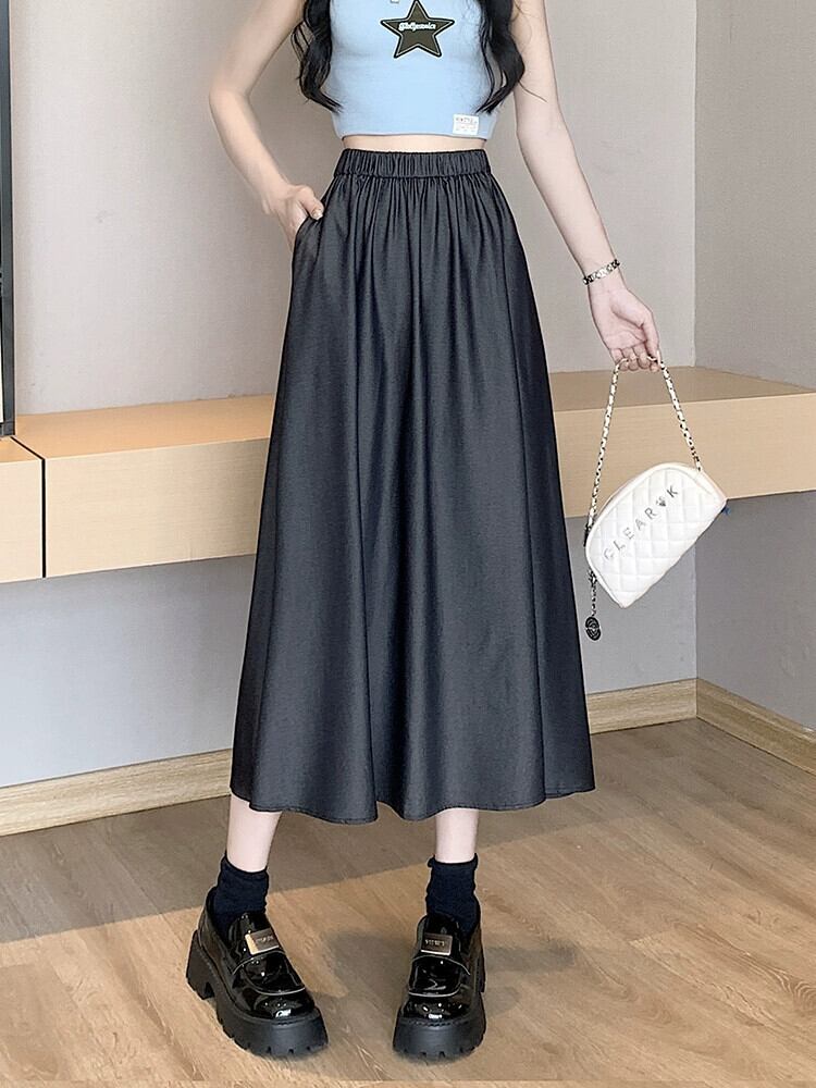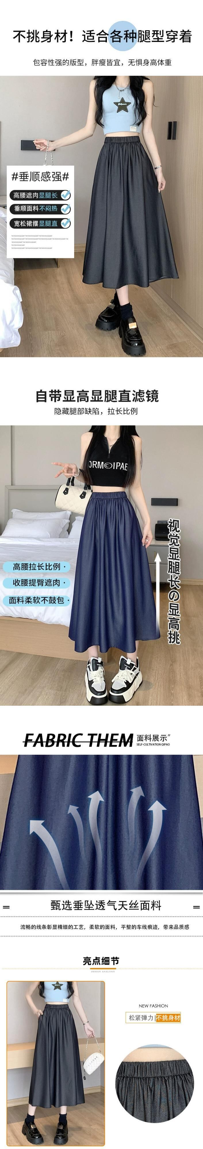 薄いテンセルデニムスカート女性の夏のレトロウエストスリム A ライン傘スカートミッドレングスドレープスイングスカート サマー 夏物 Aライン 7460079431677928 | framboise21