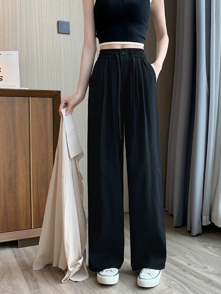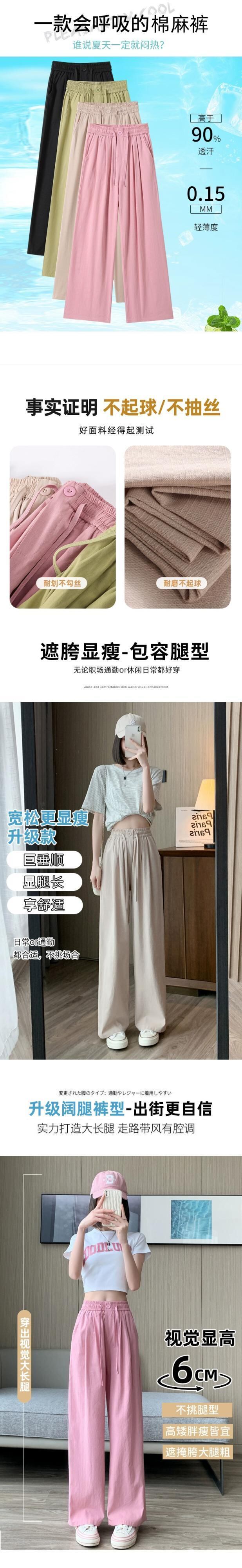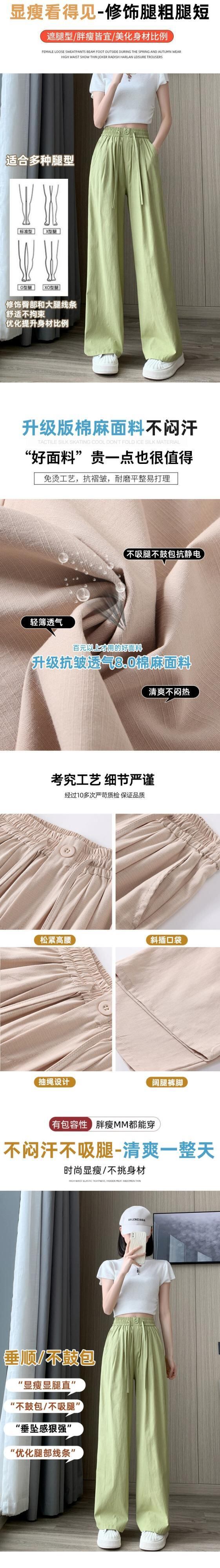 アイスシルクコットンリネンワイドレッグパンツ女性の夏の薄いセクションドレープナローバージョンパンツ小さなルーズストレートハイウエストカジュアルパンツ ハイウェスト サマー 夏物 7460097313256595 | framboise21