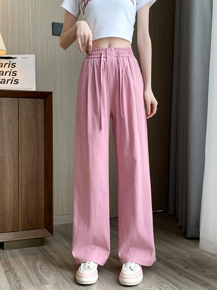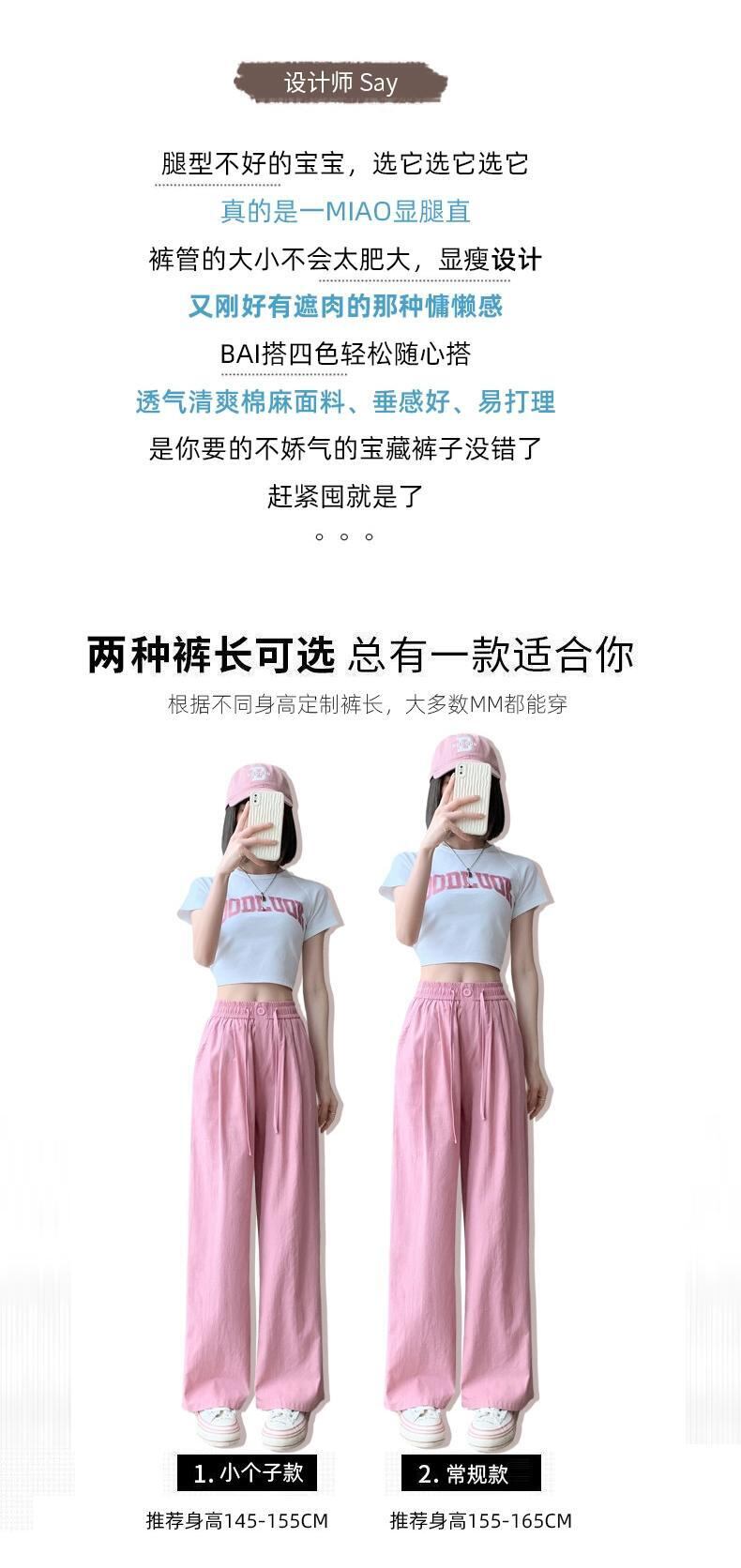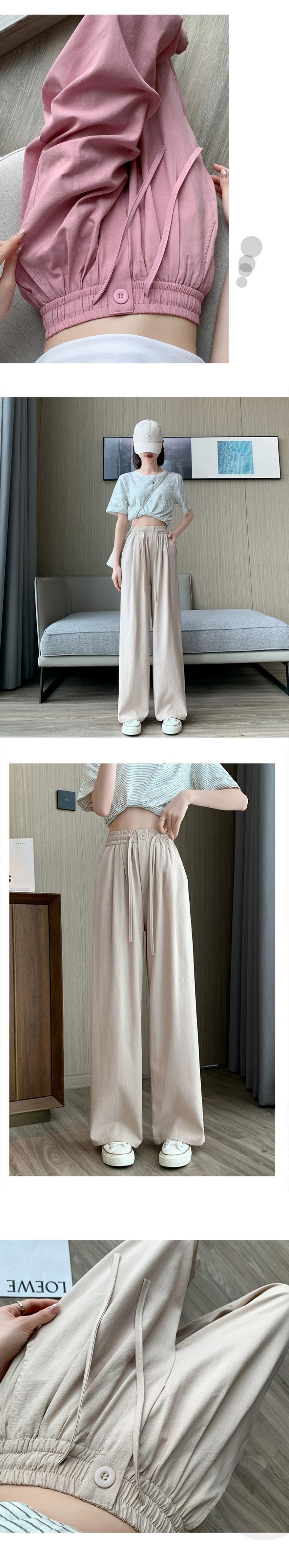 アイスシルクコットンリネンワイドレッグパンツ女性の夏の薄いセクションドレープナローバージョンパンツ小さなルーズストレートハイウエストカジュアルパンツ ハイウェスト サマー 夏物 7460097313256595 | framboise21