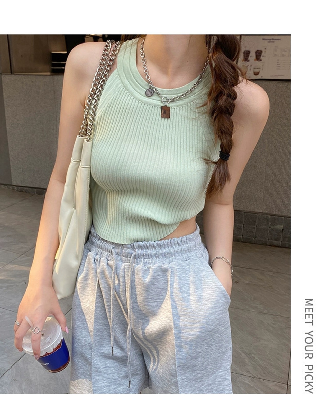 掘り肩、垂れネック、キャミソール、レディースサマーアウター、ニットアイスシルクチューブトップ、ラップチェスト、ホワイトボトムトップ 夏物 7460080828750387