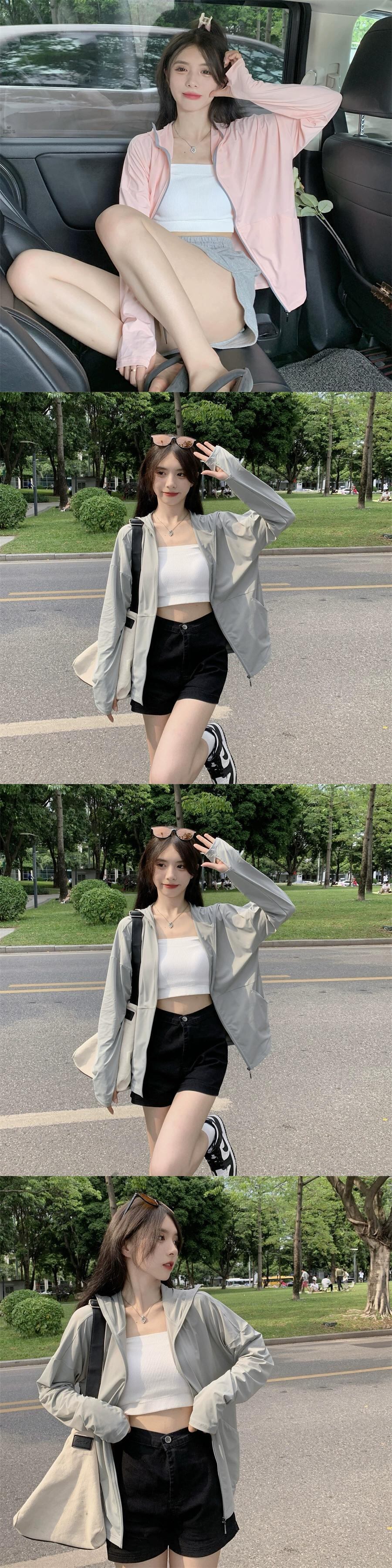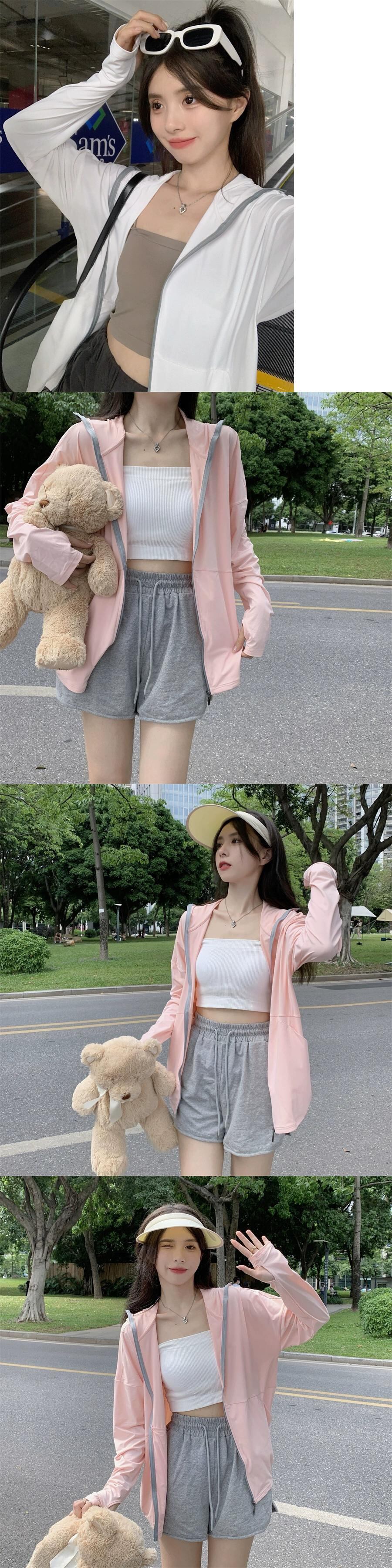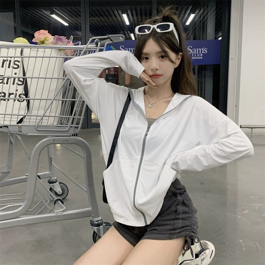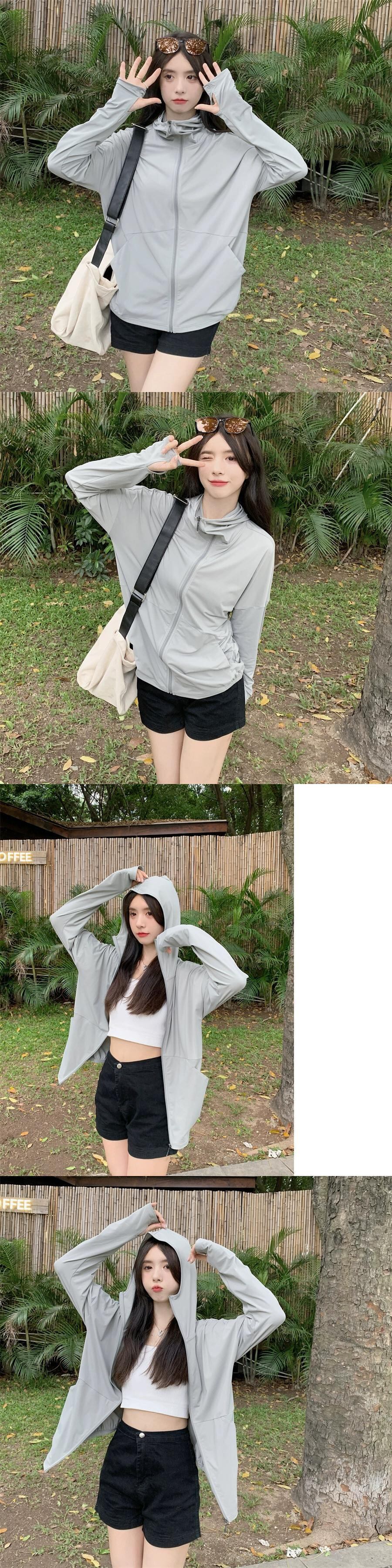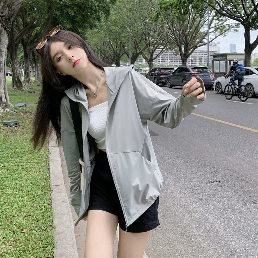 薄くて通気性のあるアイススリーブ日焼け止め服女性の夏の薄いセクションアイスシルク日焼け止め服ルーズカジュアルアウターウェアフード付きジャケット サマー 夏物 7460075500672187 | framboise21