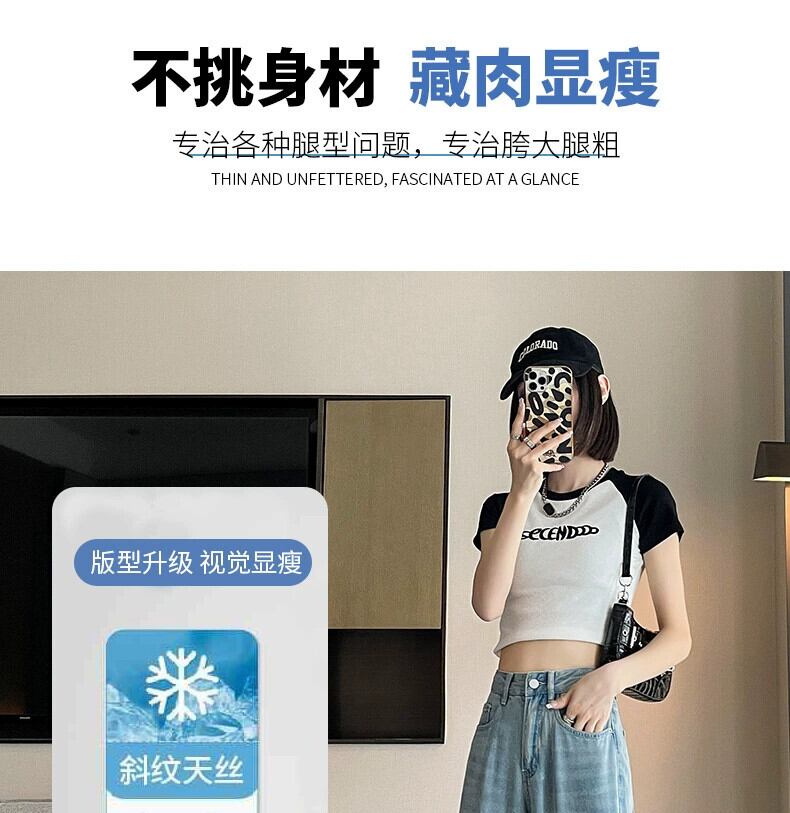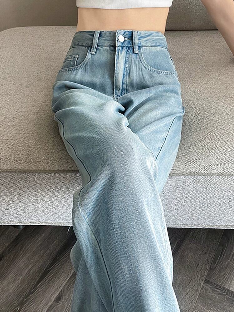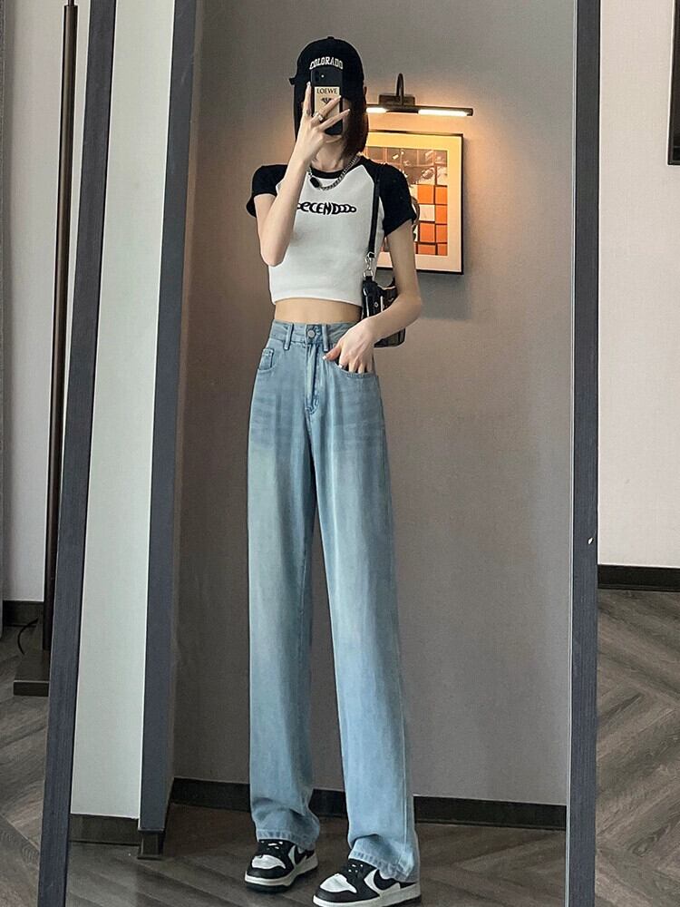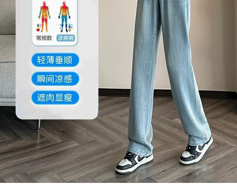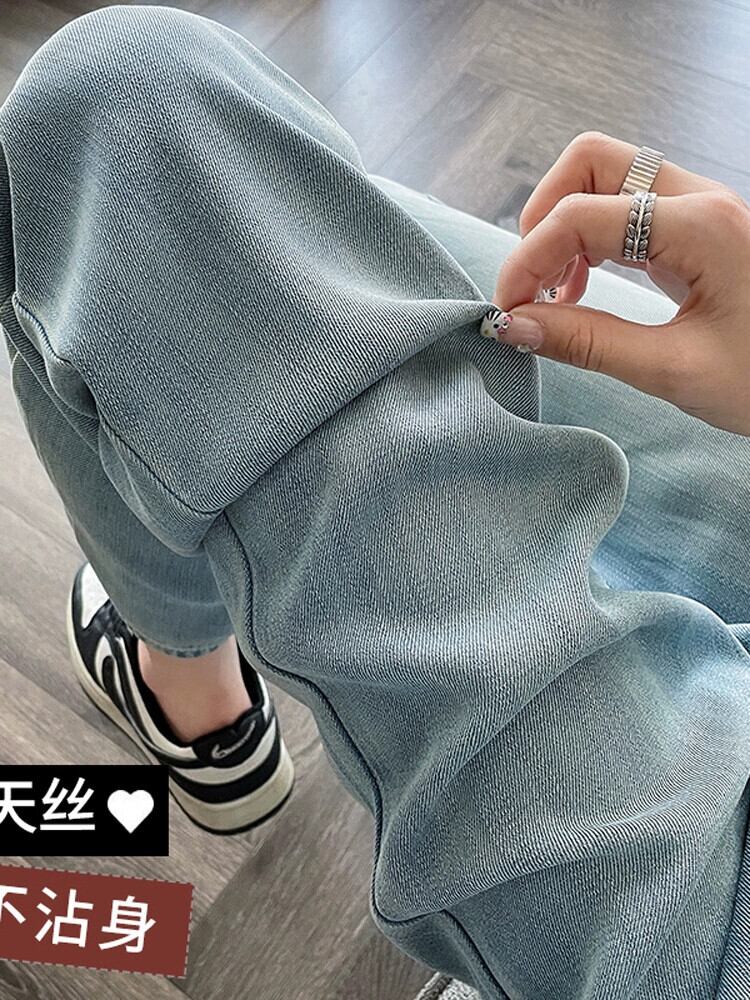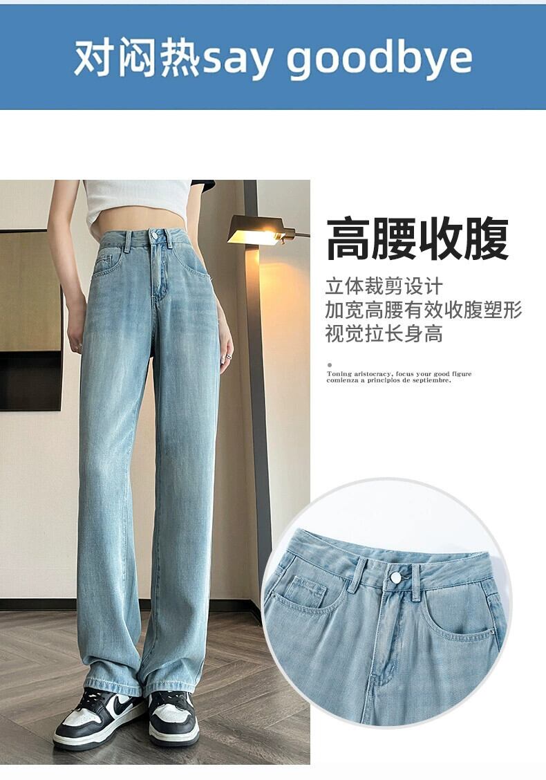 テンセル薄手ジーンズレディース夏ゆったり薄手オールマッチハイウエストストレートレッグワイドレッグパンツドレープフロアモップロングパンツ サマー 夏物 7460037198272595 | framboise21