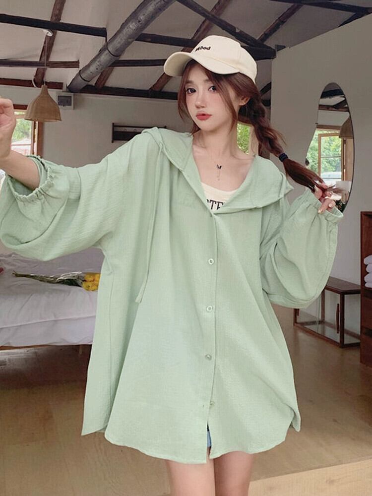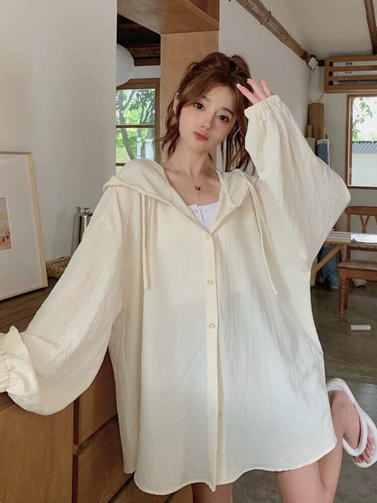 薄い日焼け防止服の女性の夏の 2023 新しいネットレッドスタイルルーズカジュアルアウターウェアミッドレングスフード付きジャケット サマー 夏物 7460065941899649 | framboise21