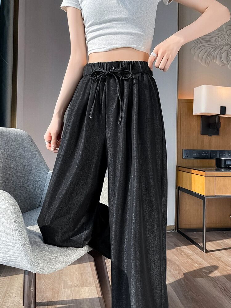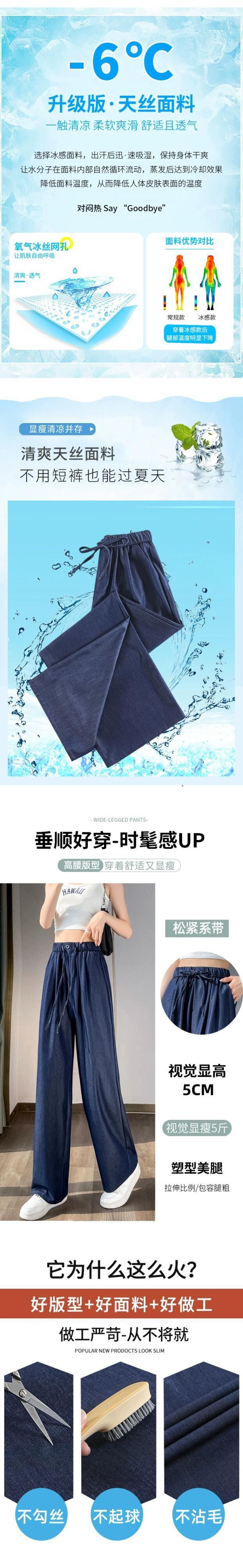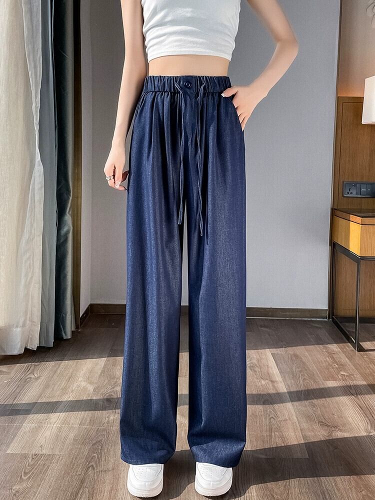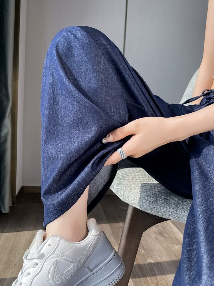 テンセルジーンズ薄部女性の 2023 夏の新しいアイスシルクワイドレッグパンツルーズストレートハイウエストドレープパンツ ハイウェスト サマー 夏物 746008575100630 | framboise21