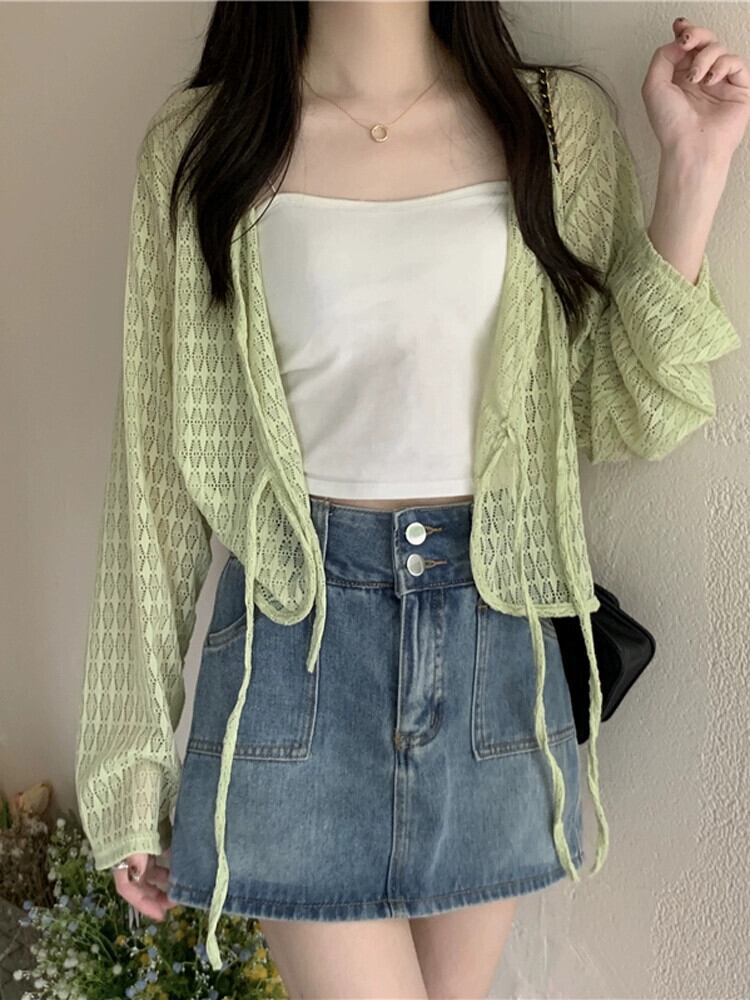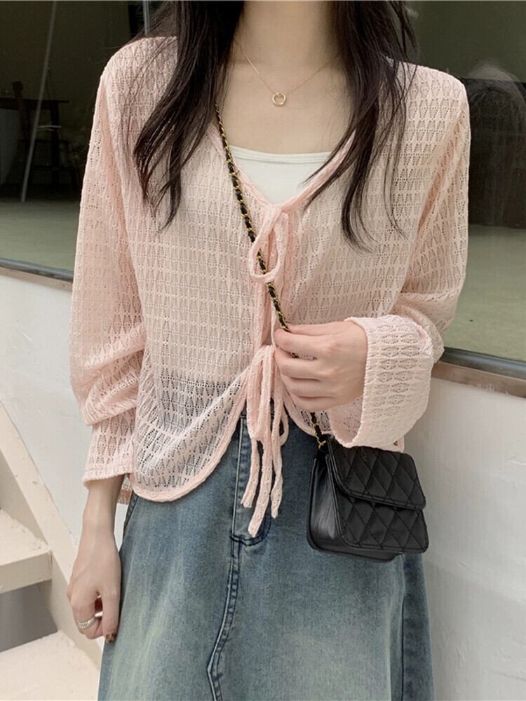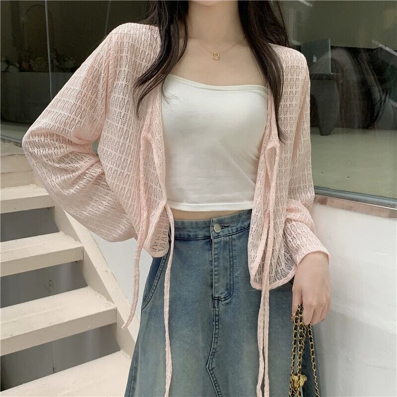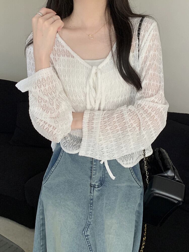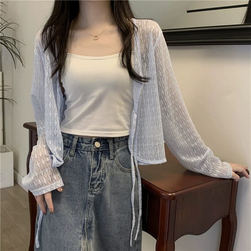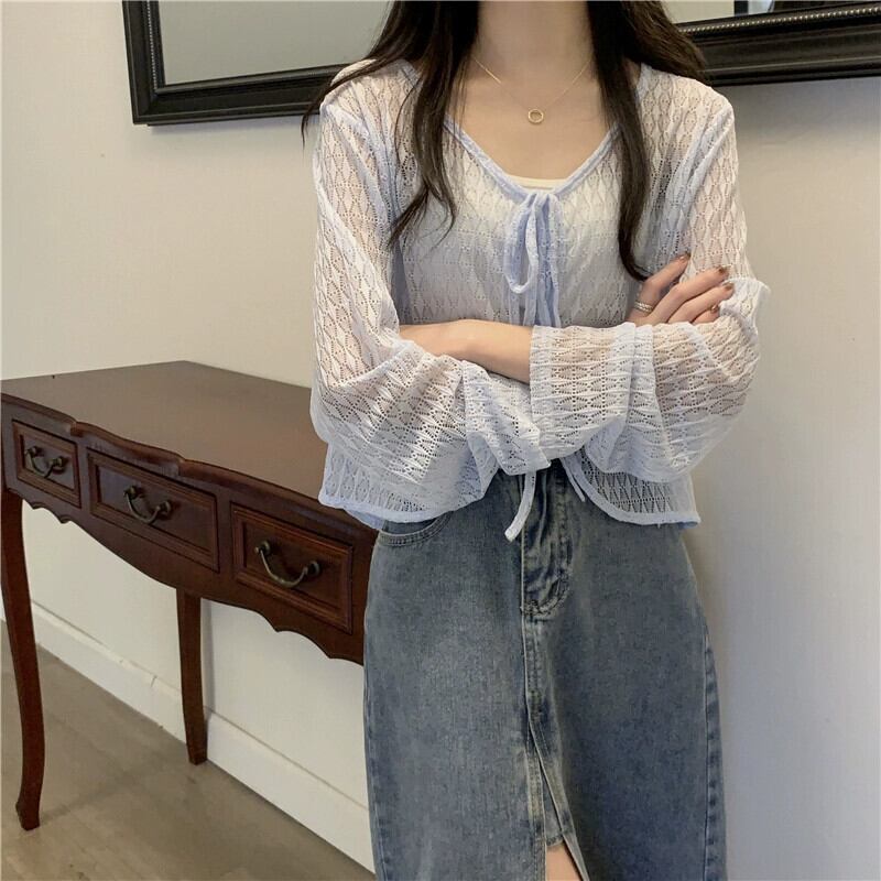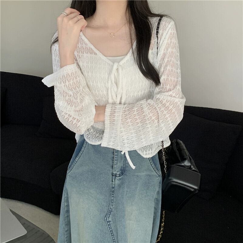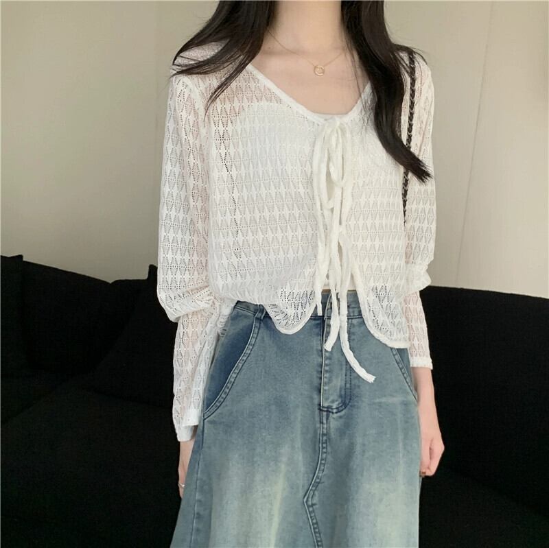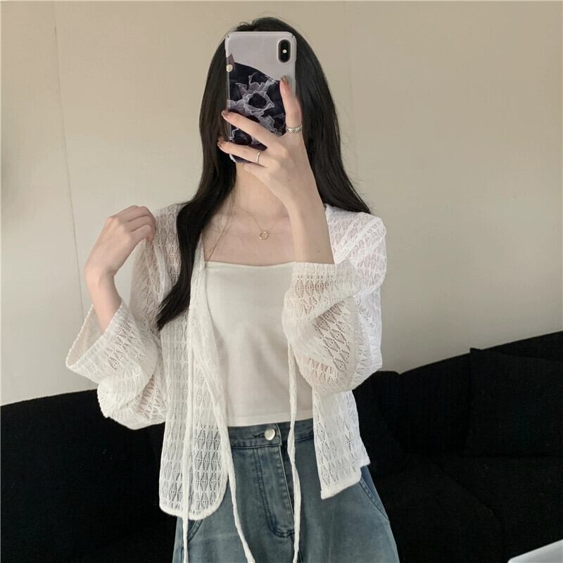 ホワイトアイスシルク日焼け止めカーディガン女性の夏サスペンダー中空薄セクションブラウスジャケットデザインセンスショートセクション小さなシャツ サマー 夏物 7460078230012431 | framboise21