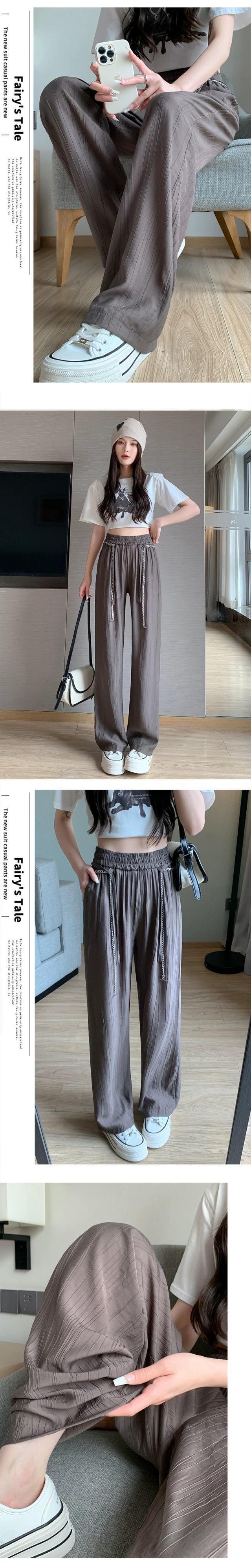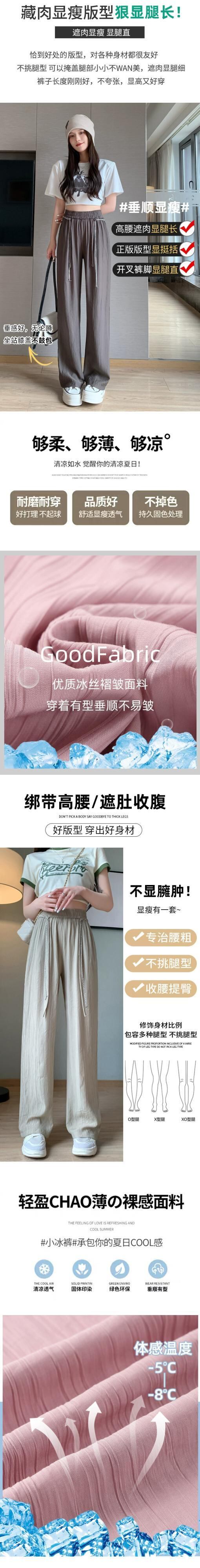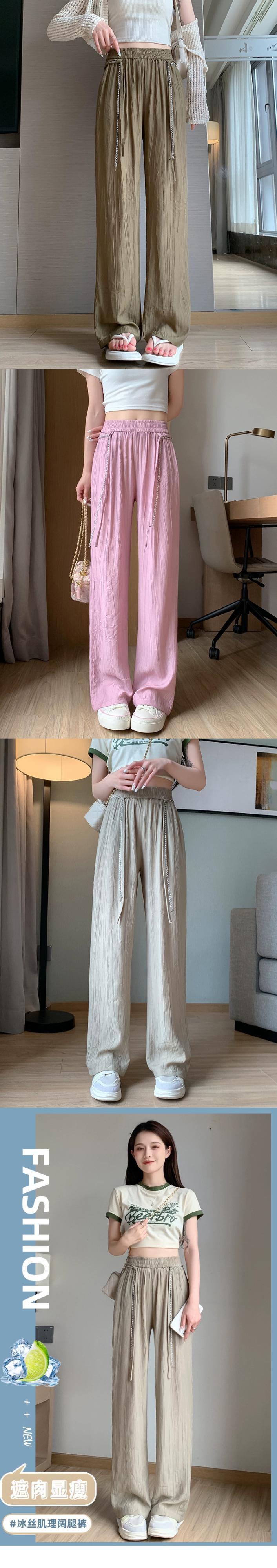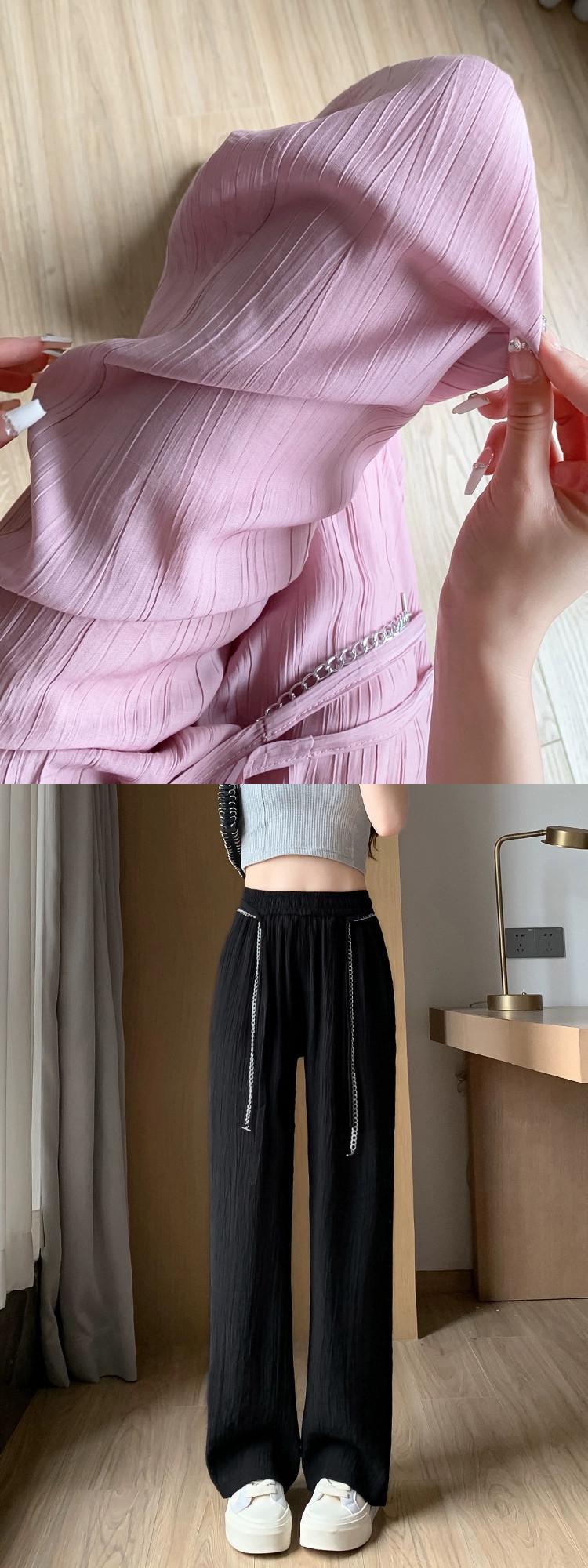 薄セクションプリーツアイスシルクワイドレッグパンツレディースサマーカラーチェーンハイウエストカジュアルパンツルーズストレートチューブドレープ日焼け止めパンツピンク ハイウェスト 夏物 7460038385660135 | framboise21