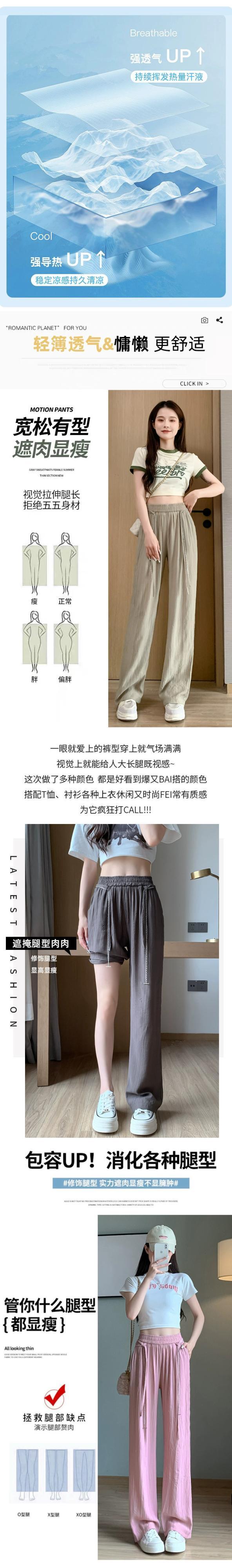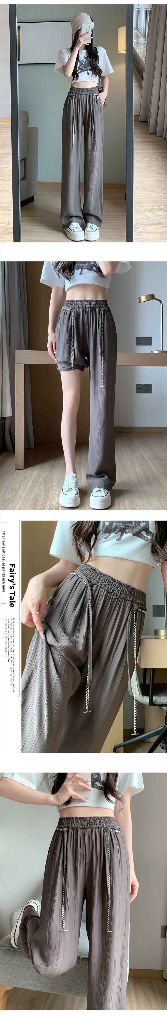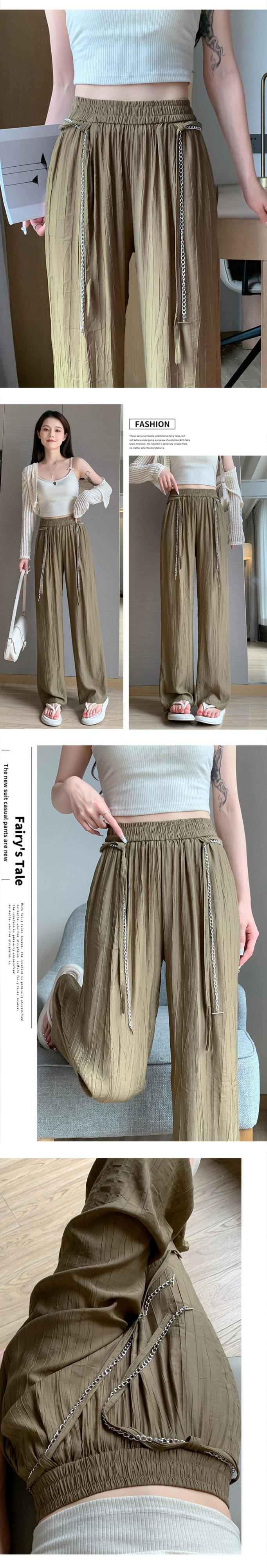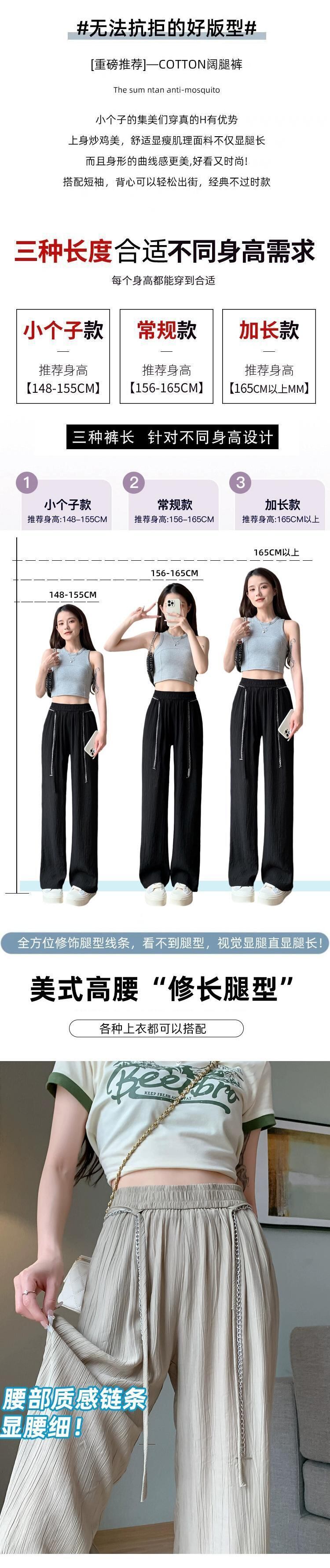 薄セクションプリーツアイスシルクワイドレッグパンツレディースサマーカラーチェーンハイウエストカジュアルパンツルーズストレートチューブドレープ日焼け止めパンツピンク ハイウェスト 夏物 7460038385660135 | framboise21