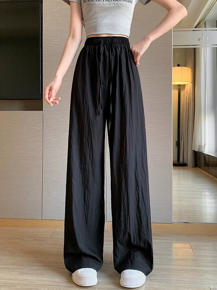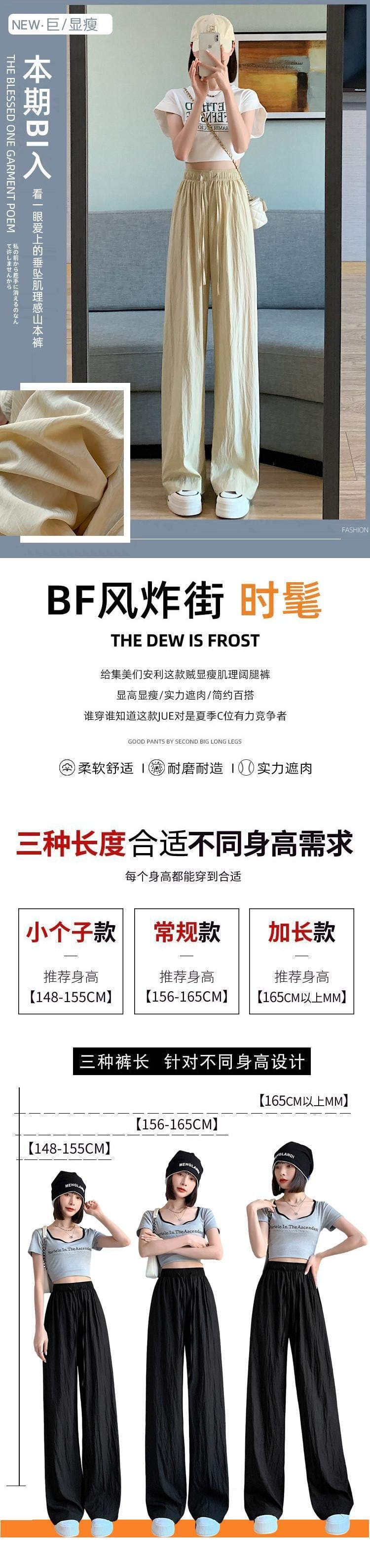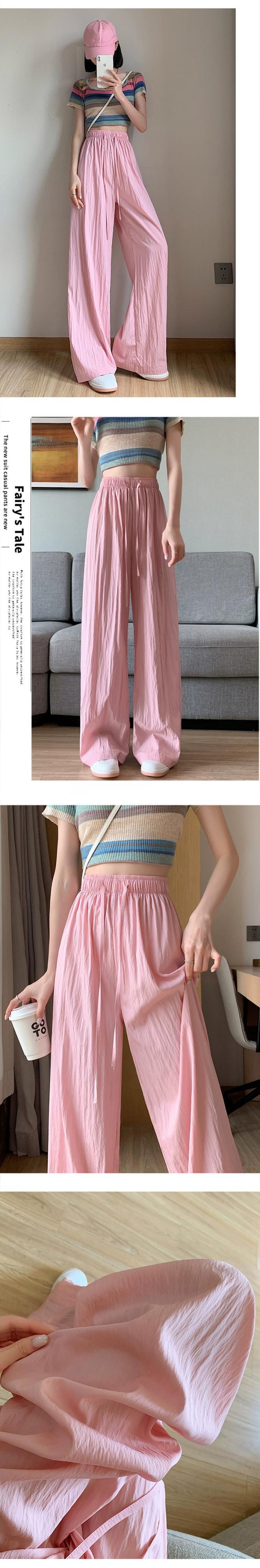 薄いアイスシルクドレープワイドレッグパンツレディース夏薄いハイウエストストレート山本パンツ小さなカジュアルコットンとリネンパンツ ハイウェスト サマー 夏物 7460060546330178 | framboise21