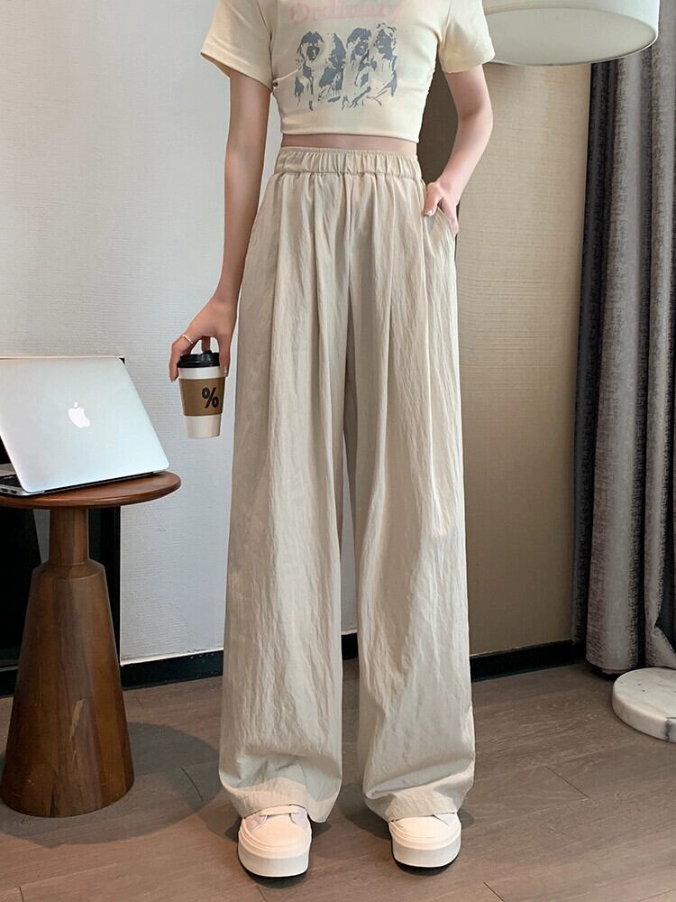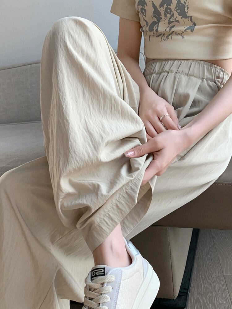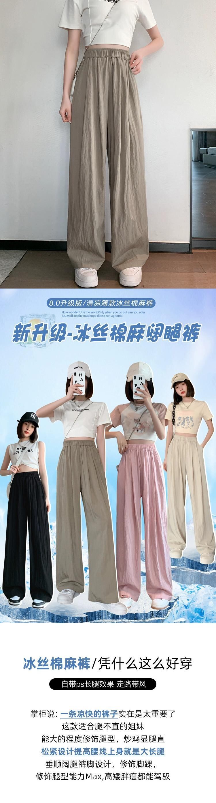 薄アイスシルクワイドレッグパンツ女性の夏のルーズストレートハイウエスト通気性コットンリネンパンツモップカジュアルレディースパンツ サマー 夏物 7460029886142627 | framboise21