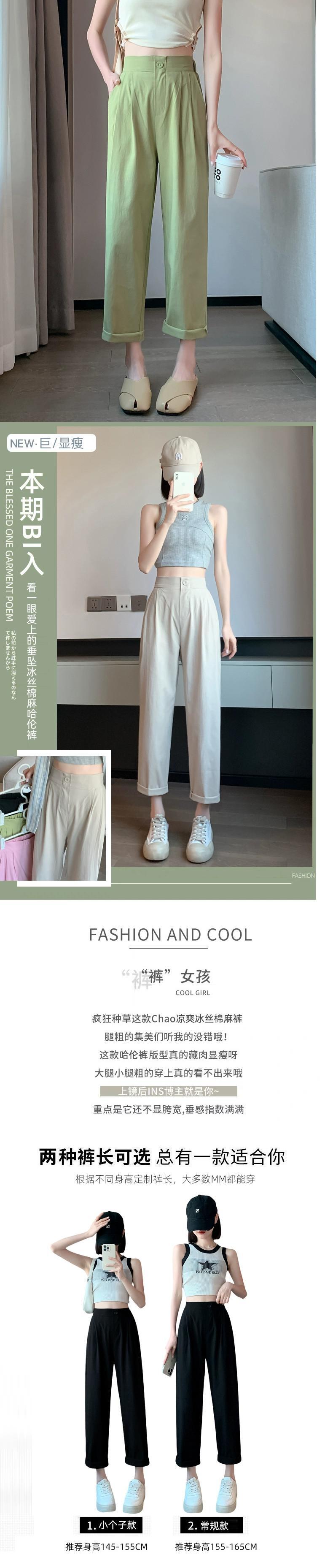 アイスシルク コットンとリネン ワイドレッグ パンツ レディース 夏 ルーズ カジュアル 薄手セクション 9 ポイント パンツ 小さい ナロー バージョン ハイウエスト ストレートレッグ パンツ サマー 夏物 7460085522299319 | framboise21