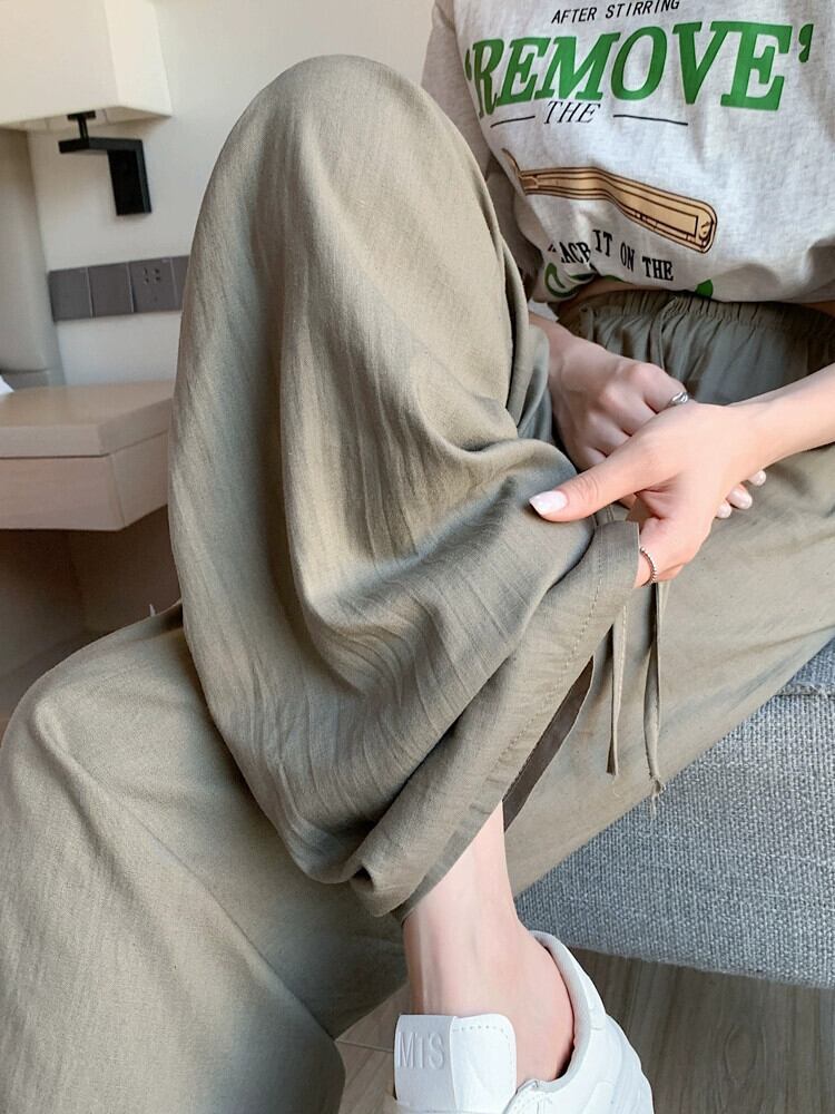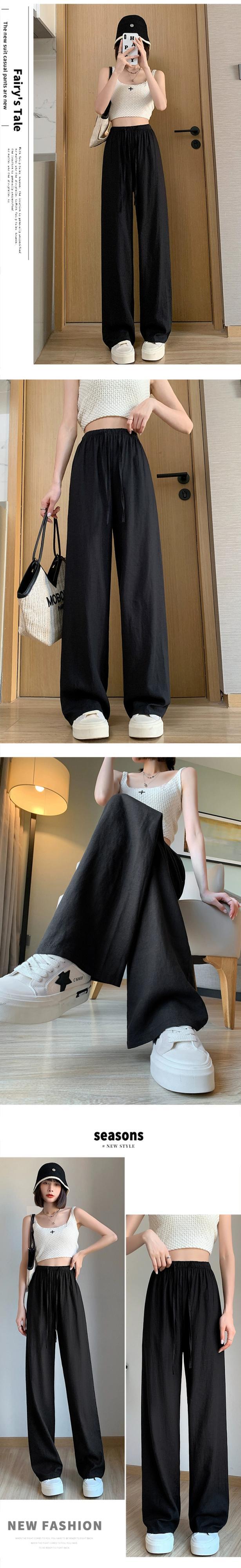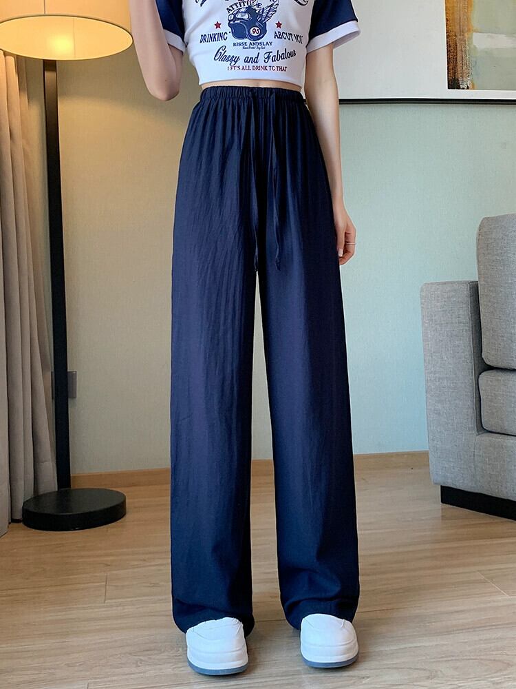 アイスシルクナローワイドレッグパンツレディース夏薄手カジュアルコットンリネンパンツルーズスリムハイウエストドレープ山本パンツ潮 ハイウェスト サマー 夏物 7460079542866101 | framboise21