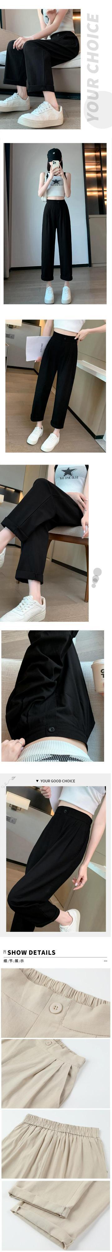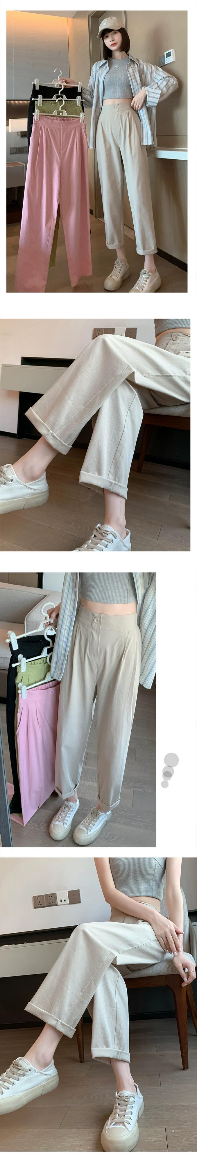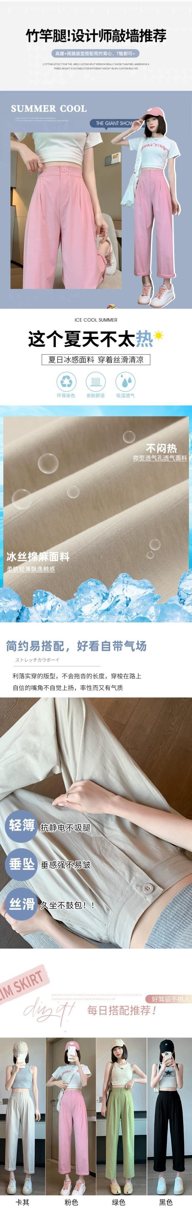 カーキアイスシルクパンツレディース夏薄手通気性コットンリネンワイドレッグパンツルーズストレートハイウエスト9点カジュアルパンツ ハイウェスト サマー 夏物 7460092542755792 | framboise21