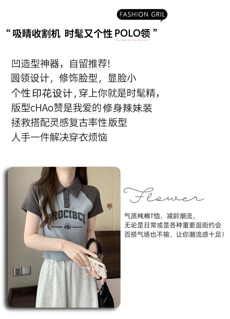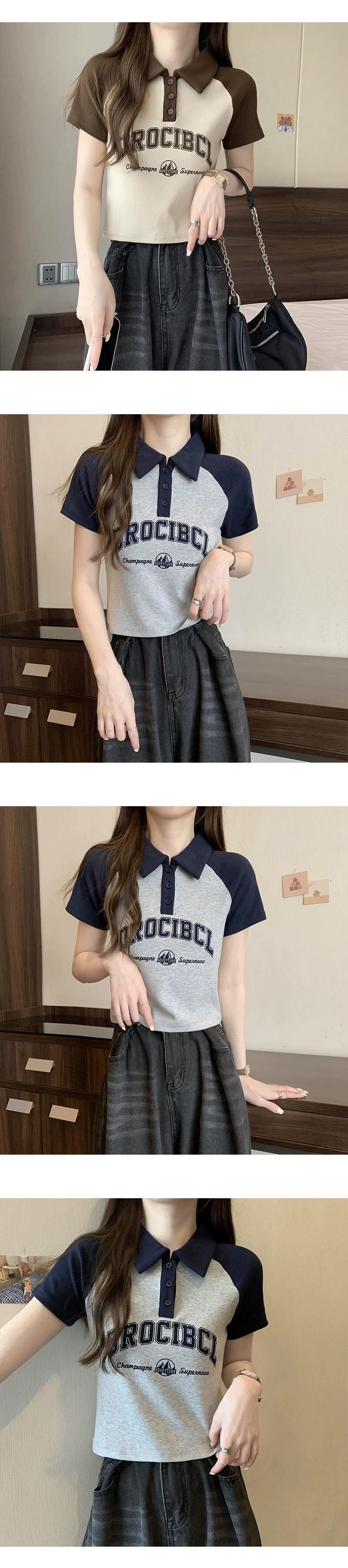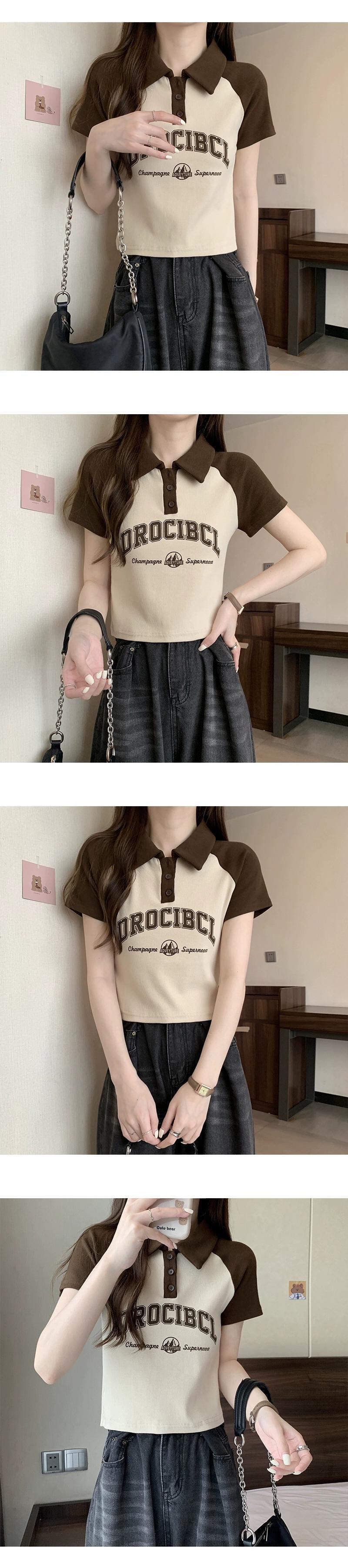 アメリカ綿フロントショルダーラグランスリーブTシャツレディース夏レトロデザインセンスコントラストカラー半袖ポロシャツショートトップ コットン サマー 夏物 7460055960246366 | framboise21