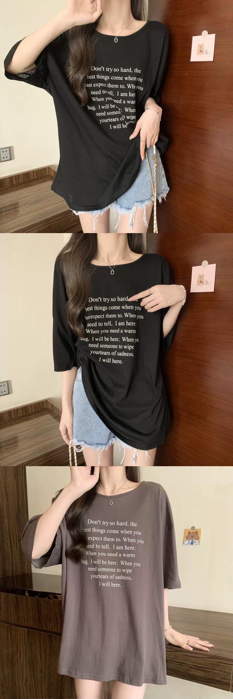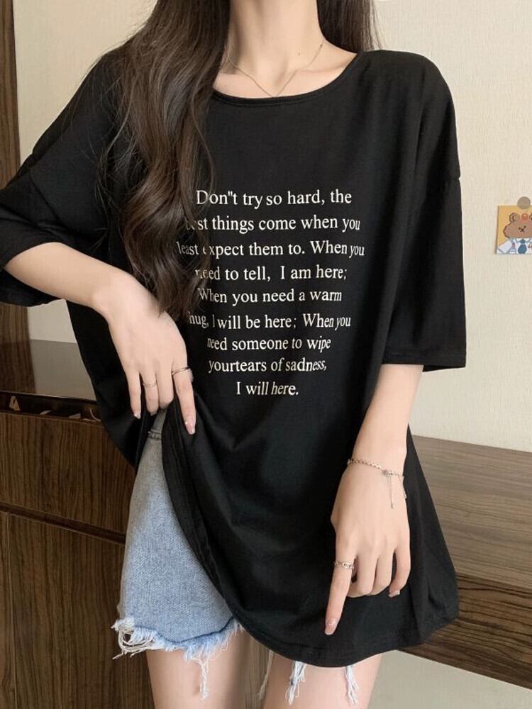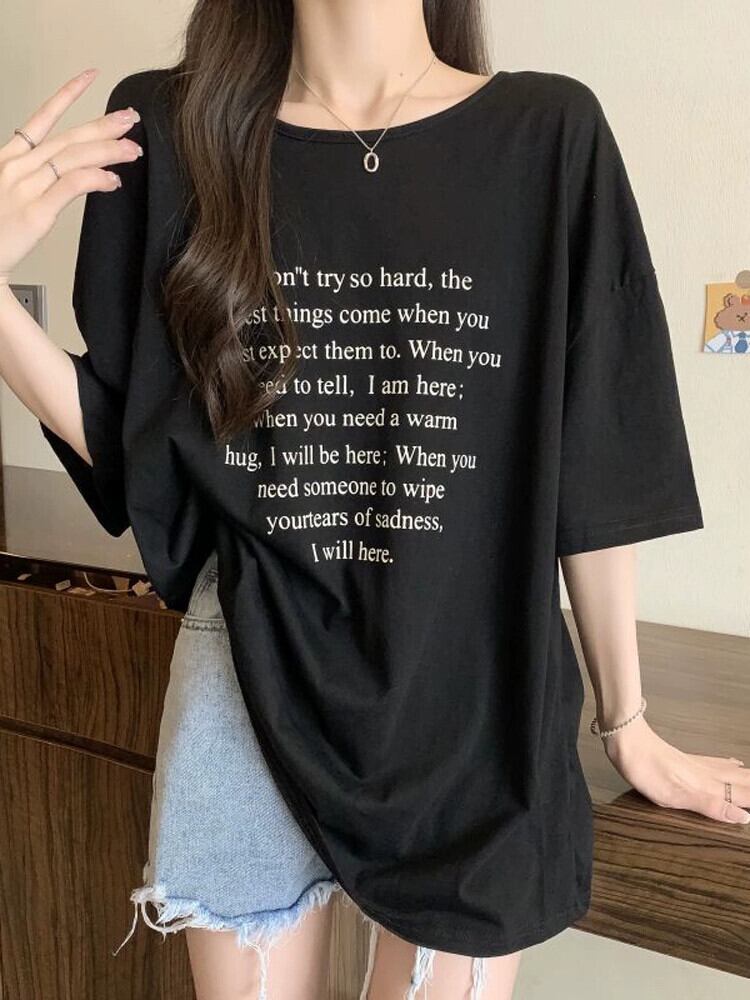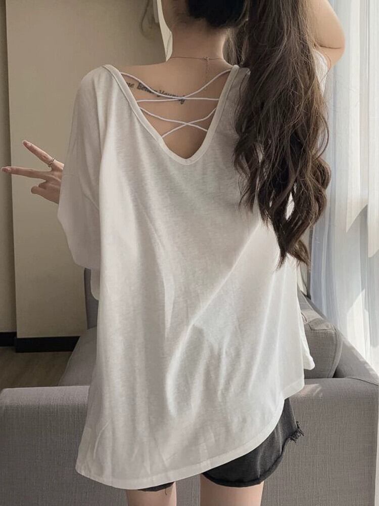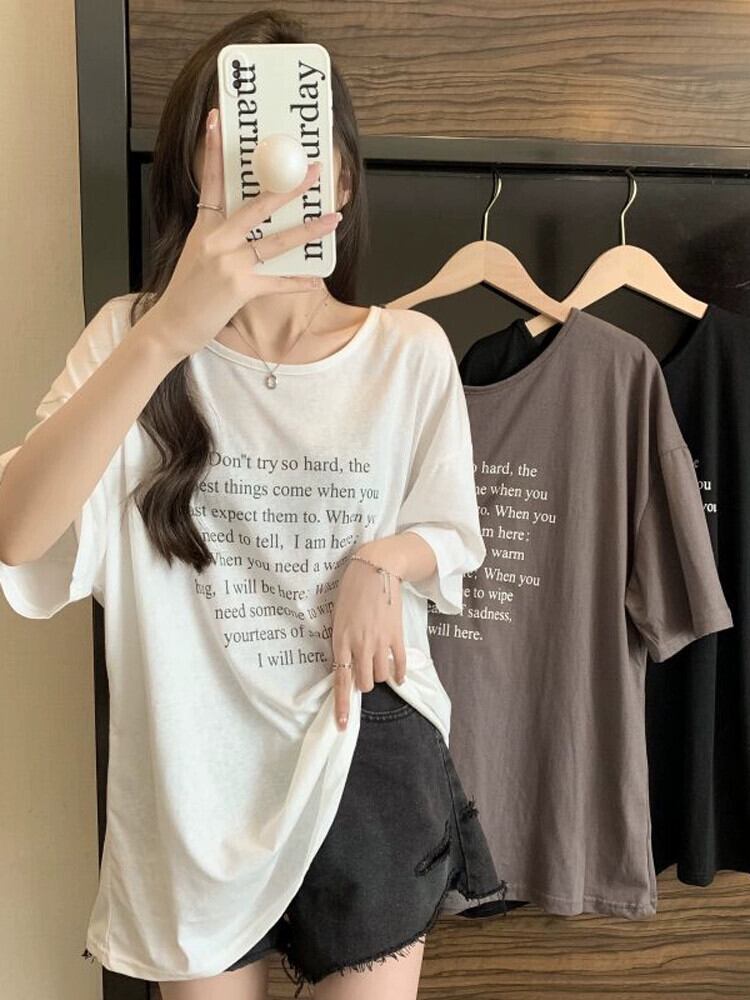 レタープリント バックレス 半袖 Tシャツ レディース 夏 デザイン感 ゆったり 万能 五分袖 Tシャツ ミドル丈 トップス イン サマー 夏物 7460051465990689 | framboise21