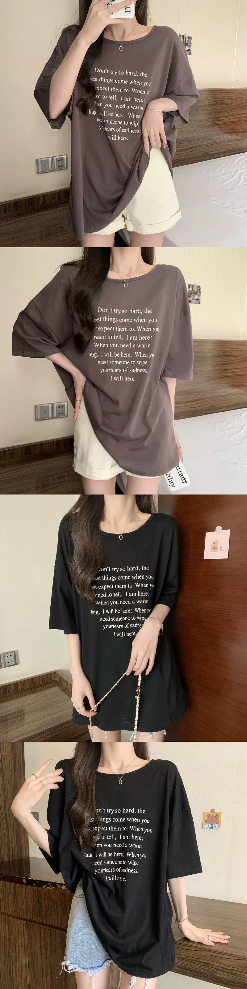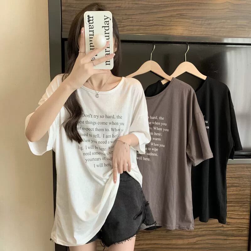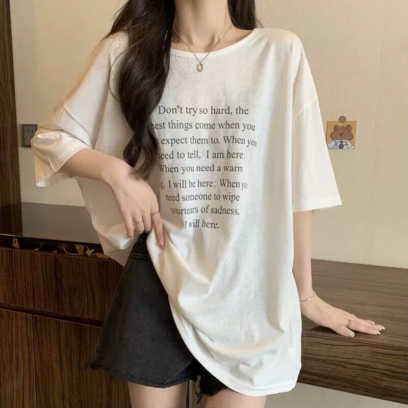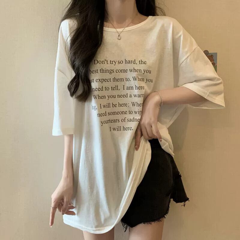 レタープリント バックレス 半袖 Tシャツ レディース 夏 デザイン感 ゆったり 万能 五分袖 Tシャツ ミドル丈 トップス イン サマー 夏物 7460051465990689 | framboise21