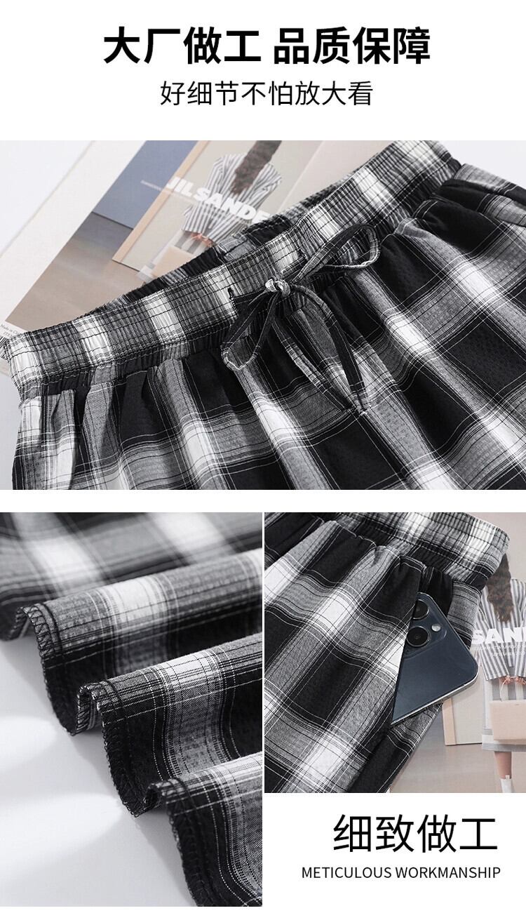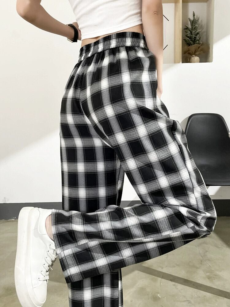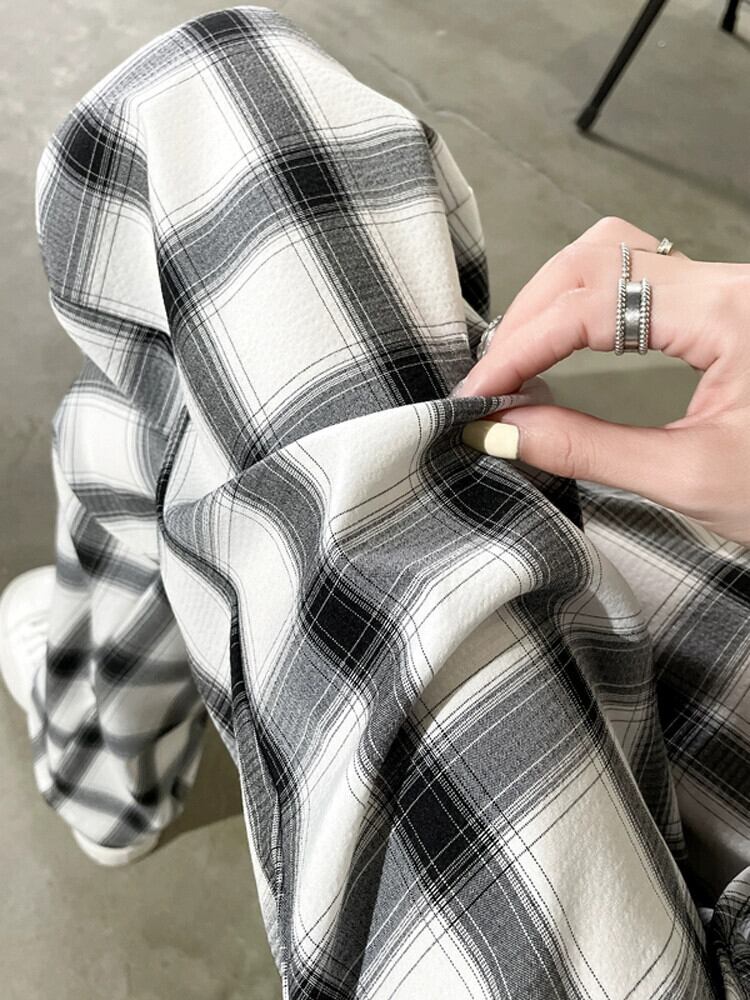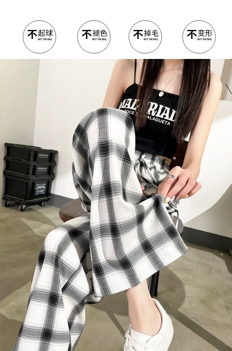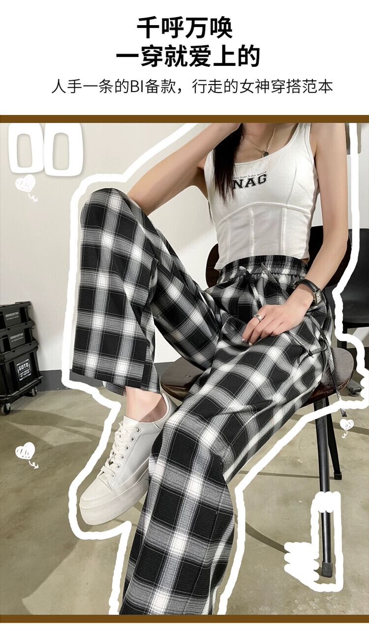 アイスシルクワイドレッグパンツレディース夏ルーズカジュアルハイウエストドレープフロアパンツ細いストレート黒と白のチェック柄パンツ ハイウェスト ホワイト ブラック サマー 夏物 746009817252568 | framboise21