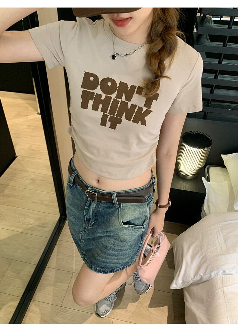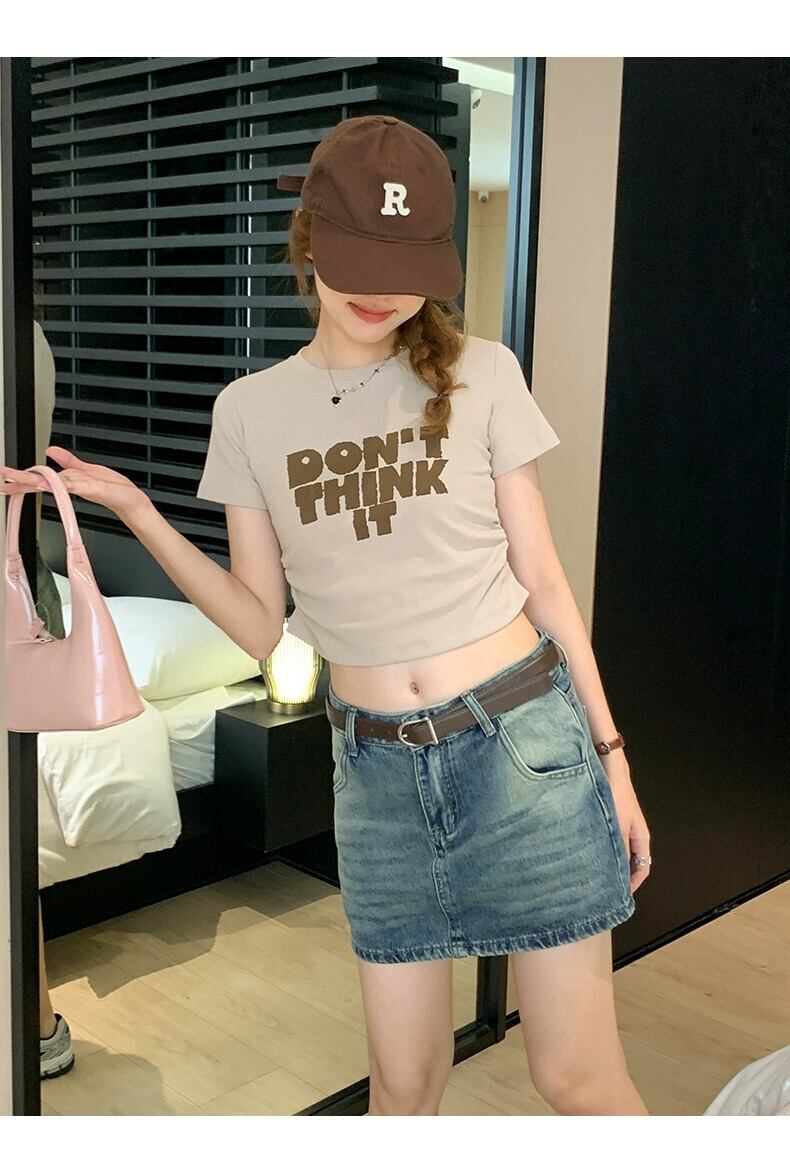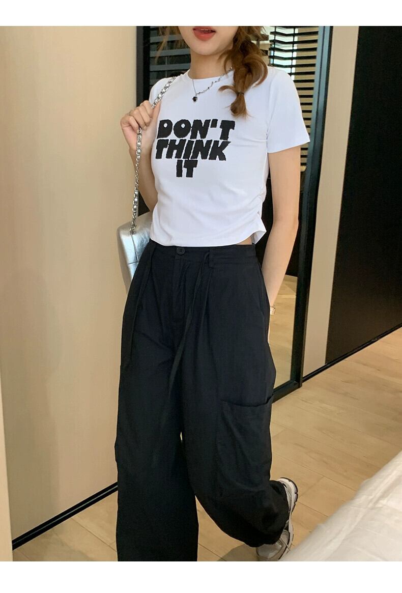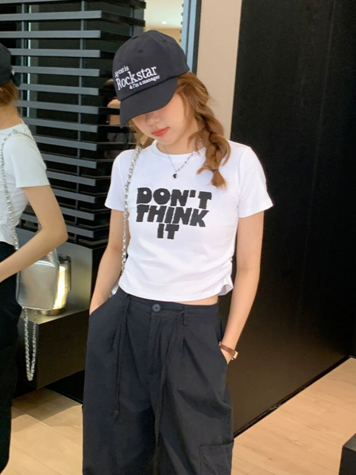 アメリカ綿フロントショルダー半袖Tシャツレディース夏デザインスリムハイウエストショートへそプリーツトップ ハイウェスト コットン サマー 夏物 7460056824862164 | framboise21