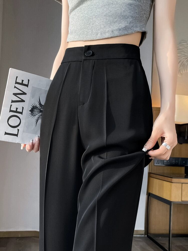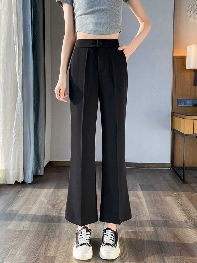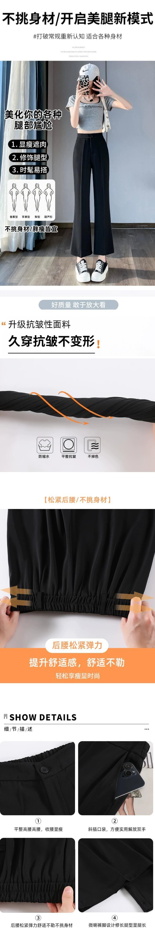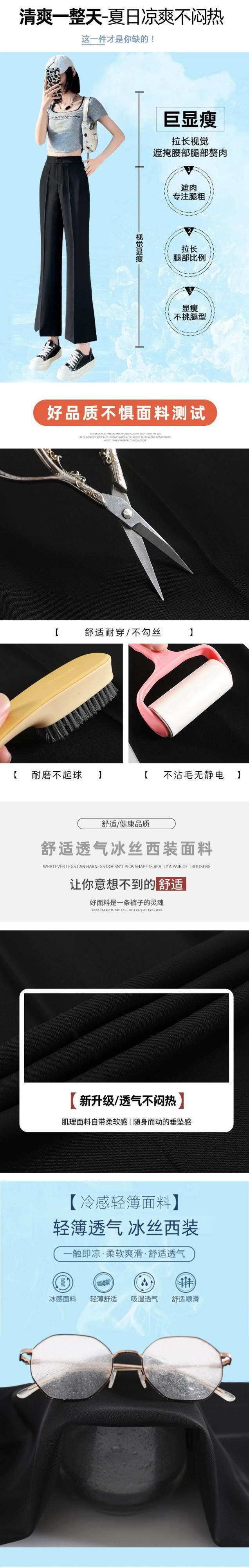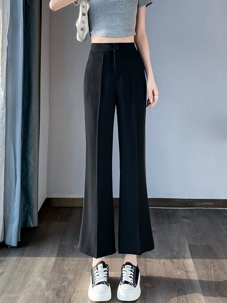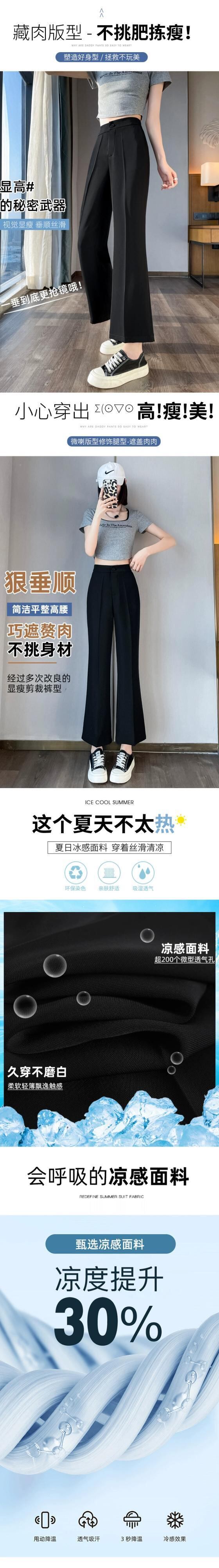 ブラックマイクロフレアアイスシルクパンツレディース夏薄セクション9ポイントハイウエストスーツパンツルーズドレープカジュアルレディースパンツトレンディ サマー 夏物 7460063943093019 | framboise21