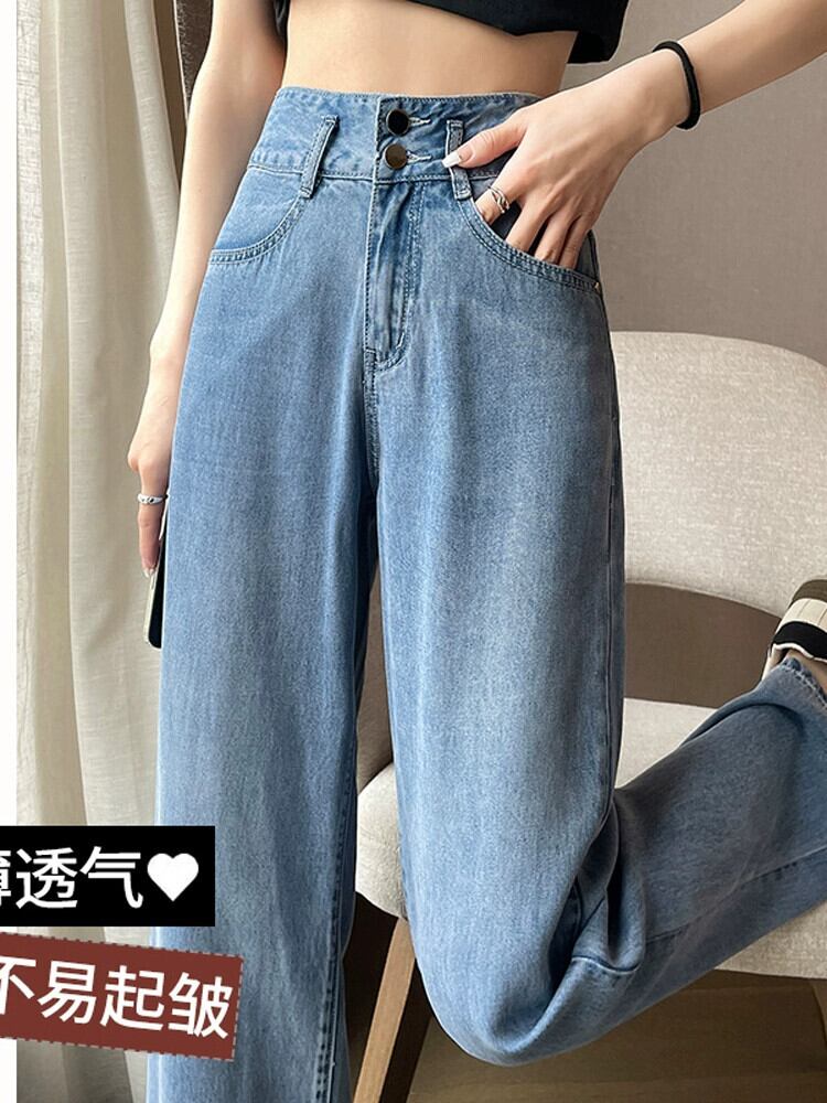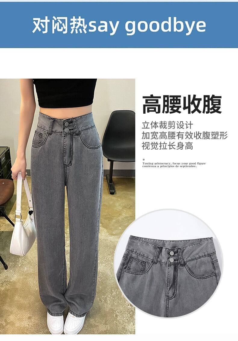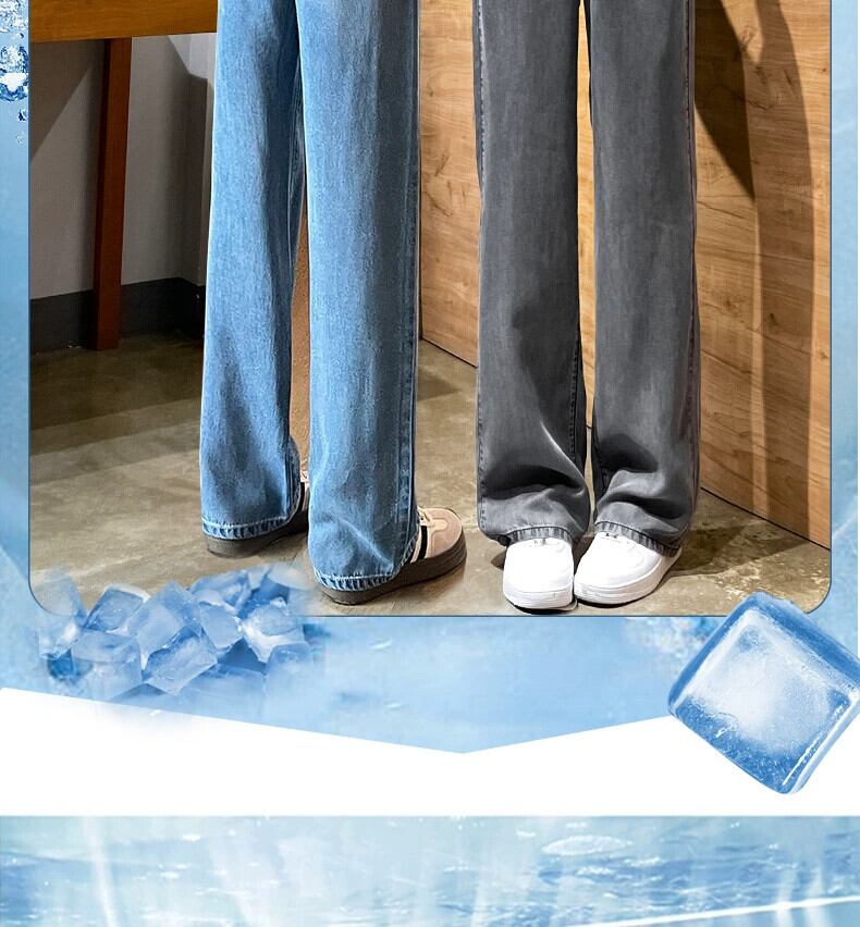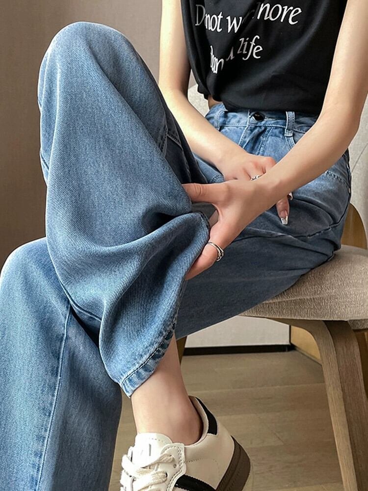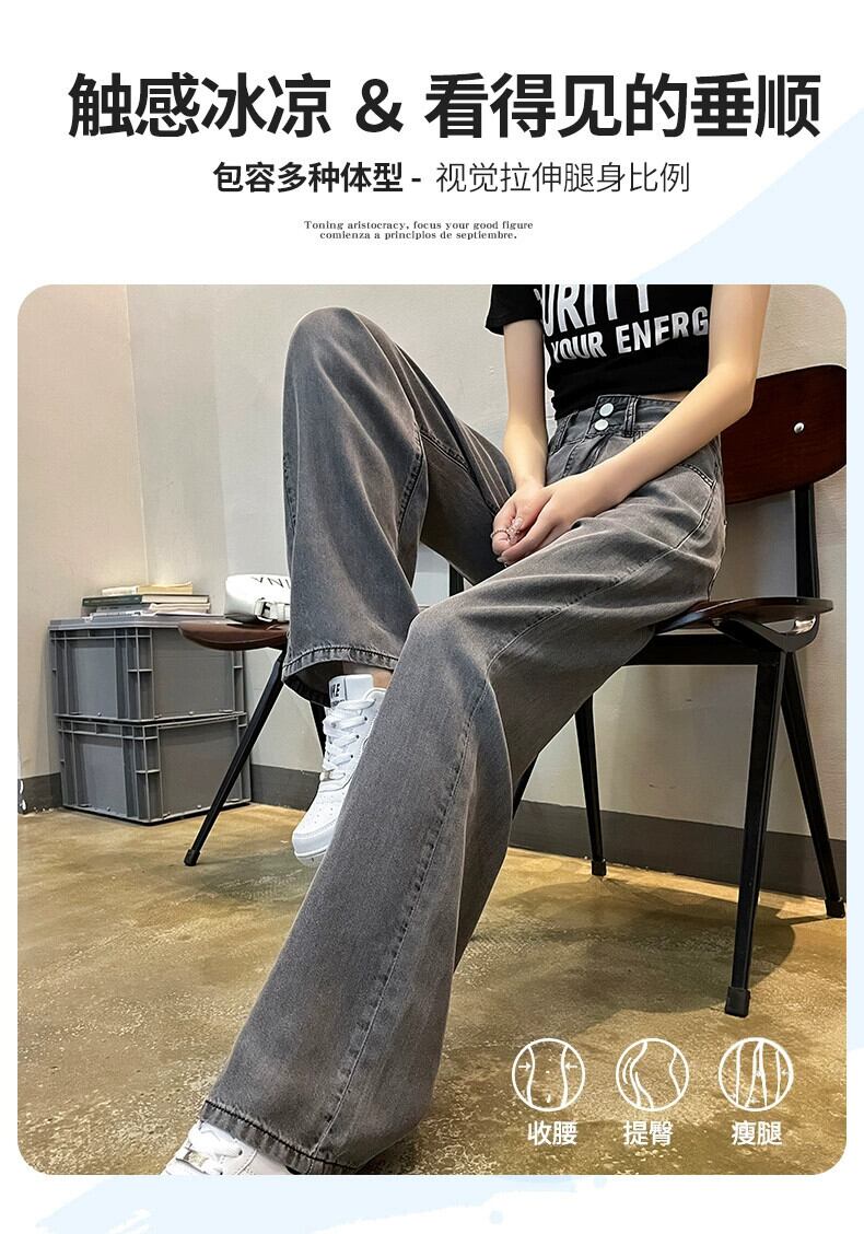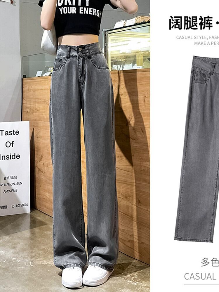 テンセル ストレート ワイドレッグ ジーンズ レディース 2023 夏の新しいオールマッチ痩身アイス シルク ドレープ モップ パンツ サマー 夏物 7460097807918449 | framboise21