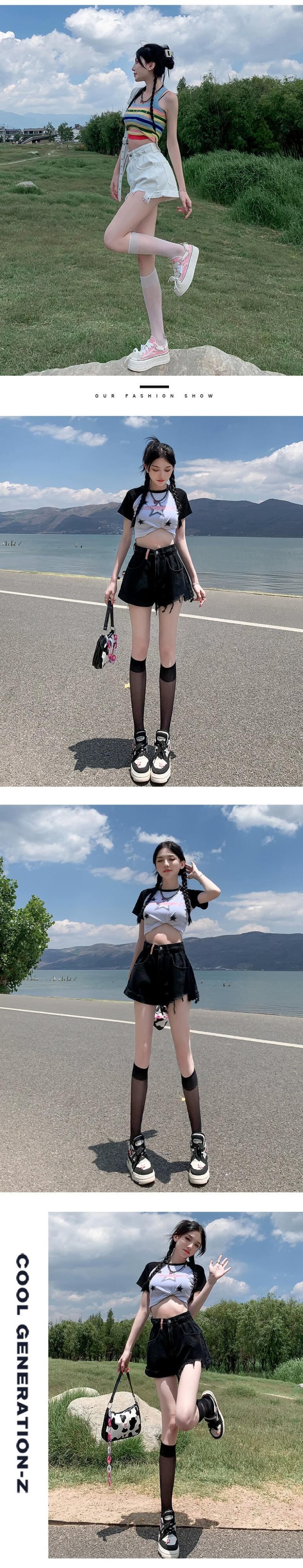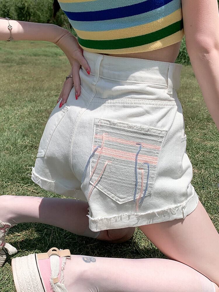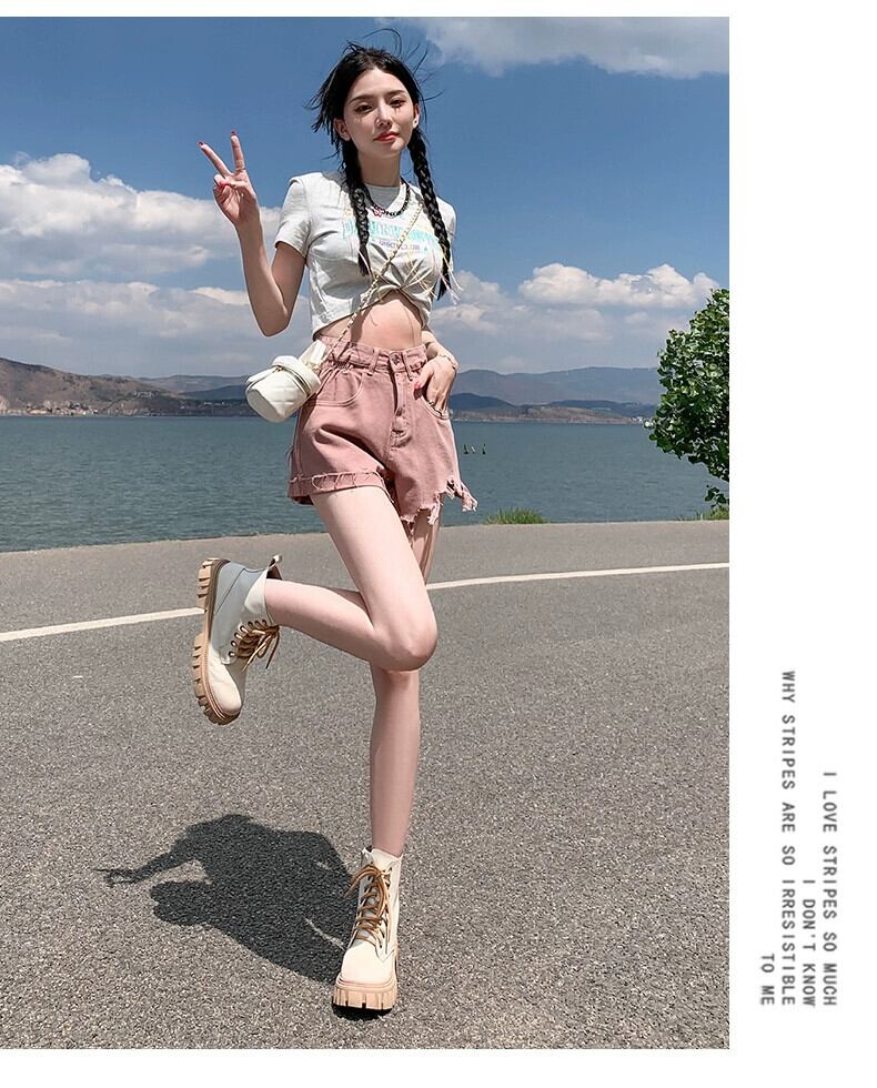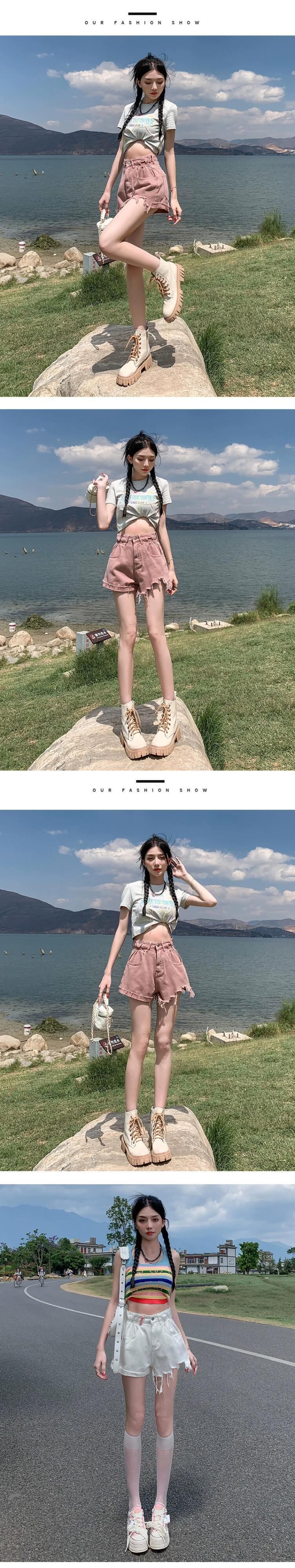 ウエストローエッジデニムショートパンツレディース夏ゆるくて薄いAラインパンツトレンディな破れたパンツを着ています サマー 夏物 ショーツ ブルマー 7460018514077087 | framboise21