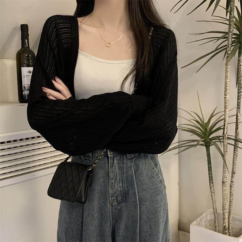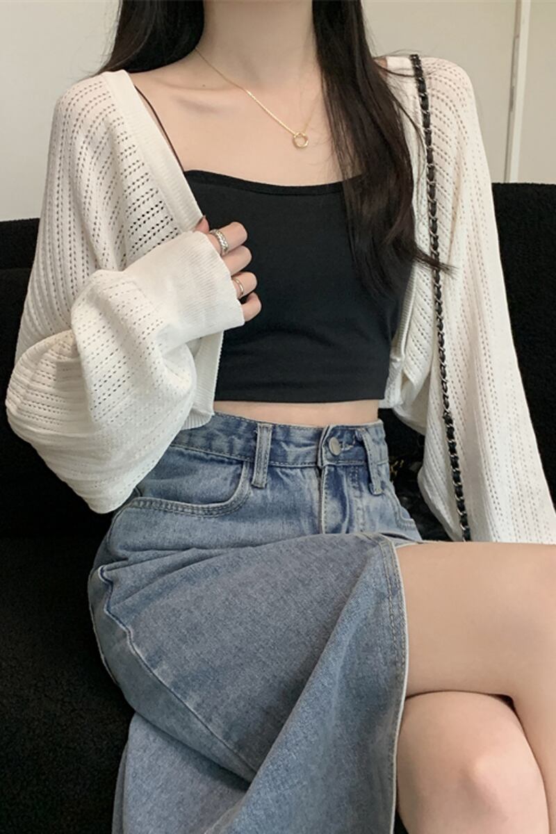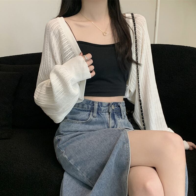 夏の白いアイスシルク日焼け止めカーディガン女性の薄いセクションとスカートとニットショールブラウスフェアリーショートトップ ホワイト サマー 夏物 7460029635654009 | framboise21