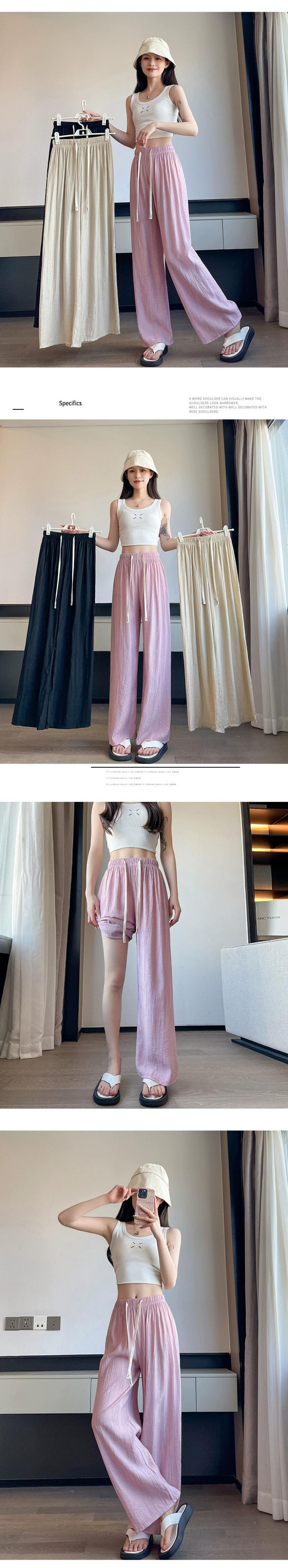 クールなアイスシルクワイドレッグパンツ女性の夏の 2023 新しいルーズカジュアルオールマッチ質感感覚日焼け止め狭い床モップパンツ サマー 夏物 7460049880574151 | framboise21