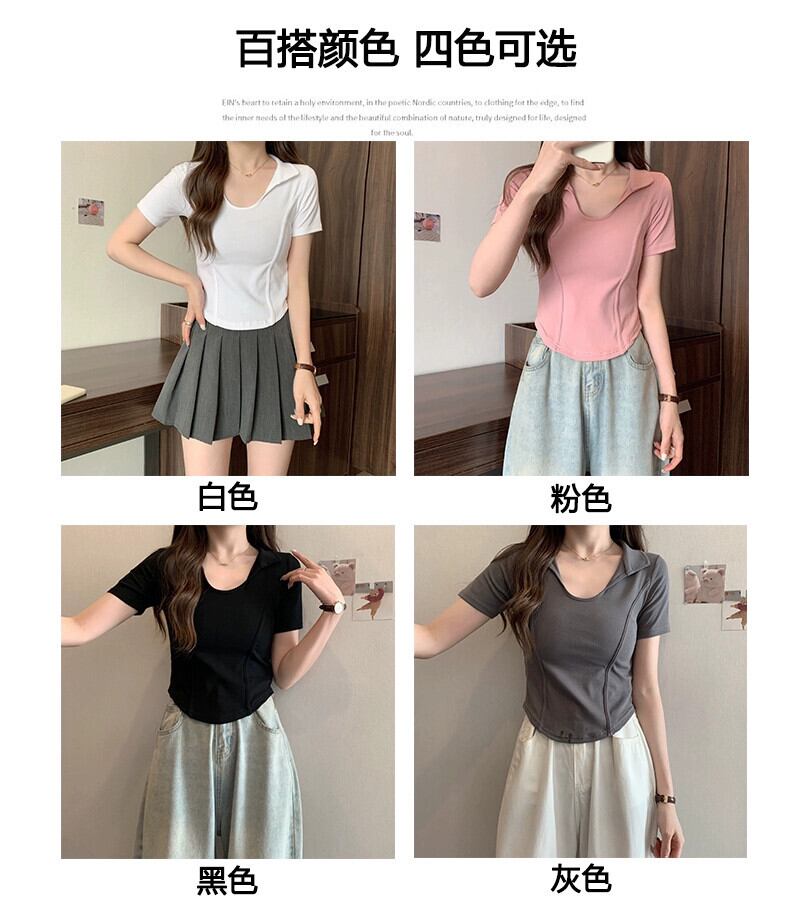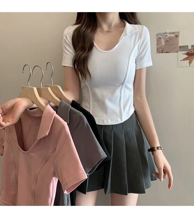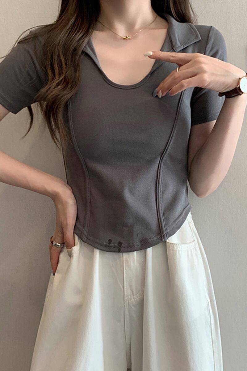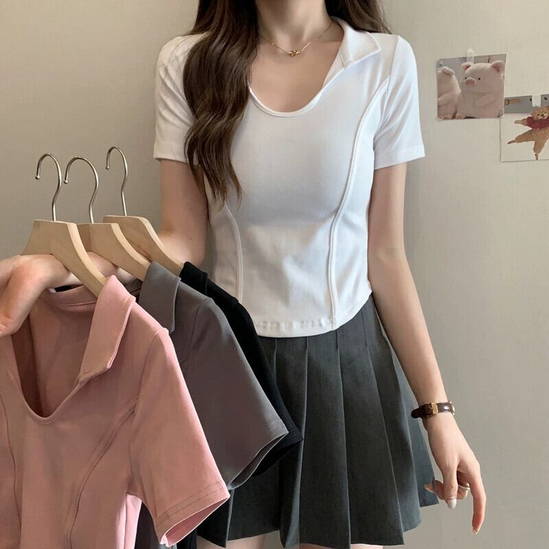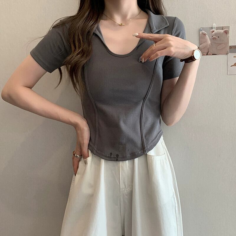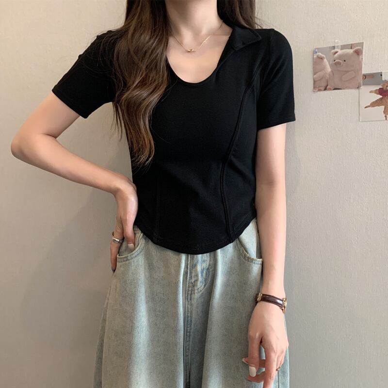 フロントショルダー純綿ポロカラー半袖 tシャツ女性の 2023 夏の新しいデザインセンススリムファッション不規則な v ネックトップ コットン サマー 夏物 Vネック ピュア 7460076835182340 | framboise21