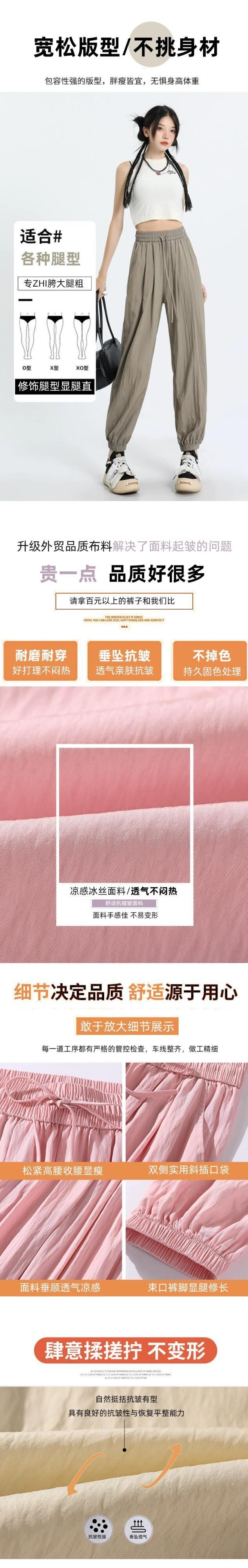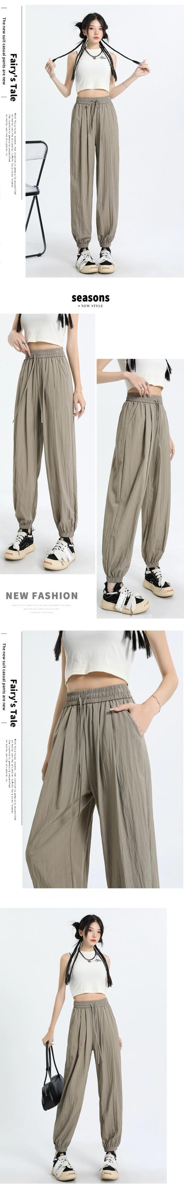 テクスチャードアイスシルクスポーツパンツレディース夏薄手のコットンとリネンパンツルーズスリムハイウエスト9点カジュアルパンツ ハイウェスト レッド サマー 夏物 746003614656204 | framboise21